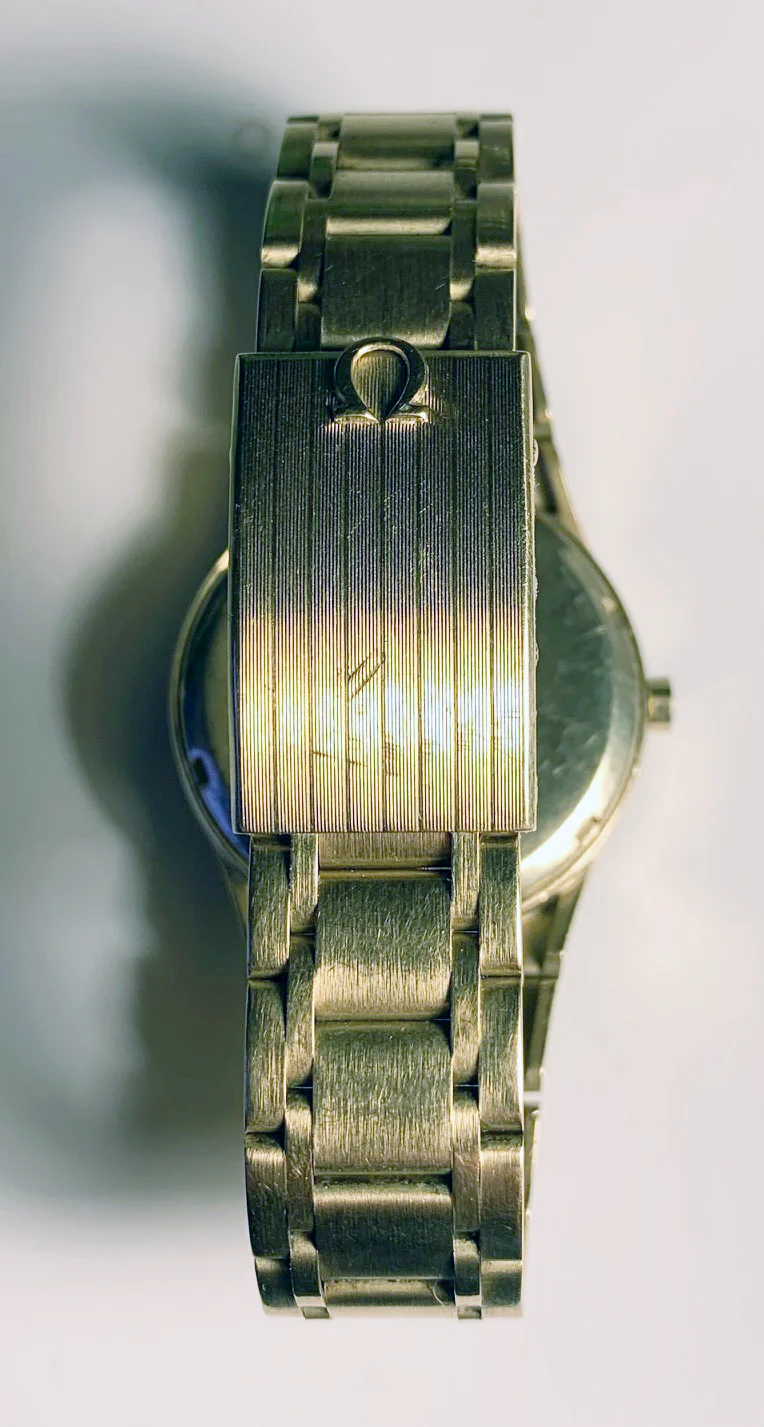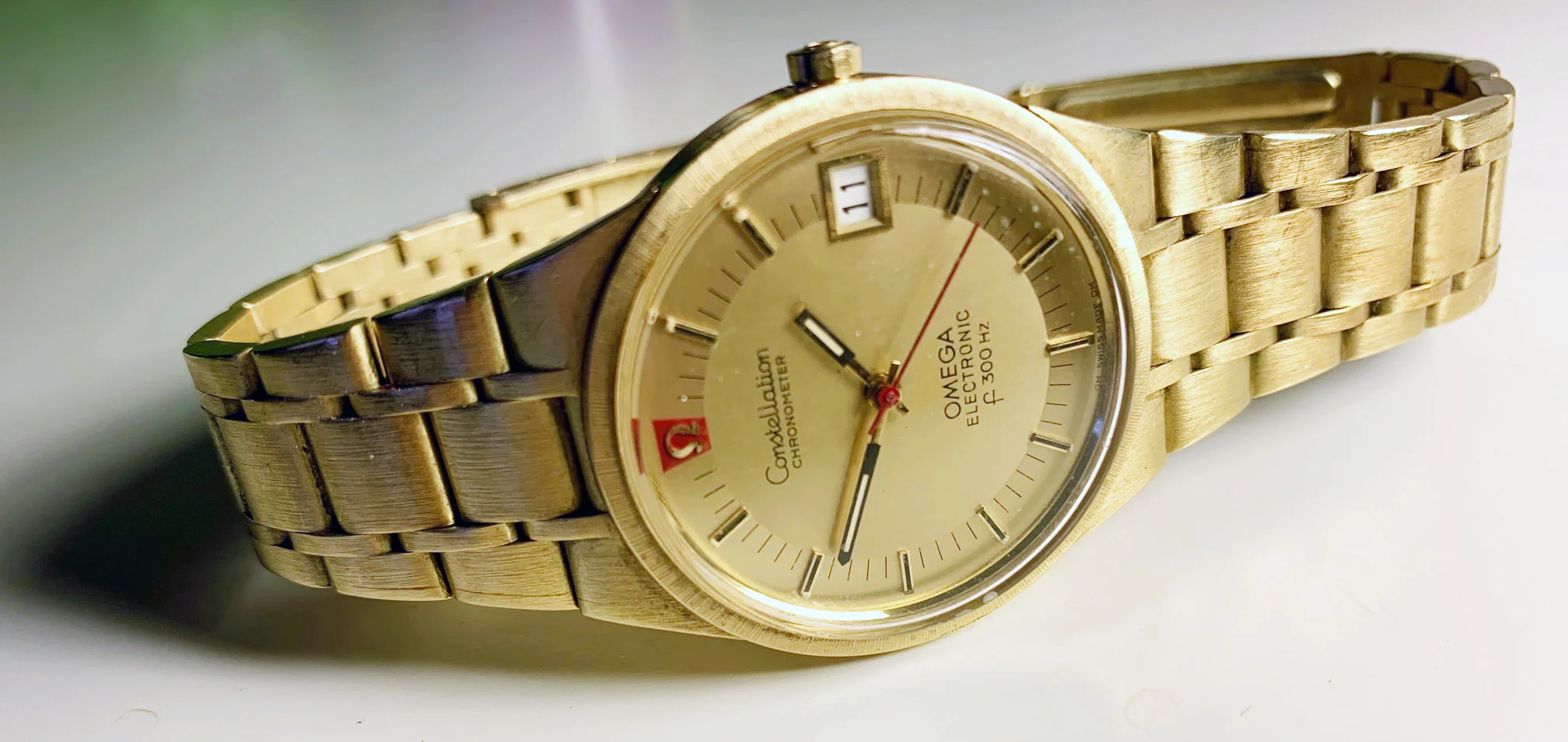 ·Hi there. About a decade ago, my grandfather passed away and I received this watch. It has been sitting in my safe ever since, but I have not been able to find much information on it. Red and gold logo. On the face it shows it is an Omega Constellation. Electronic 300Hz. In very tiny print at the lowest end of the face, I believe it reads "OM Swiss Made OM". Omega symbol on the outside of the clasp and stamped inside as well. The other stamps are "11" encircled, "750" & "398.001" (I think). I assumed the 398.001 was the model, but I really could find nothing about it, if so. Can anyone give me a good idea of what this watch actually is. I was told that grandpa got it as a retirement gift from the U.S. Army. I am uncertain if that is true. Thank you for any help you can give! I appreciate everyone's time.