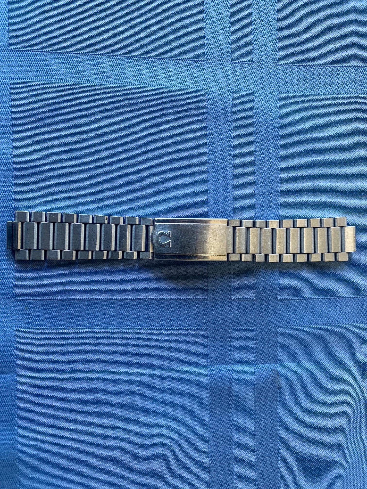 ·Hello folks. First time poster here, and was hoping to get some help identifying an Omega bracelet. I’ve been trying to help my Dad sort out a bunch of watch bands he’s had in his collection for ages, and this included two Omega steel bands. One we’ve identified as a 1069, with end links 524, marked 4-70. The other is pictured in the attached photos, and is stainless steel with flat links. It marked with No. 12, and “9-9” where the date would ordinarily go, and is probably is from a similar era as the 1069/524. No end links were found with this band. It might have been a spare for the Seamaster or for a separate Speedmaster, or maybe even for something else - my Dad really has no recollection.