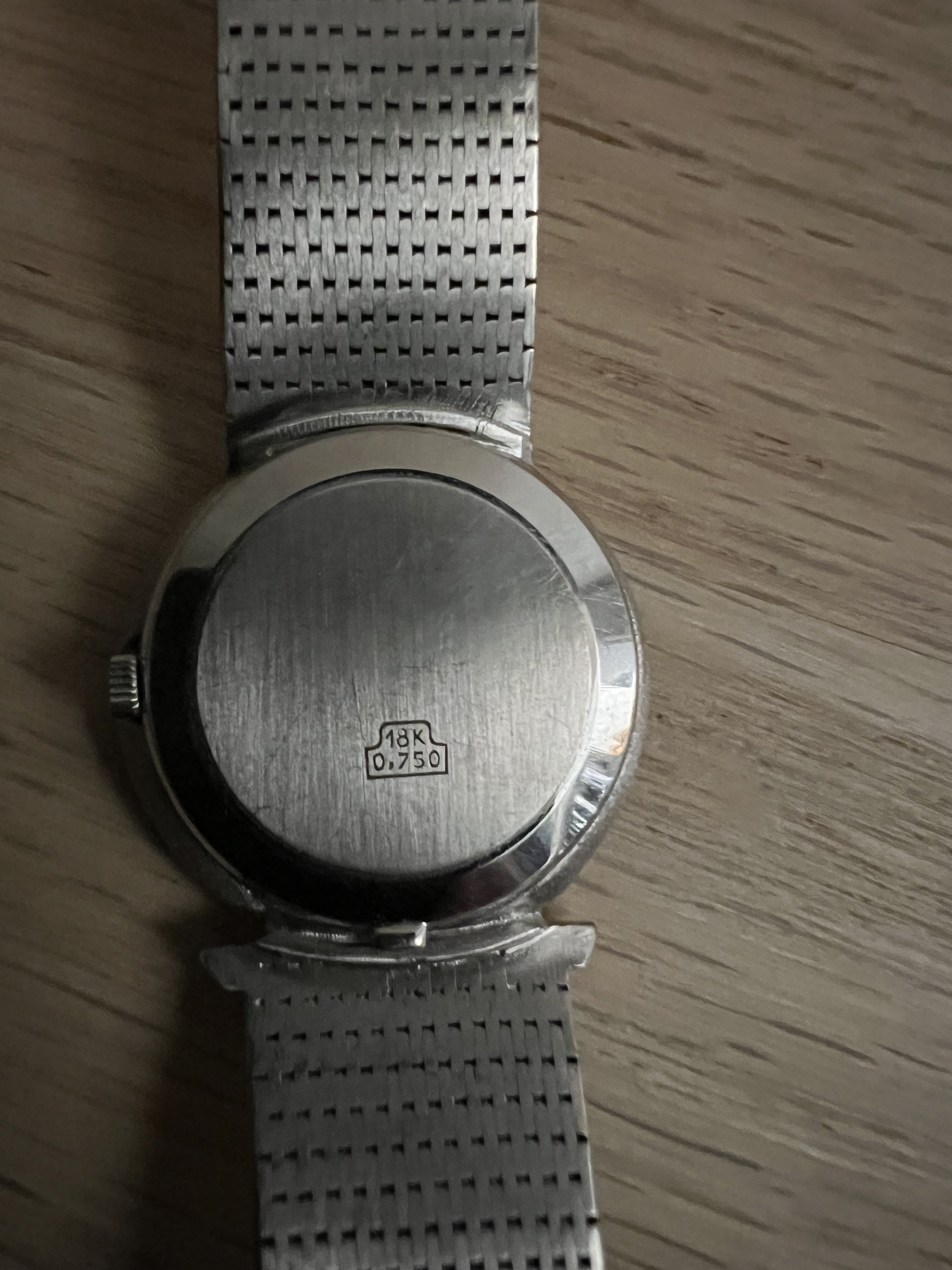 Welcome to the forum, the back is quite obviously stamped 18k so it’s 18k gold- unless it’s a complete fake which I highly doubt. The styling of the dial suggests a 1960s watch, have you tried to wind it?