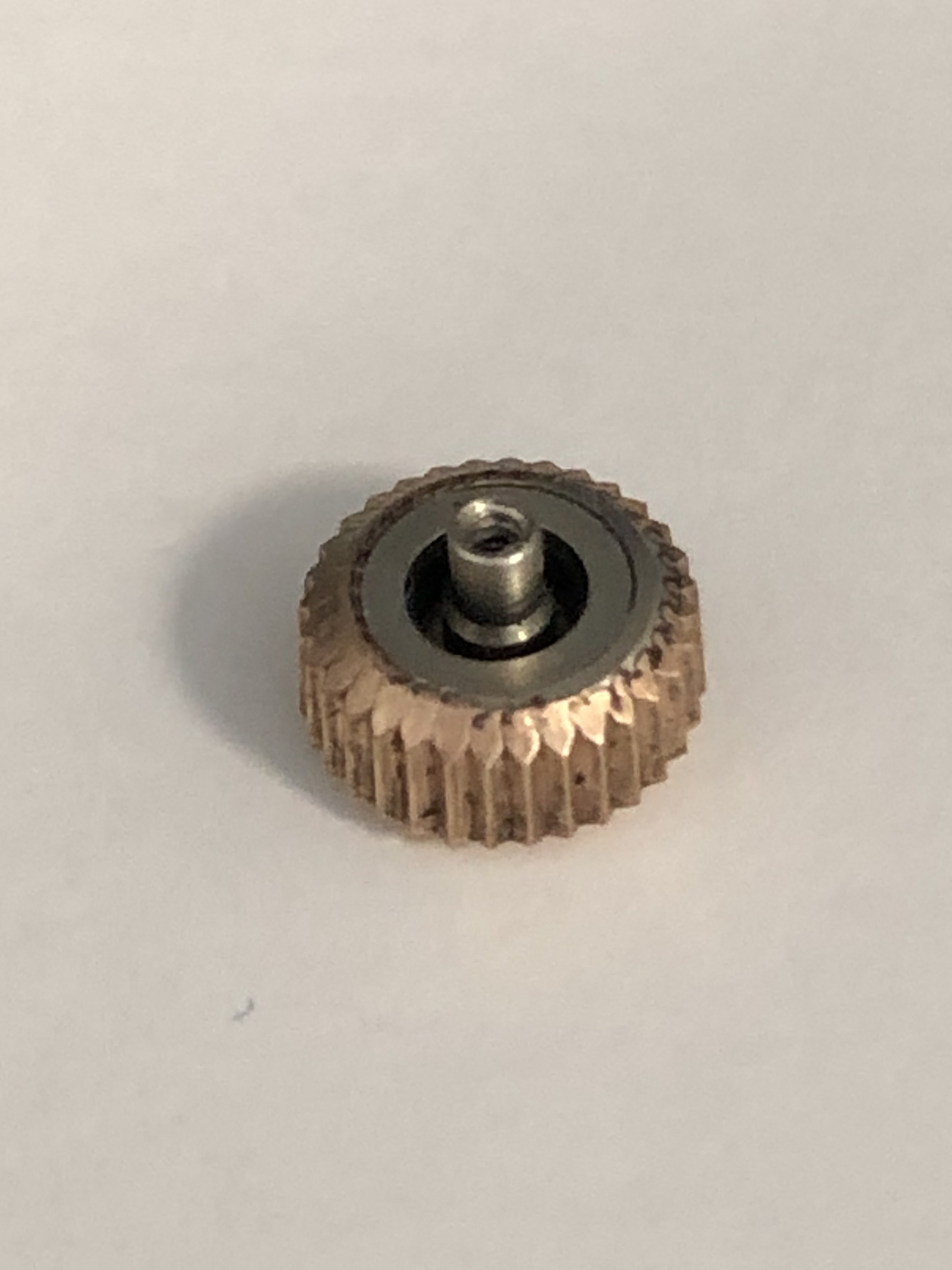 The pink gold is 6mm diameter, 3mm height, stem 0,9mm, long tube and 32 teeth.