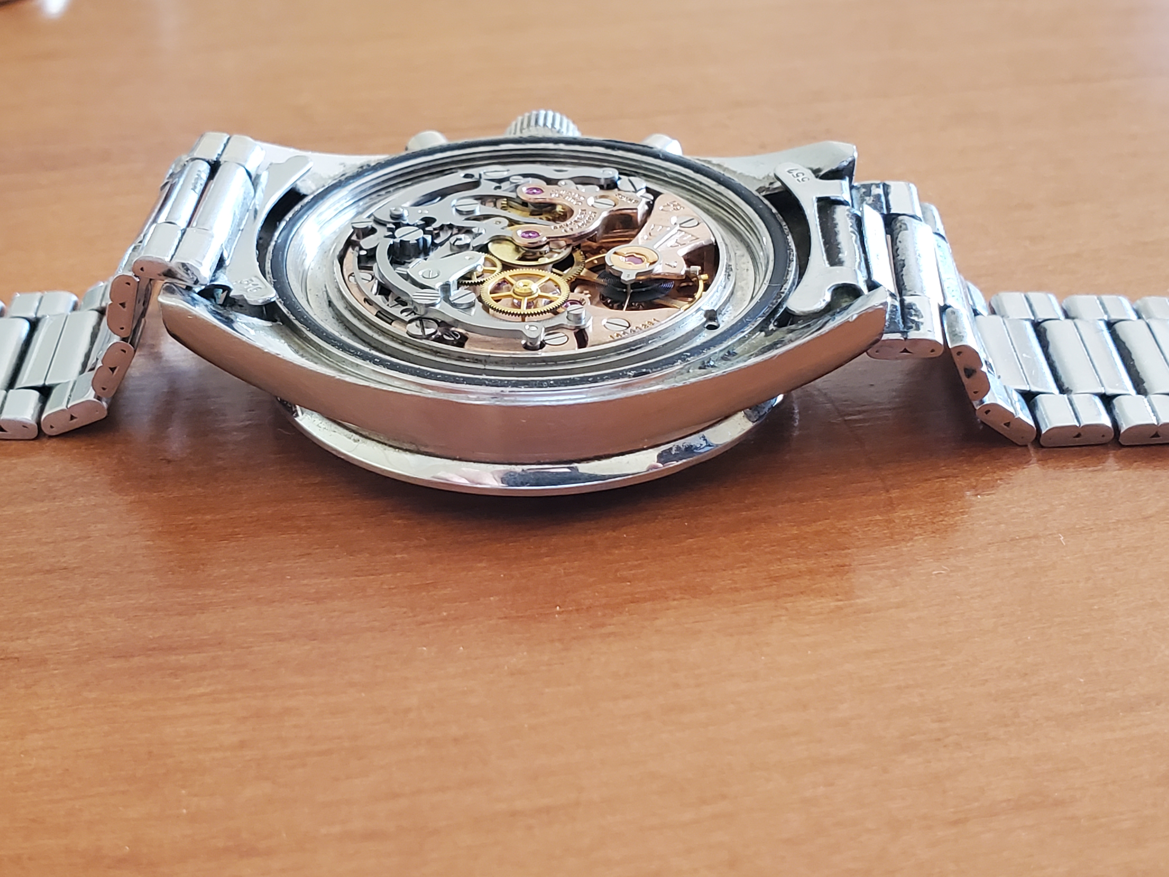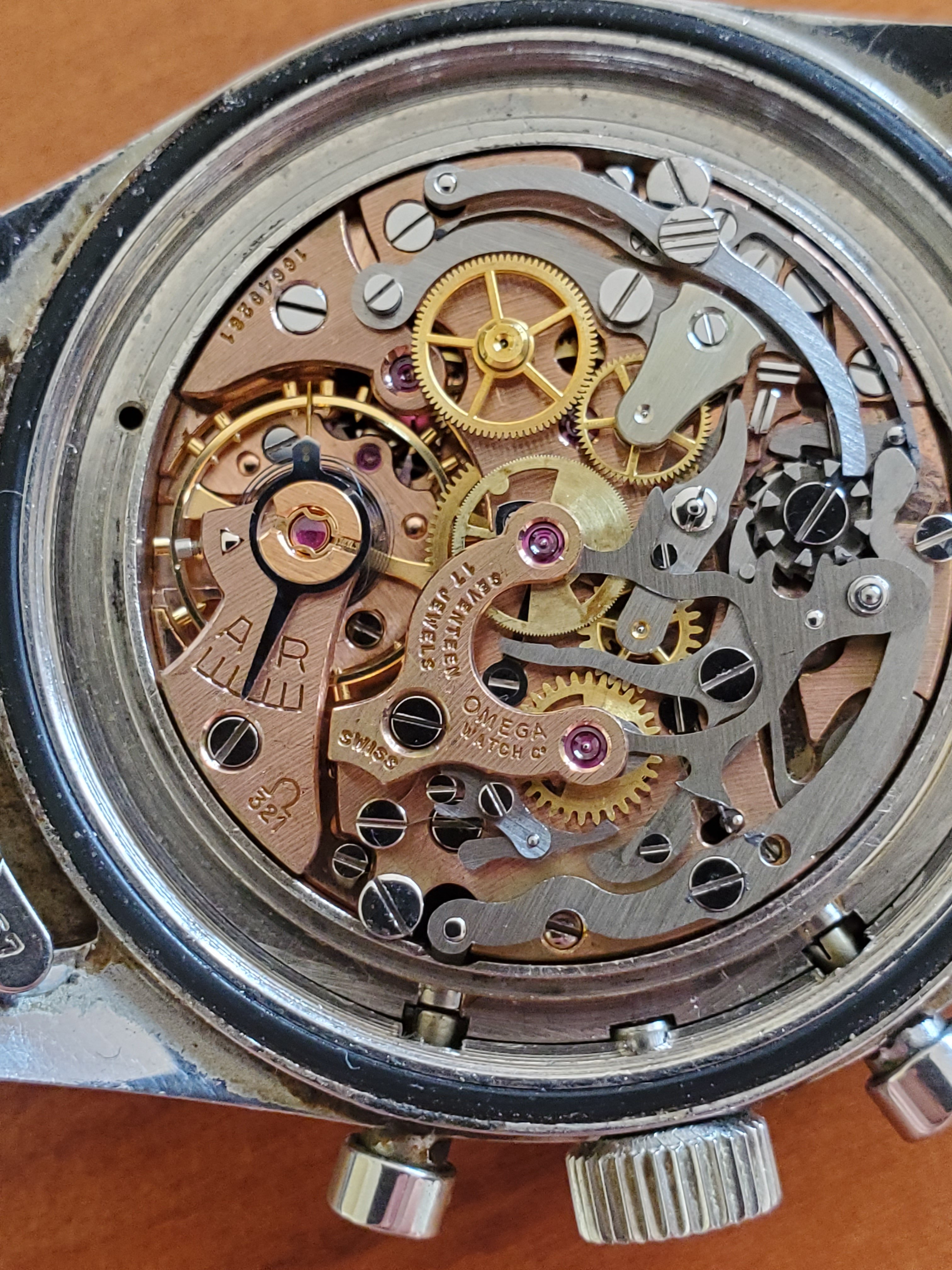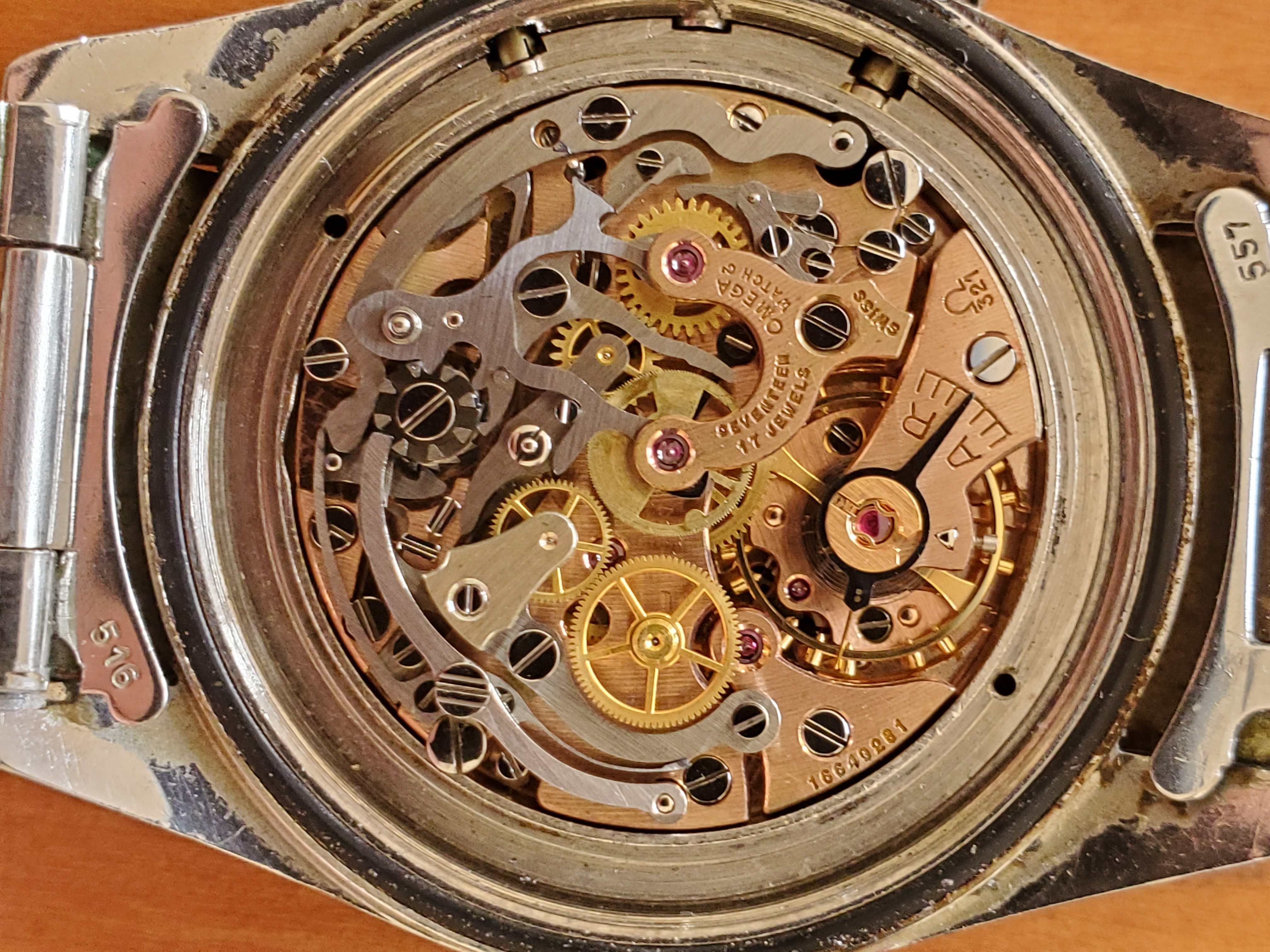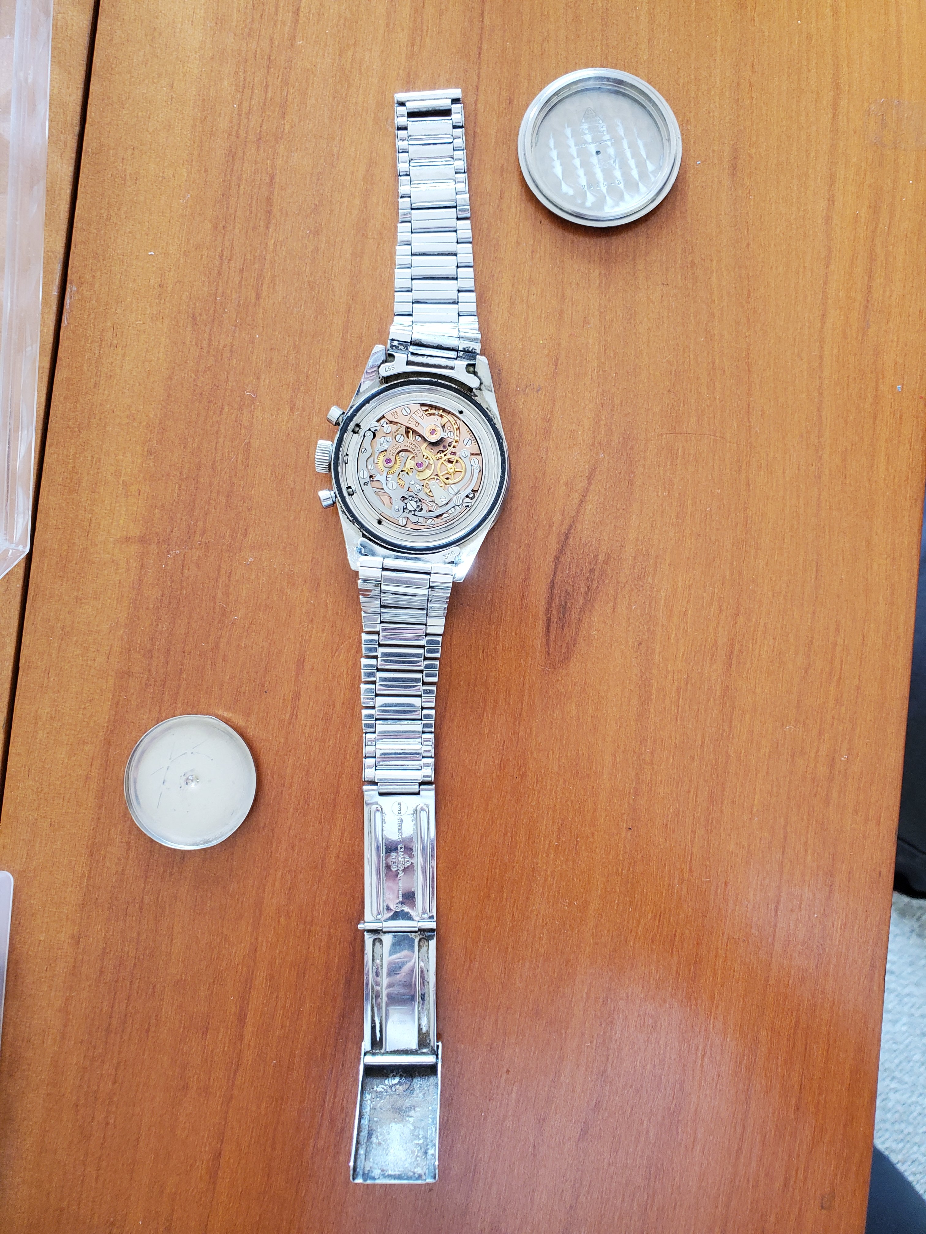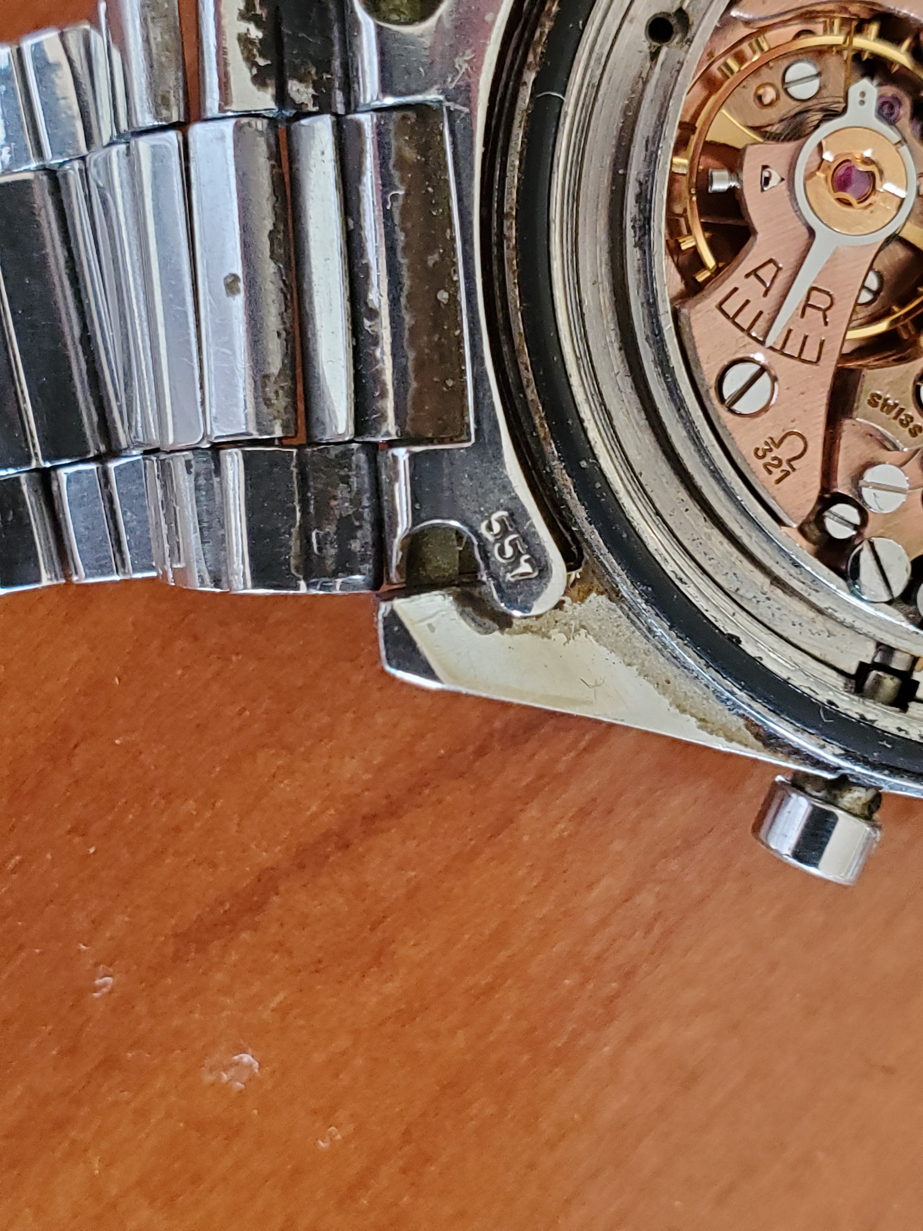 What you can help us with: Your thoughts on the lack of Base 1000 bezel, thoughts on the scratched numbers- does this indicate servicing? Thoughts on condition, rarity and possible value of this Speedmaster, and what steps we should take to ensure the value and condition of this beauty?