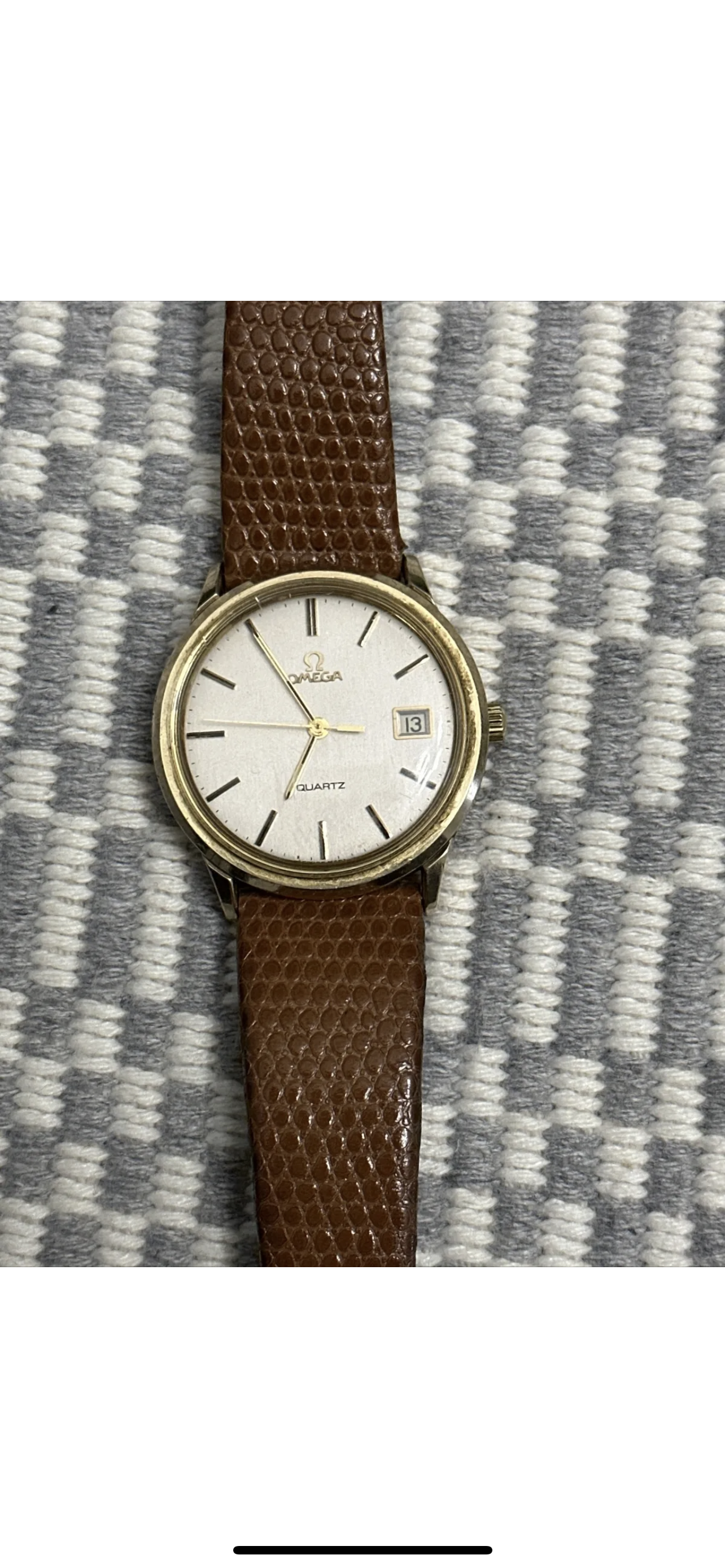 ·Hello all, I am a new watch collector but longtime lover. I've been an Omega admirer for as long as I can remember and was psyched today when I got the chance to get a vintage one for a great price. This watch in question is not currently running, the guy who sold it said likely just needs a new battery. This doesn't really matter to me because I'd pay whatever is necessary to fix it. The authenticity of the watch is something however that I can't help but question. I paid $100 for this and am not sure if it is because it is a fake, not working, or a not working fake - lol. Needless to say, I did some poking around for vintage omega's and got a little disconcerted when I haven't really been able to dig anything up. As you can see in the pictures, the only words on the face are "Omega" and "Quartz". In my limited research I wasn't able to find a specific model that would match, so I figured I'd ask the experts. It won't hurt my feelings if it is indeed not genuine, I will take it on the chin as a learning lesson, but at the off chance it was real, couldn't let it slip away for such a deal. The back is engraved to someone named Anthony for having perfect attendance in 1980, which I thought helped the authenticity in my mind (who's going to engrave a fake) but now I don't even know if it's the real back. Listing said 10k gold omega vintage watch 1980, not sure if the year is due to the inscription or an educated guess - but would love to know more. Thanks for all the help. I'm not able to see inside the watch until after it is shipped here, hopefully in the next few days.