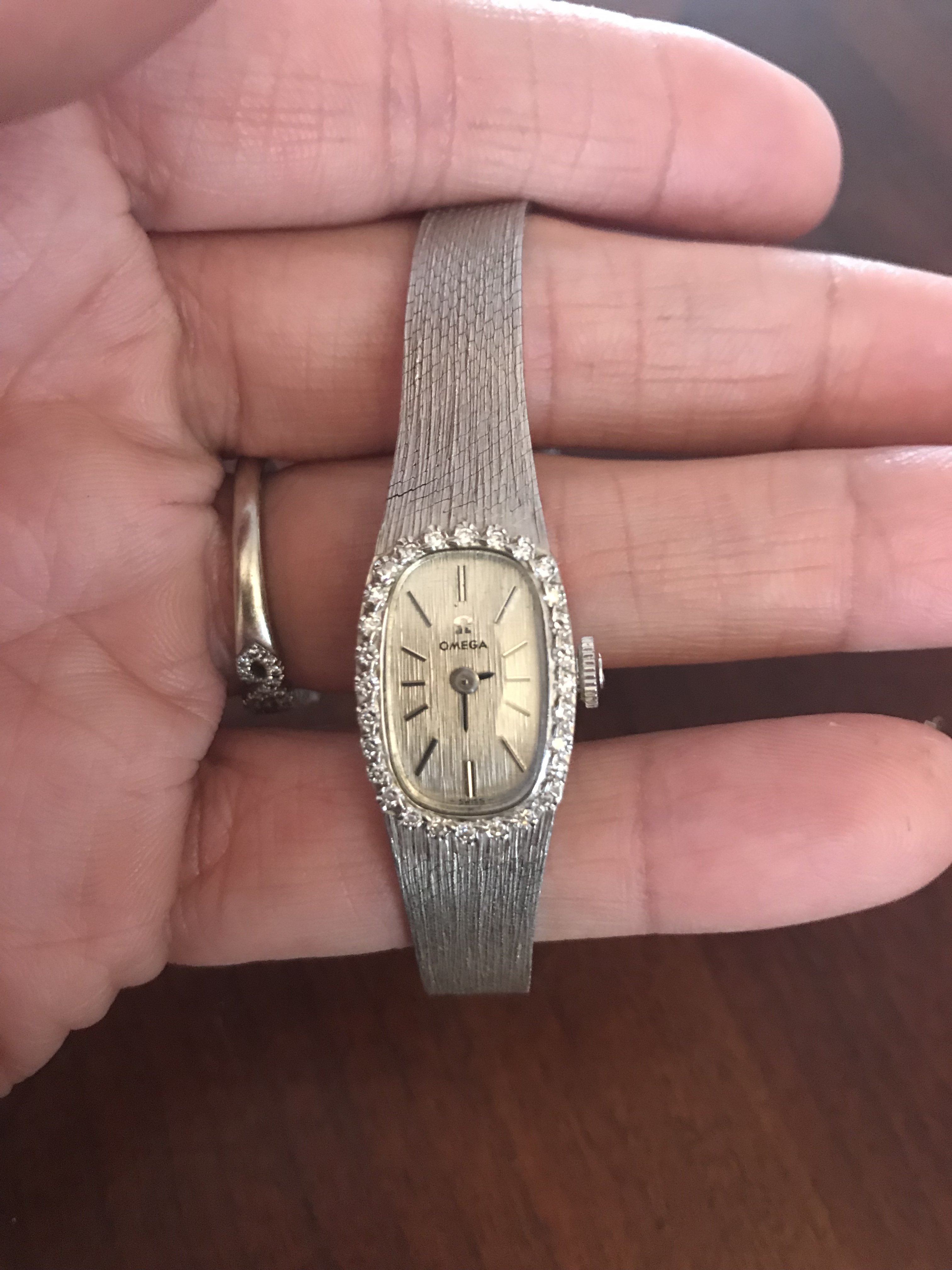 ·Hello everyone! I was given a gorgeous vintage Omega diamond Women’s watch and I have only found one like it online that was 18k gold not 14k white gold. I went to the Omega Boutique to see if they could get the numbers off the inside and the employee working said he was not certified to handle the vintage Omegas and would have to send to Switzerland for them to give us all the specs and details. He thinks it’s 1960’s and He recommended I try the Omega forums for more help. Here are some photos I tried to get the best pics I could . I’m trying to find out the type of Omega and the value if anyone may know more about this beautiful watch. Thank you so much!