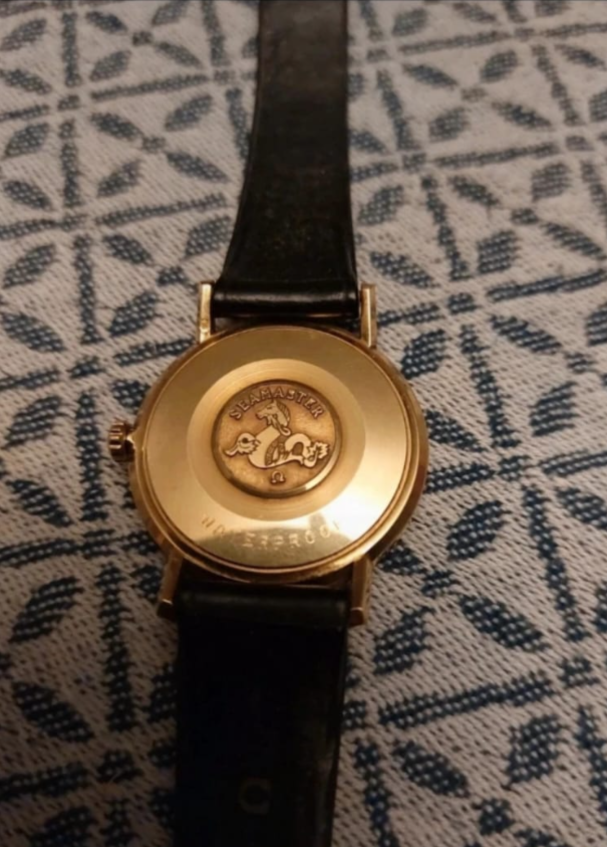 The pictures in the listing are quite bad quality and the elderly seller has a hard time to take good pictures on request. Her husband was the first owner of the watch, but she does not know anything about service history/repairs and such, but it looks to be in quite good condition overall and comes with original band, buckle and box.