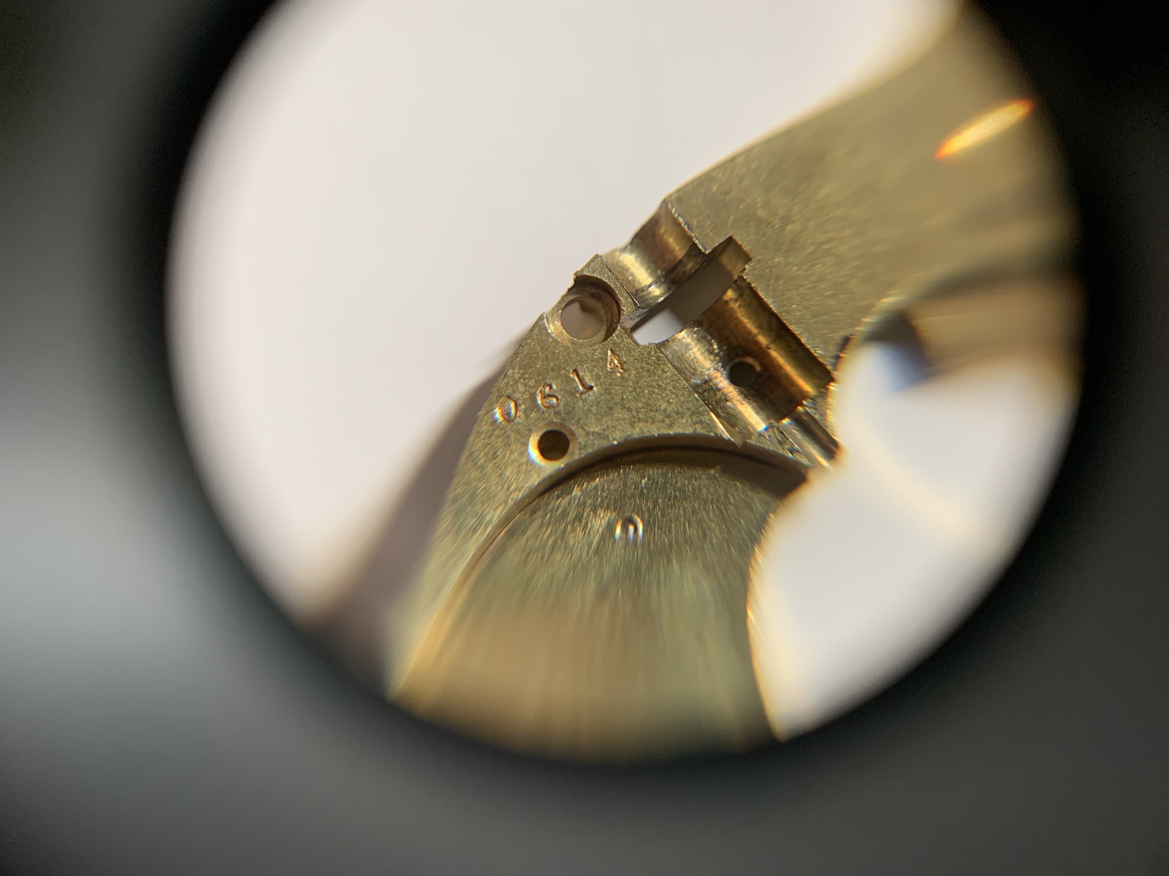The only other markings on this movement are under the bridges and the balance (marked 0614). I am assuming the 0614 was used to match parts to a specific main plate. I cannot find a reference to the caliber - even under the dial.