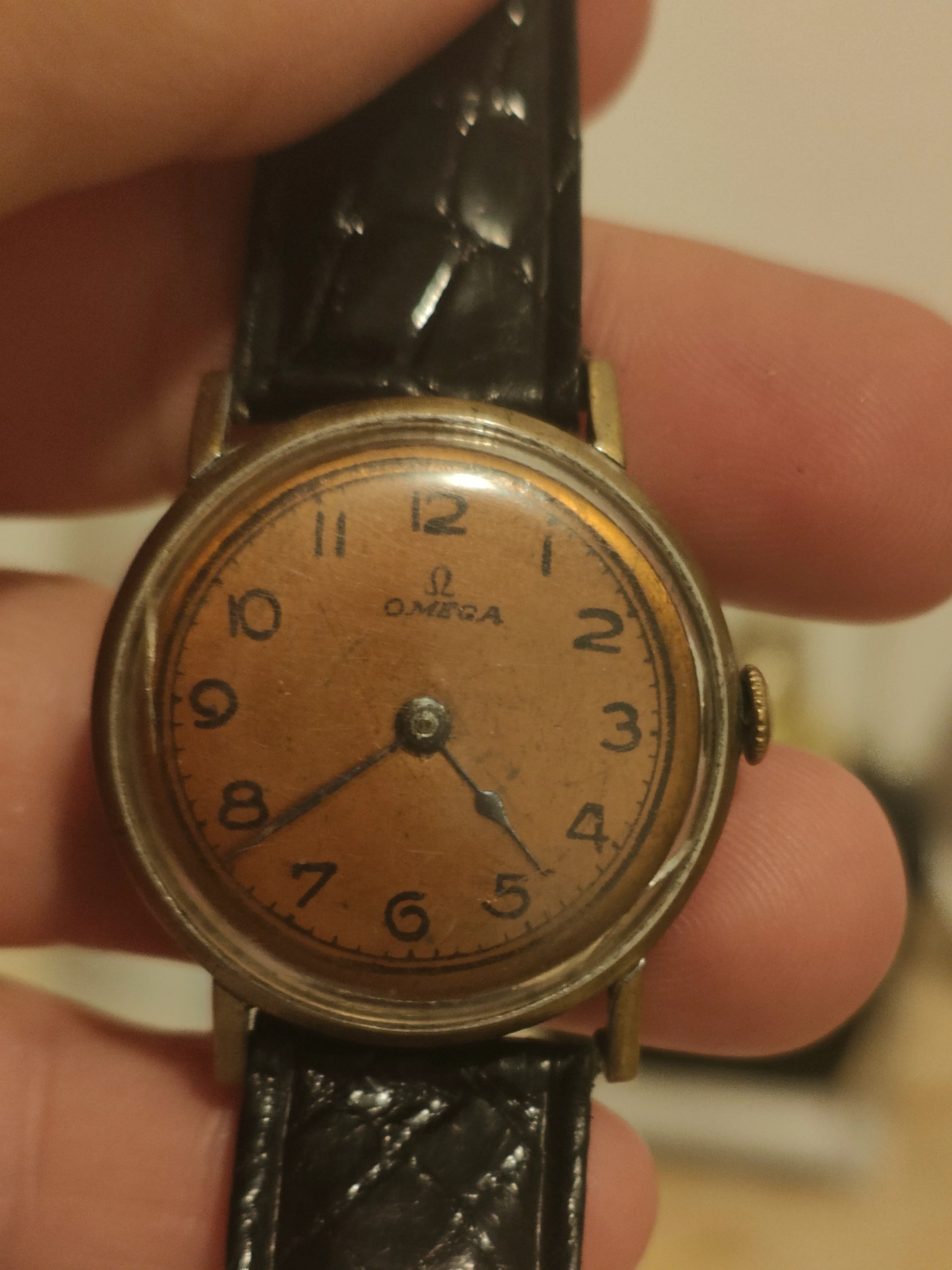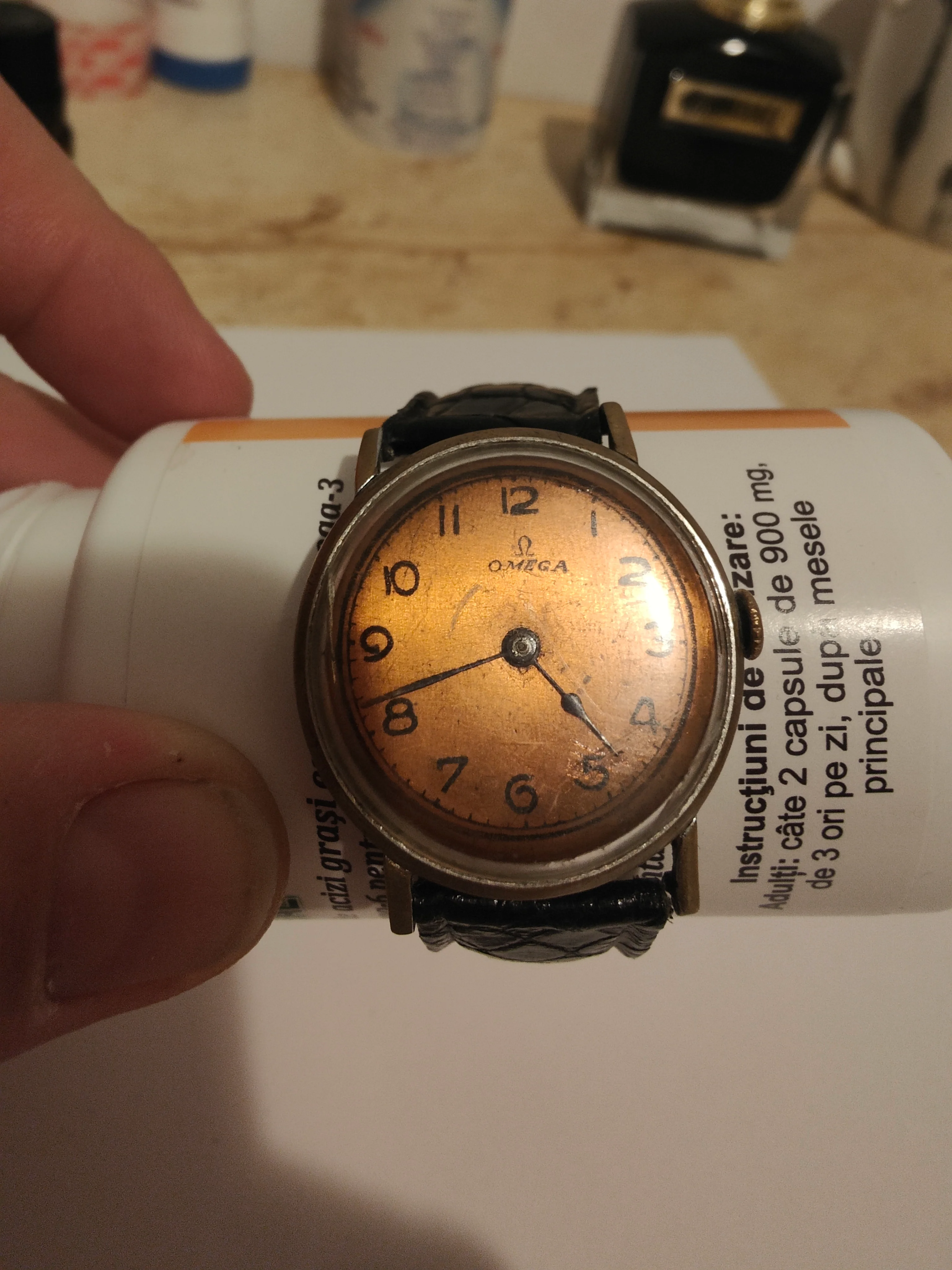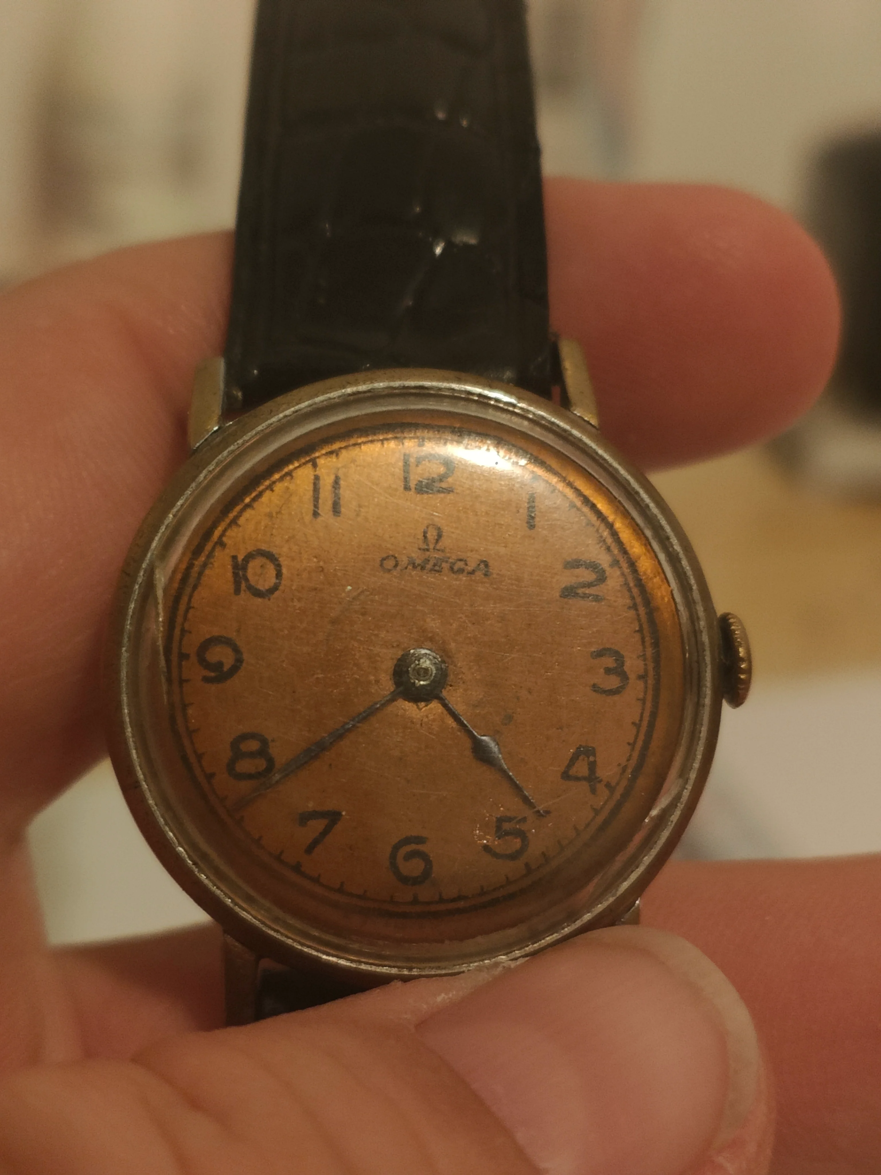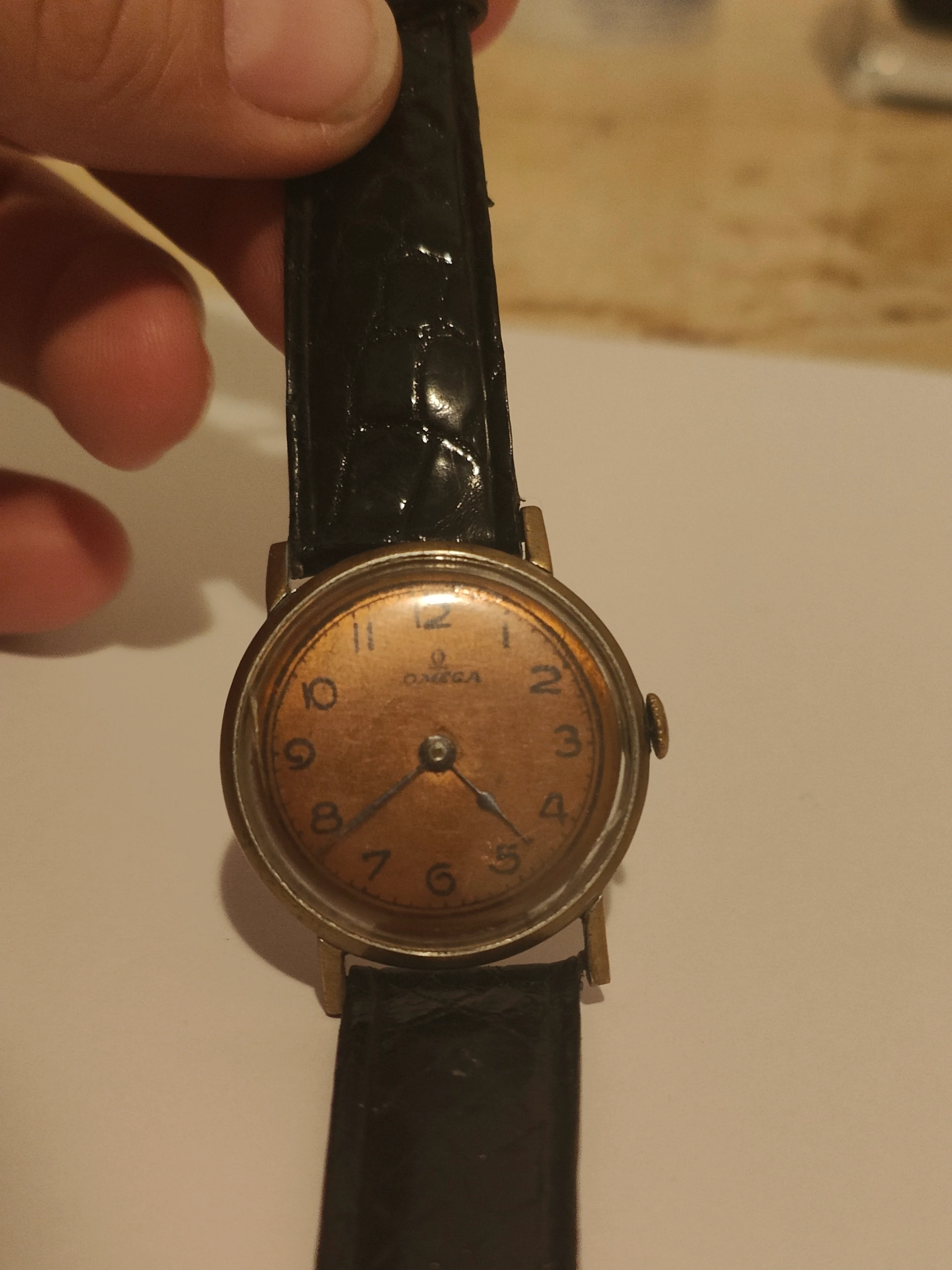 I recently found this vintage Omega watch with a gold case and a copper-colored dial, and I’d like to learn more about it. I’ve tried to identify the exact model, but I haven’t found any precise information, so I hope someone with more experience can help me.
