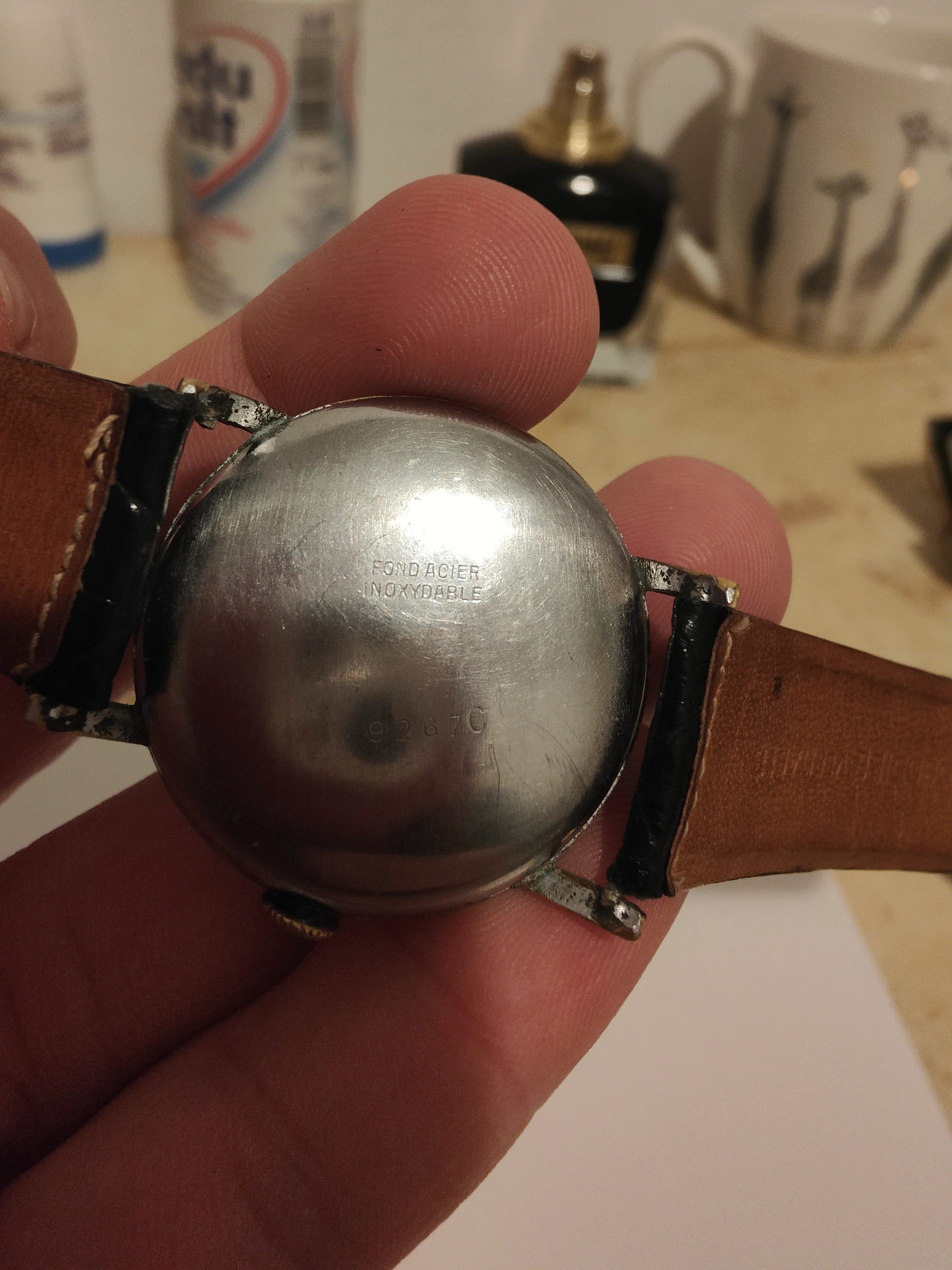 Case: Gold-colored (possibly gold-plated, but I’m not sure). The case back is marked "Fond Acier Inoxydable" (stainless steel back).