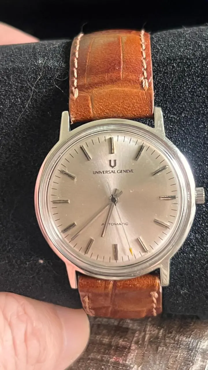 Posts 16 Likes 26 Marcefe ·Tues. 12:47pm Hello eveyone, I am new to the Universal Geneve world, and would like to know if anyone here could help me identify this model. There are no markings or numbers between the lugs, nor on the outer part of the case back.