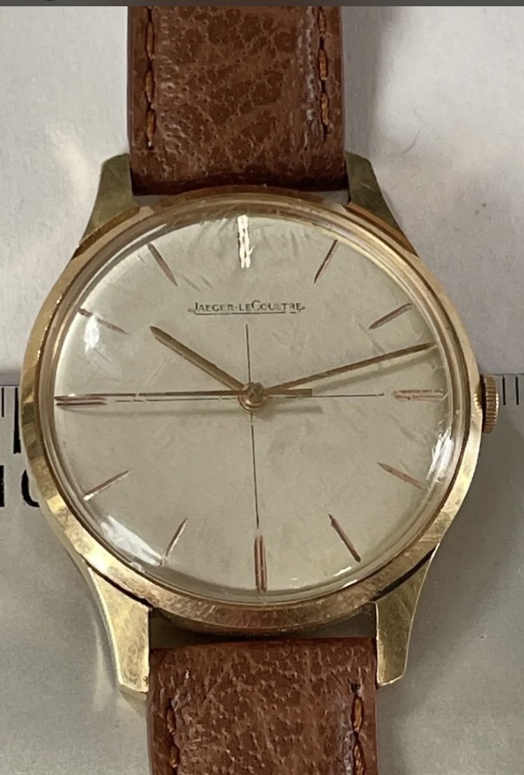 At first glance it appears to be a very nice example of a vintage JLC. But on closer inspection, I would say that there are questions about the originality of the dial. Those questions relate to the signature.