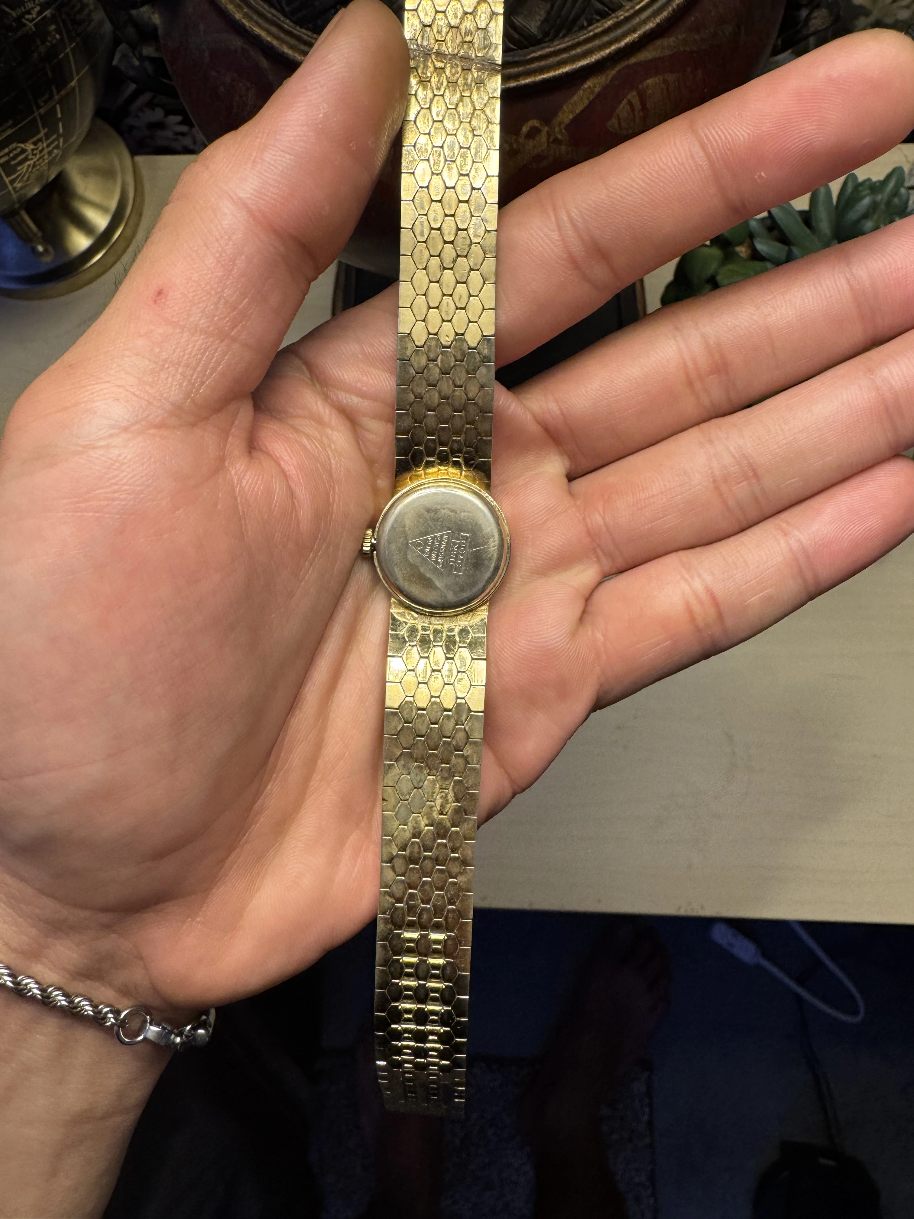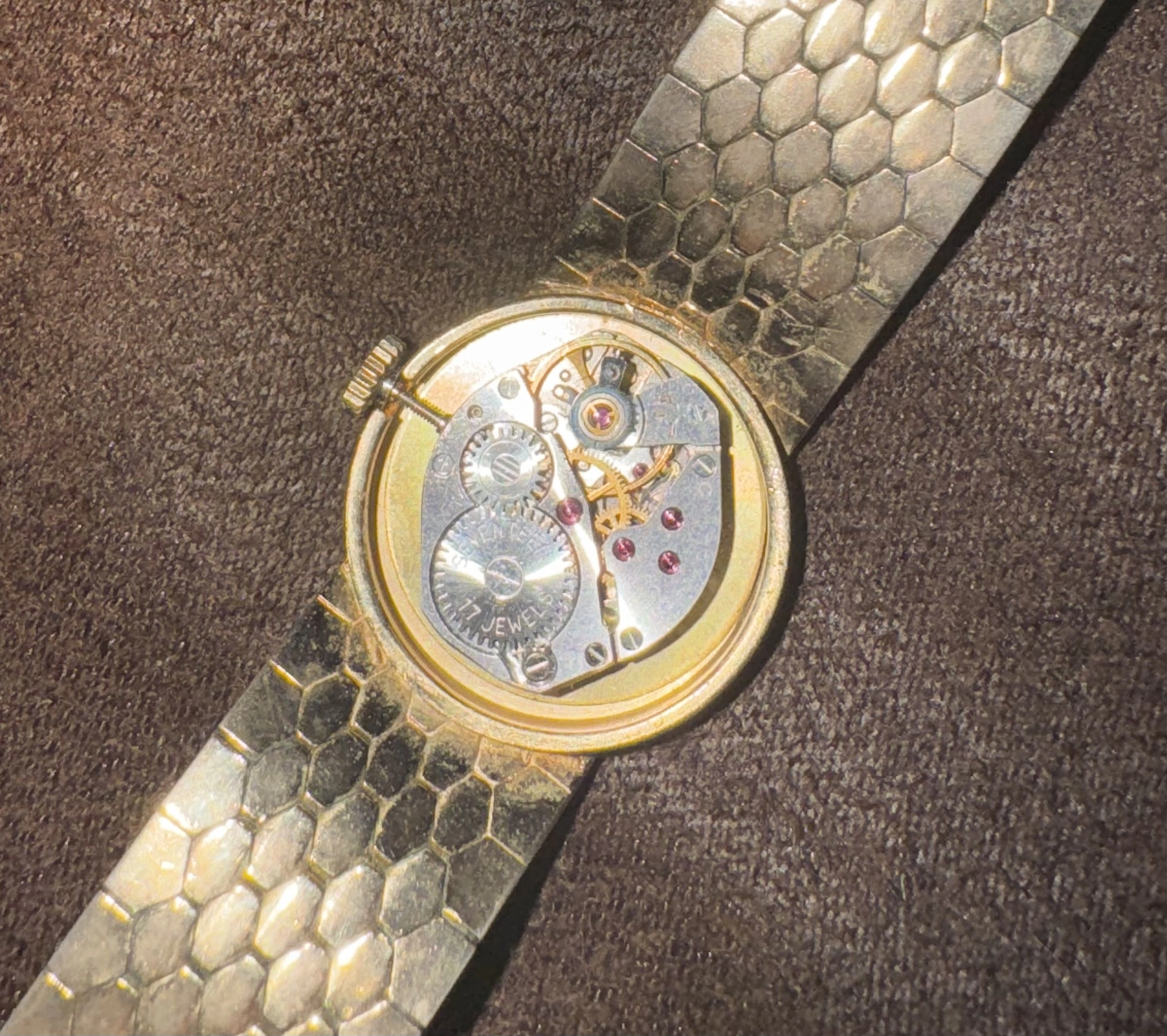 • The bracelet has a honeycomb texture, possibly from the 1950s–60s