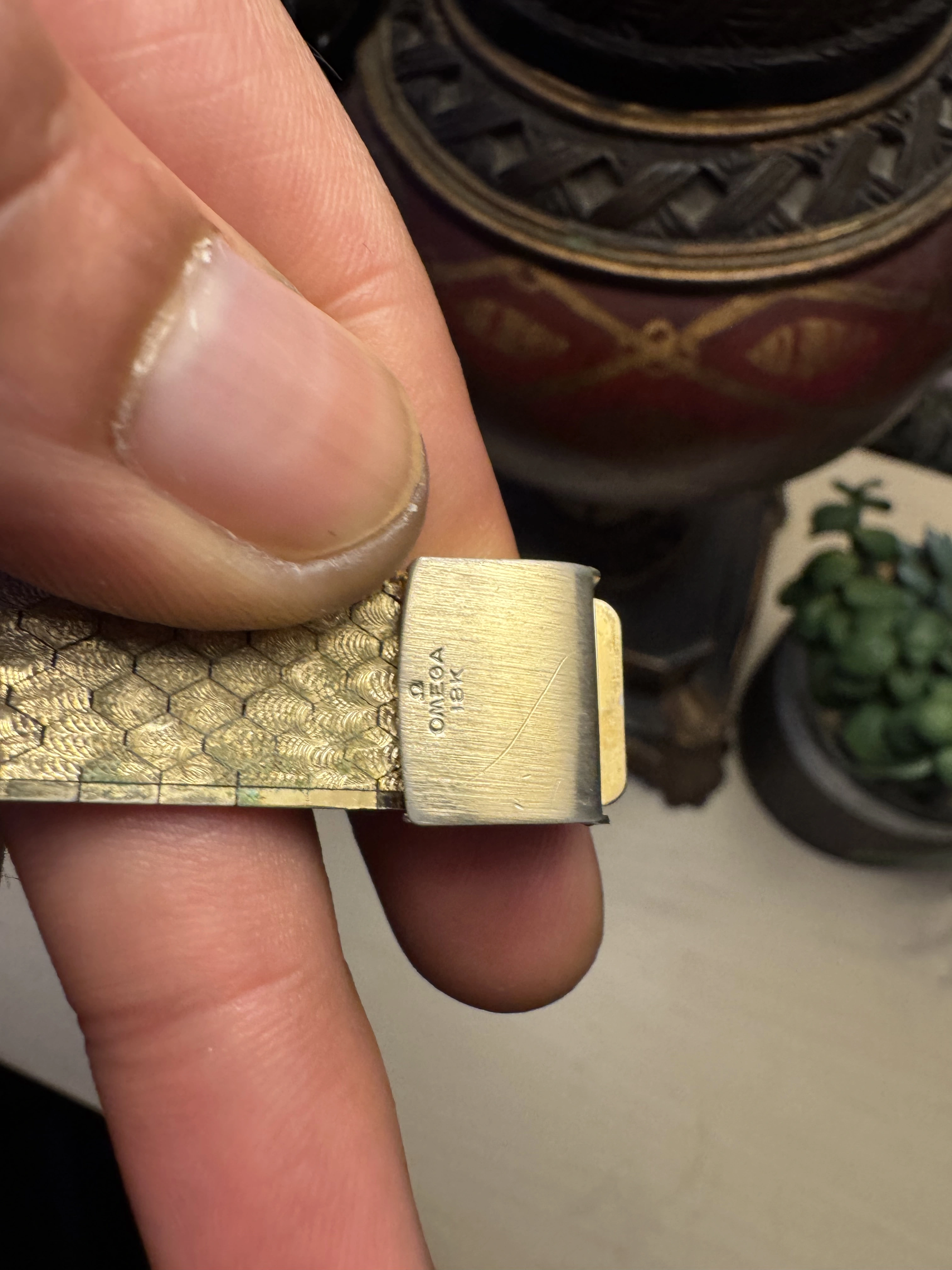 • The clasp also reads “Ω OMEGA 18K”