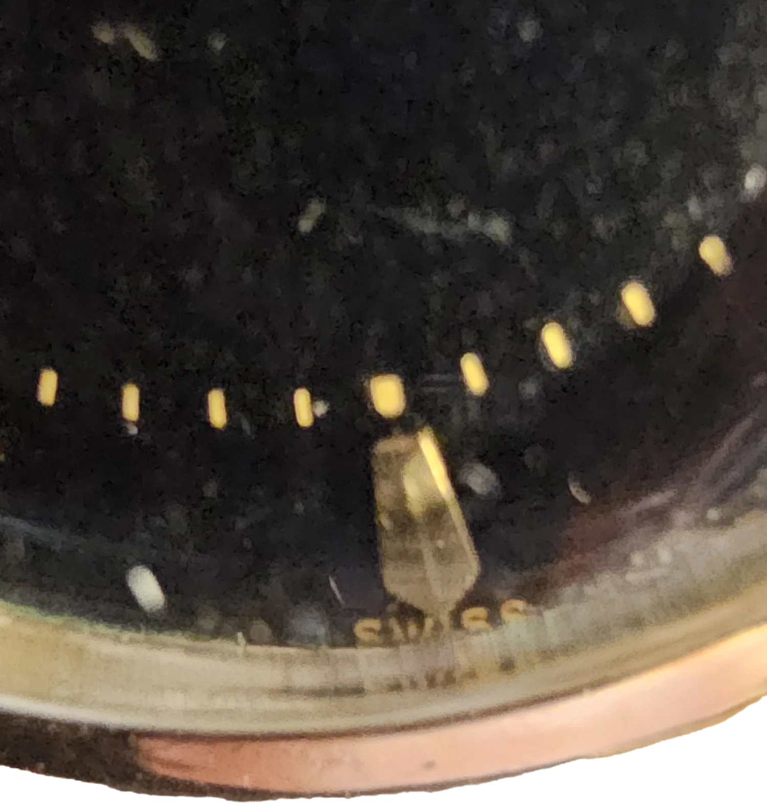 The dial contains three lines of text (all in gold):