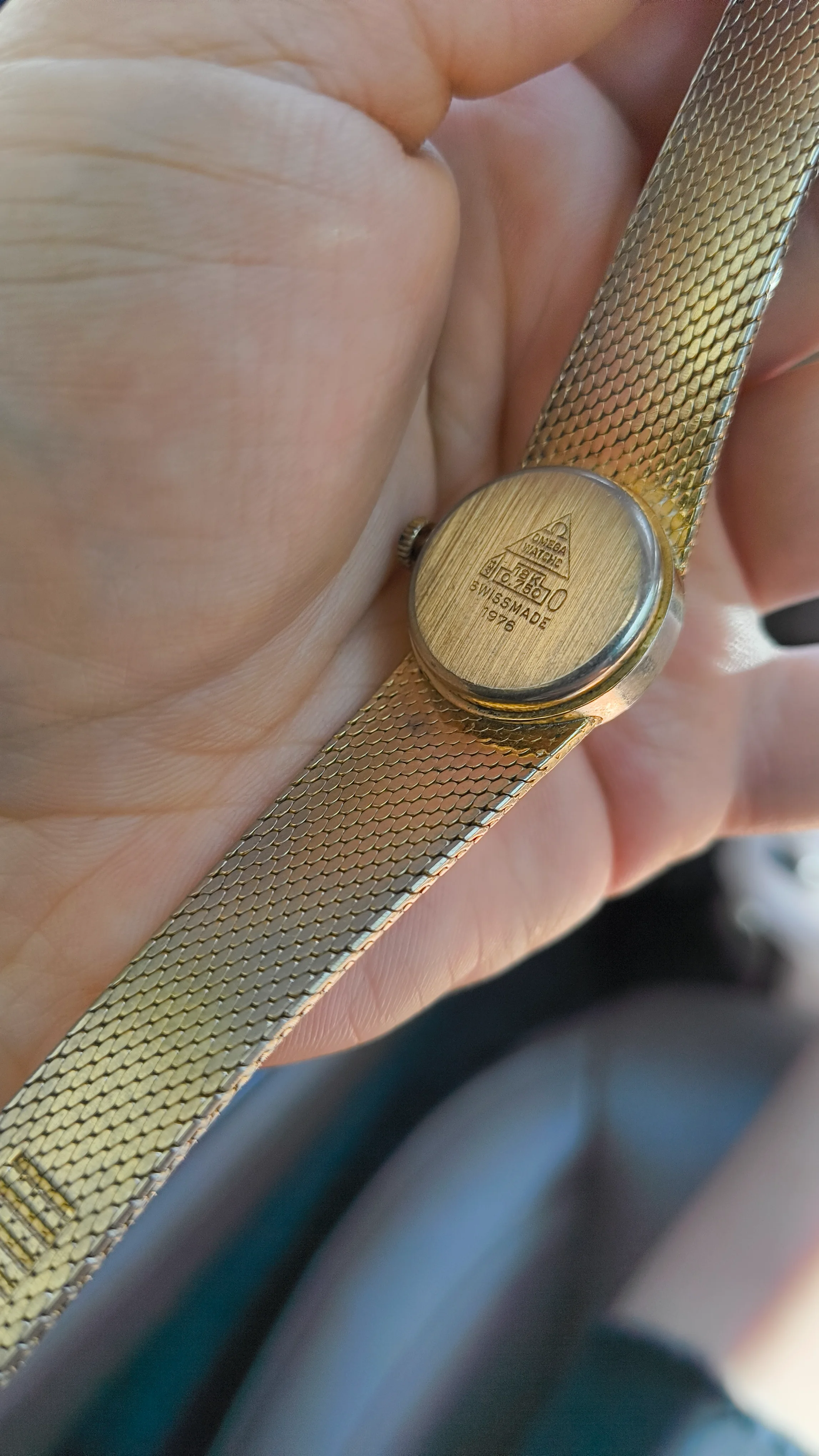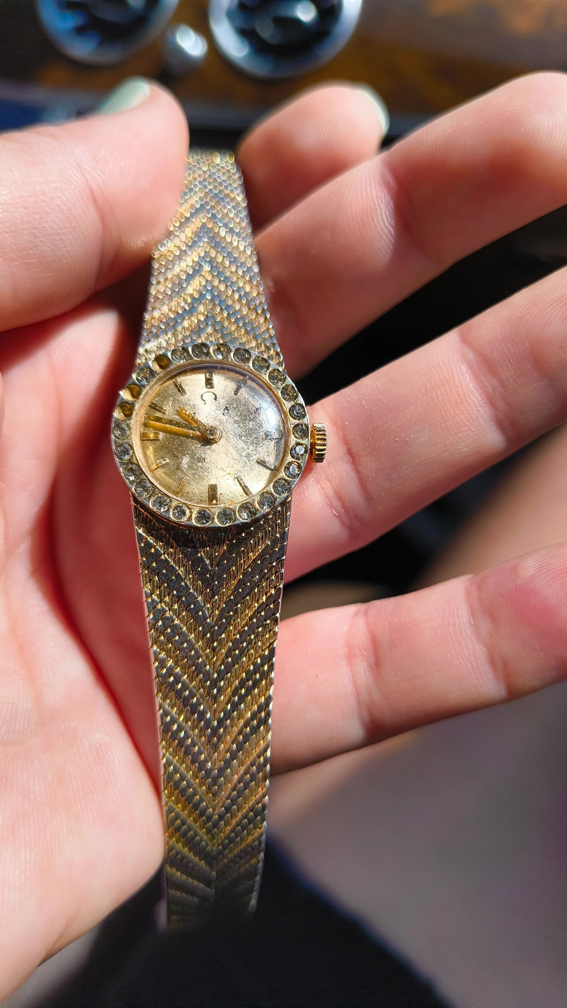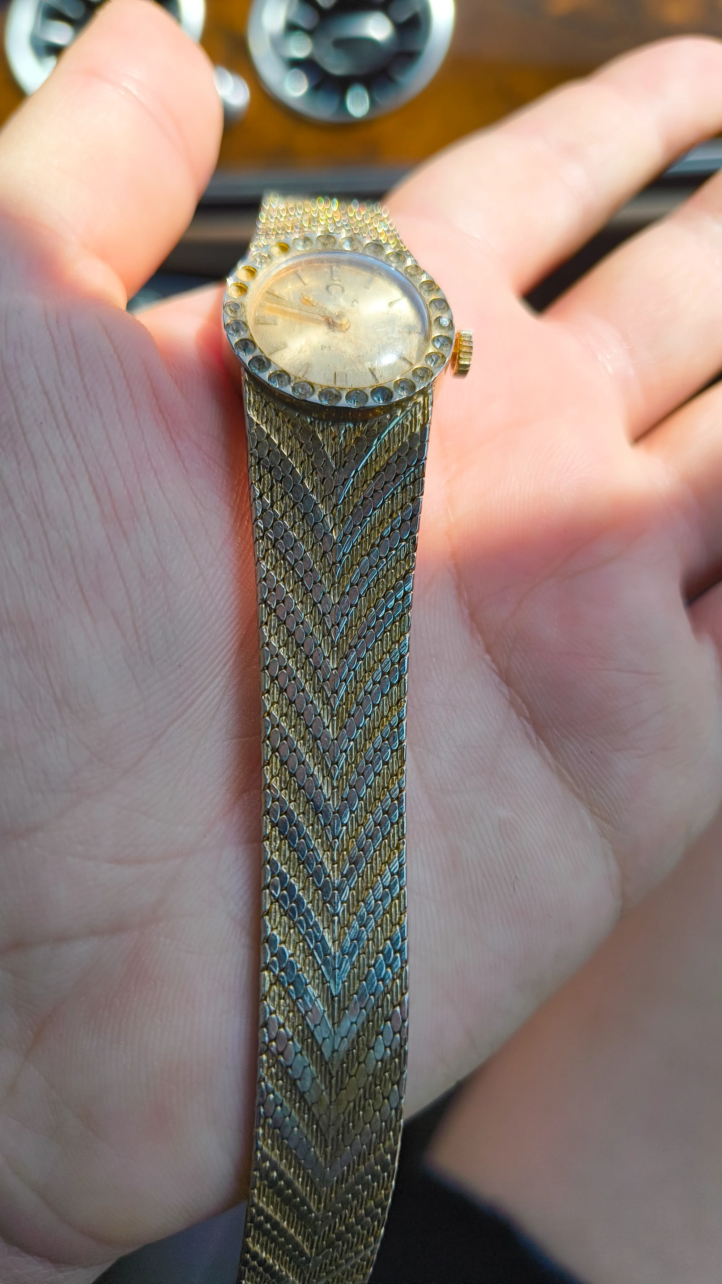 It’s a fake unfortunately. Those stamps of omega on the case back is typical of fakes of that era (omega signed inside of the case back) . Also 18 k stamp that should be on solid gold watch is also a dead giveaway.