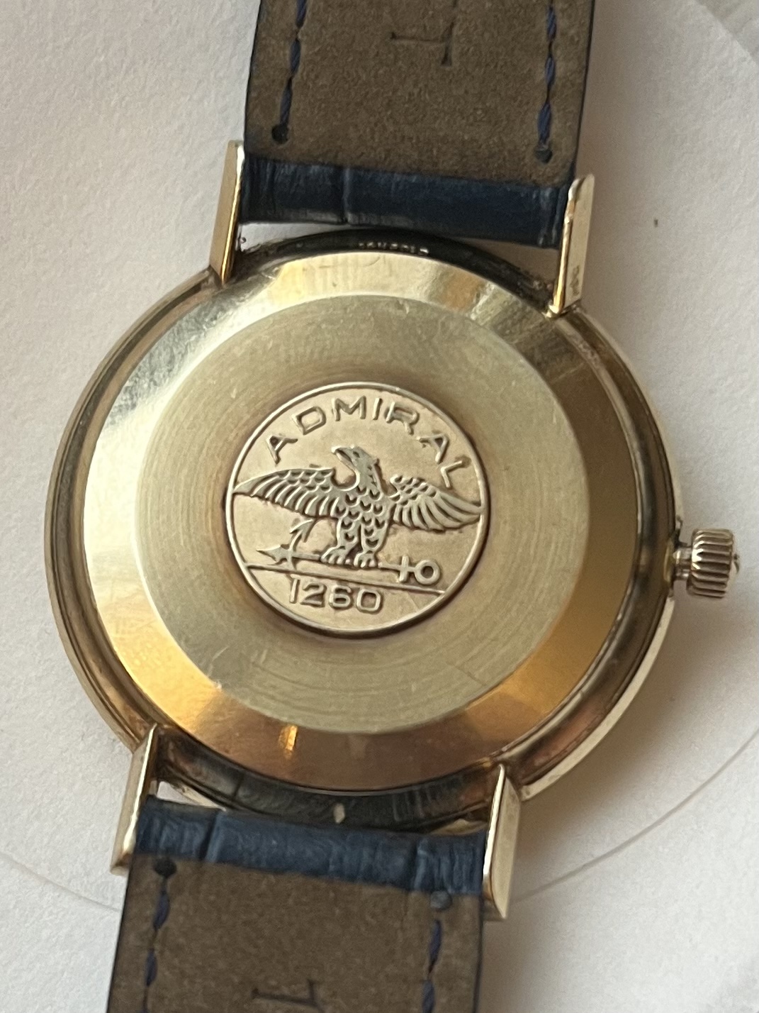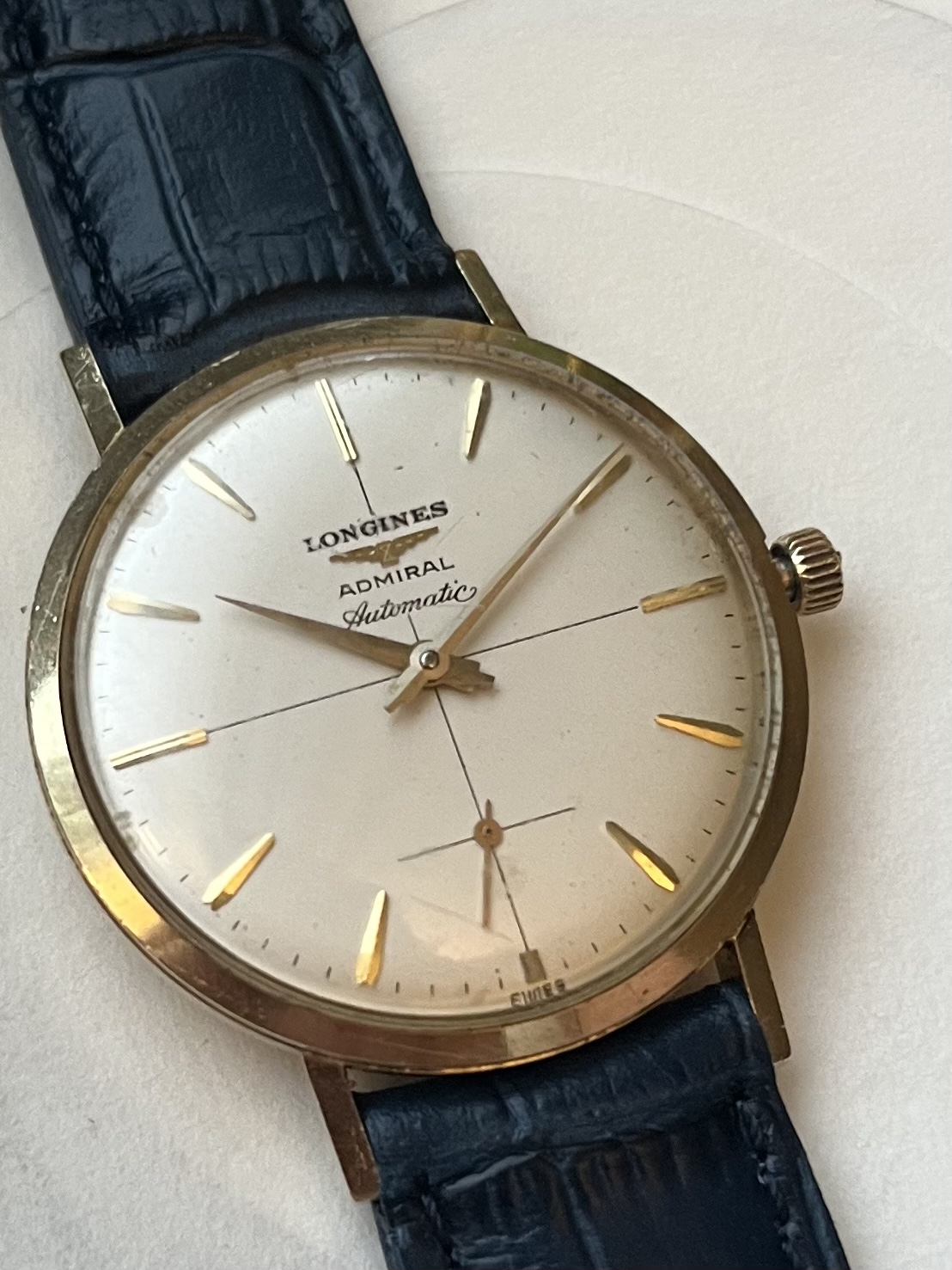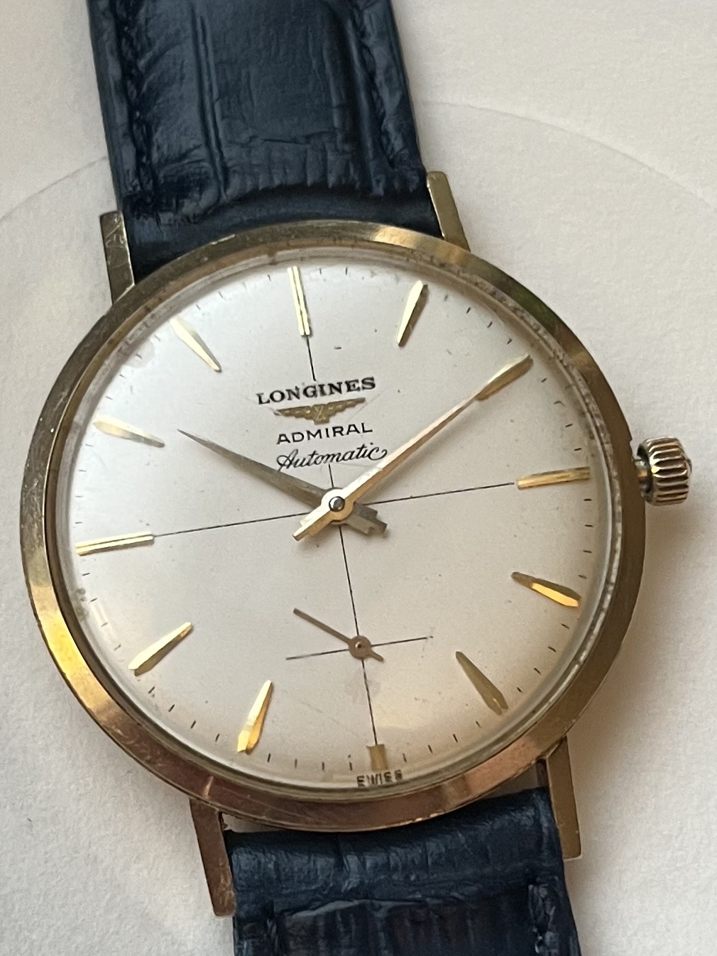 I’m having a hard time identifying the reference / year of the watch. It’s an admiral as seen on the dial. It’s about 34mm case size, and as seen in my attached photos says “1260” on the back. Between the lugs it’s stamped with “14 kt gold” so I believe it’s solid gold as opposed to gold filled. When I search for Longines admiral 1260, many different watches come up with only one looking like this one.