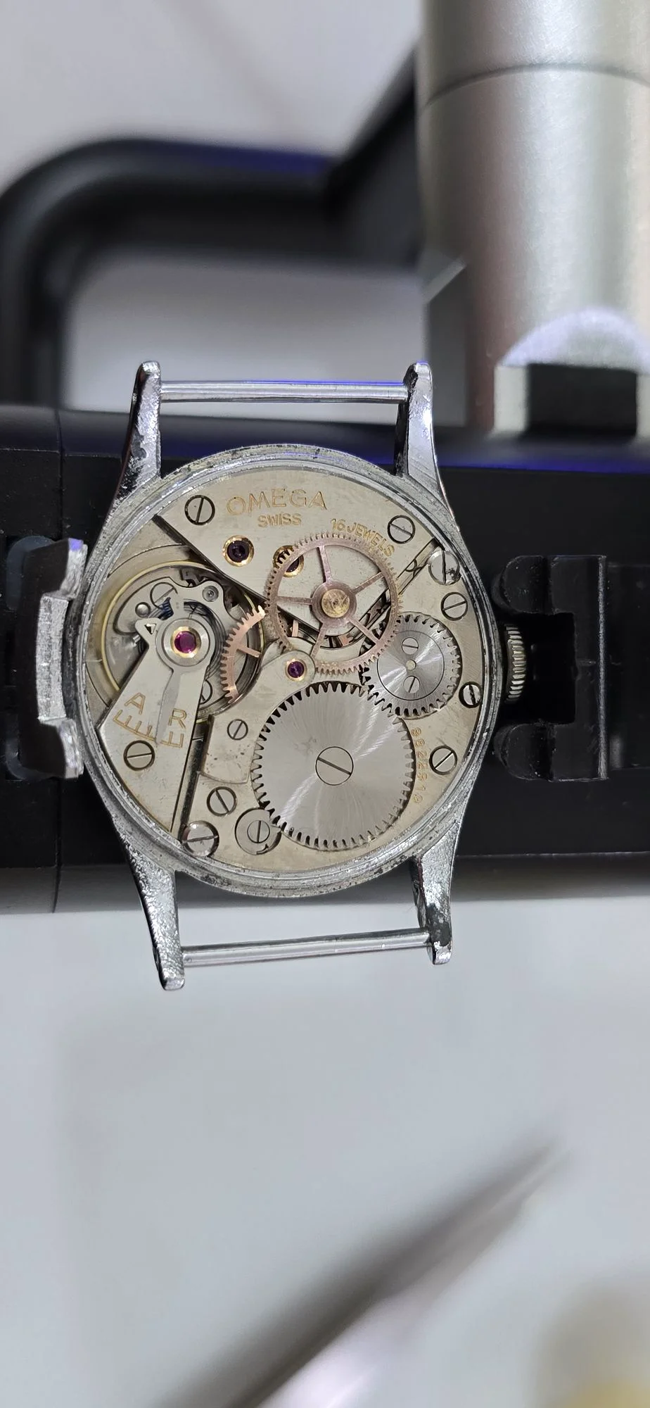 I got an omega watch from my father and I cared about it's restoration. Now I'm looking for a specific informations about what could it be. I've read about the WWII history of that line of watches. It suppose to be made about 1938, according to the mechanism serial numbers. Case is also marked as 2292, so it could be the original chrome case. But I do not know why it might have a black dial. I thought that the originals came with white ones. Any help and suggestions would be really welcome. Have a nice day!