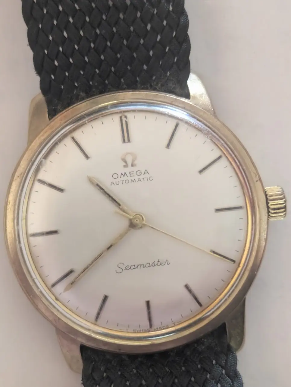 Looks like legit vintage Seamaster with replaced crown (which is very common not big deal). Show focused straight on photos of dial and sides and lugs and caseback.