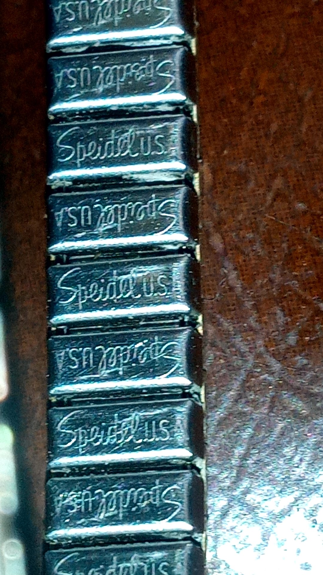 On each one of the plates on the band it says Speidel USA. It is pretty beat up but still very interested in knowing about it