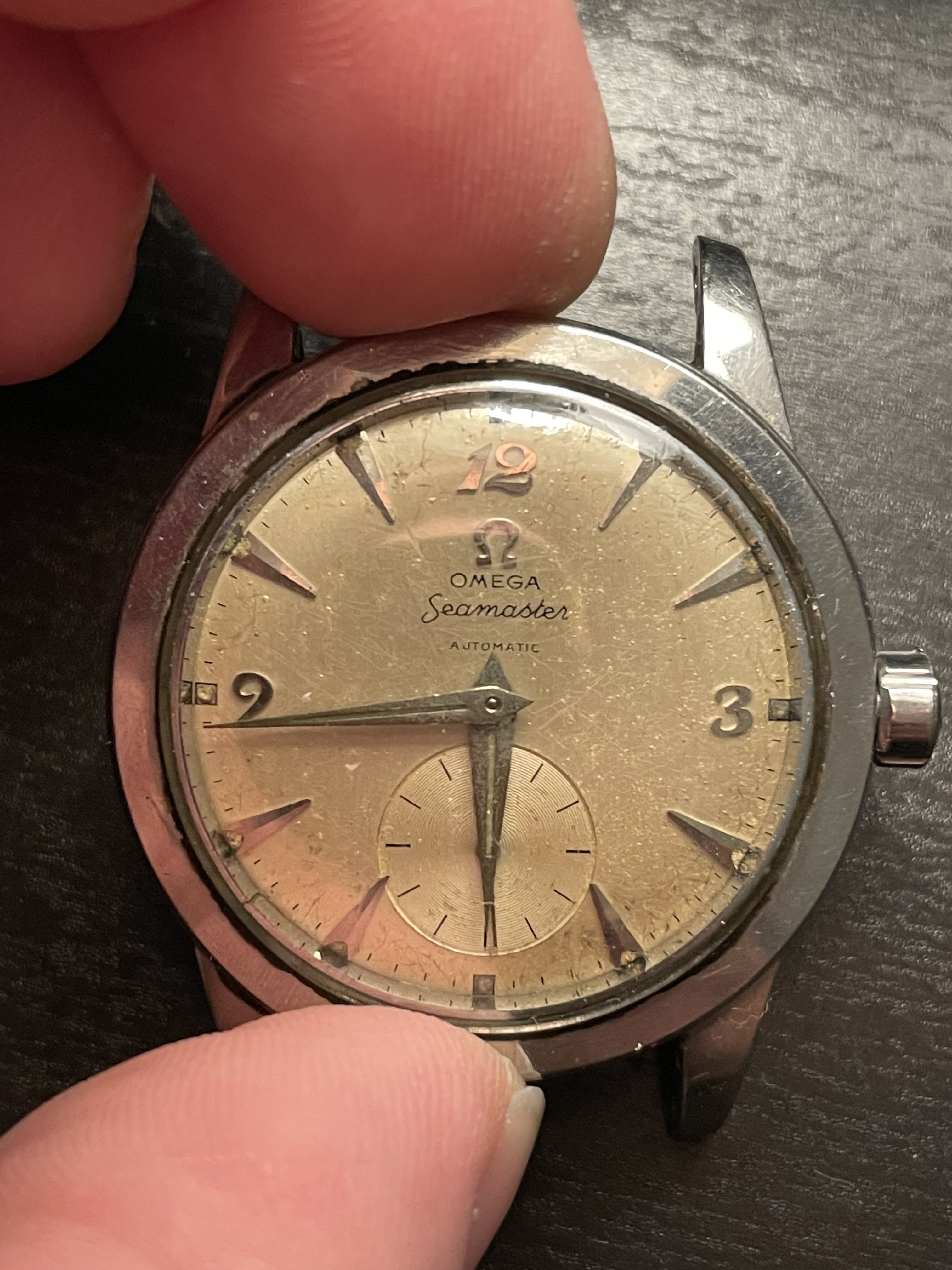 Information provided by Omega indicates this model did have radium lume. This watch hasn’t been refinished at all to the best of my knowledge, so I wouldn’t be surprised if there was still radium present.