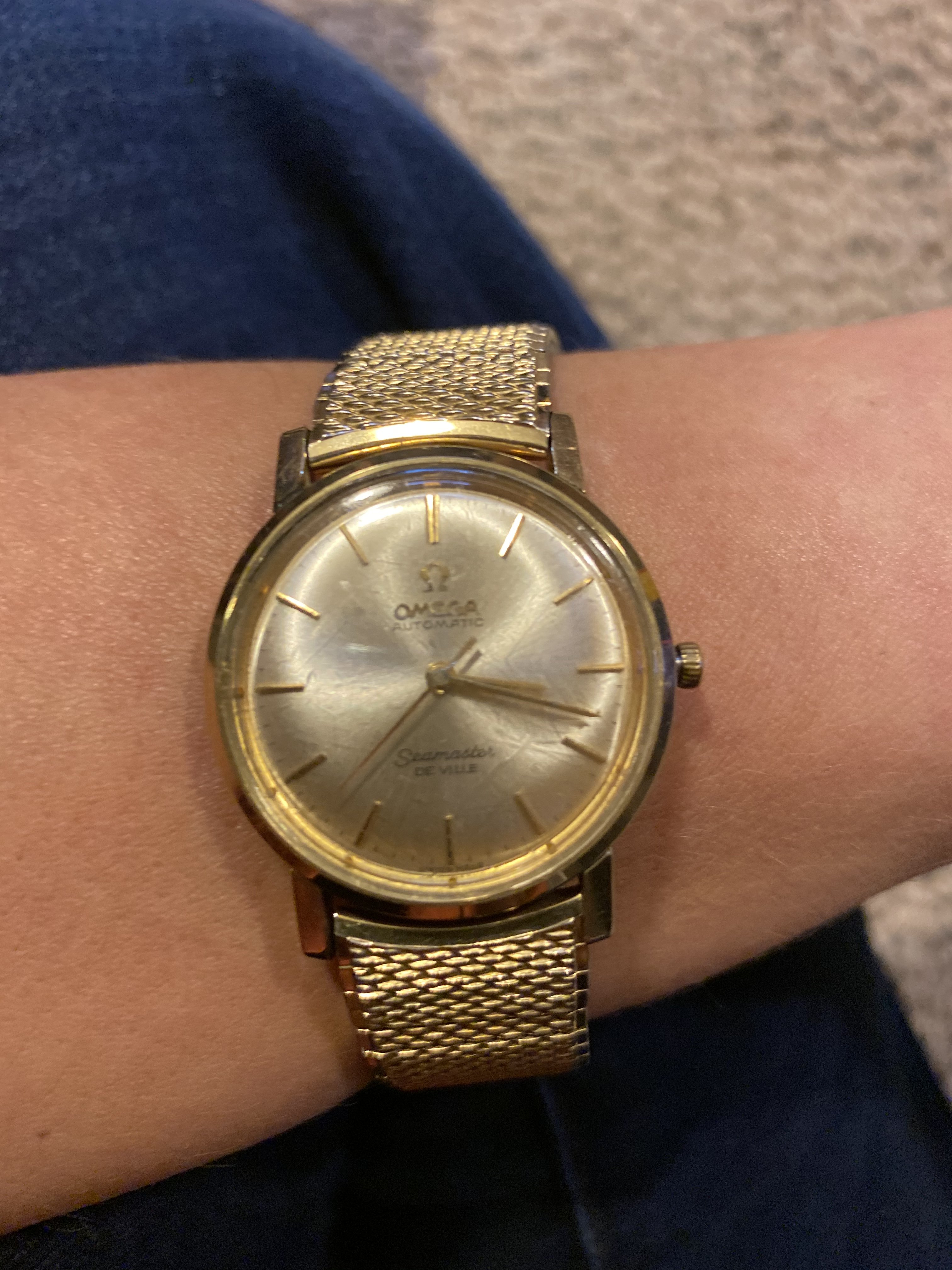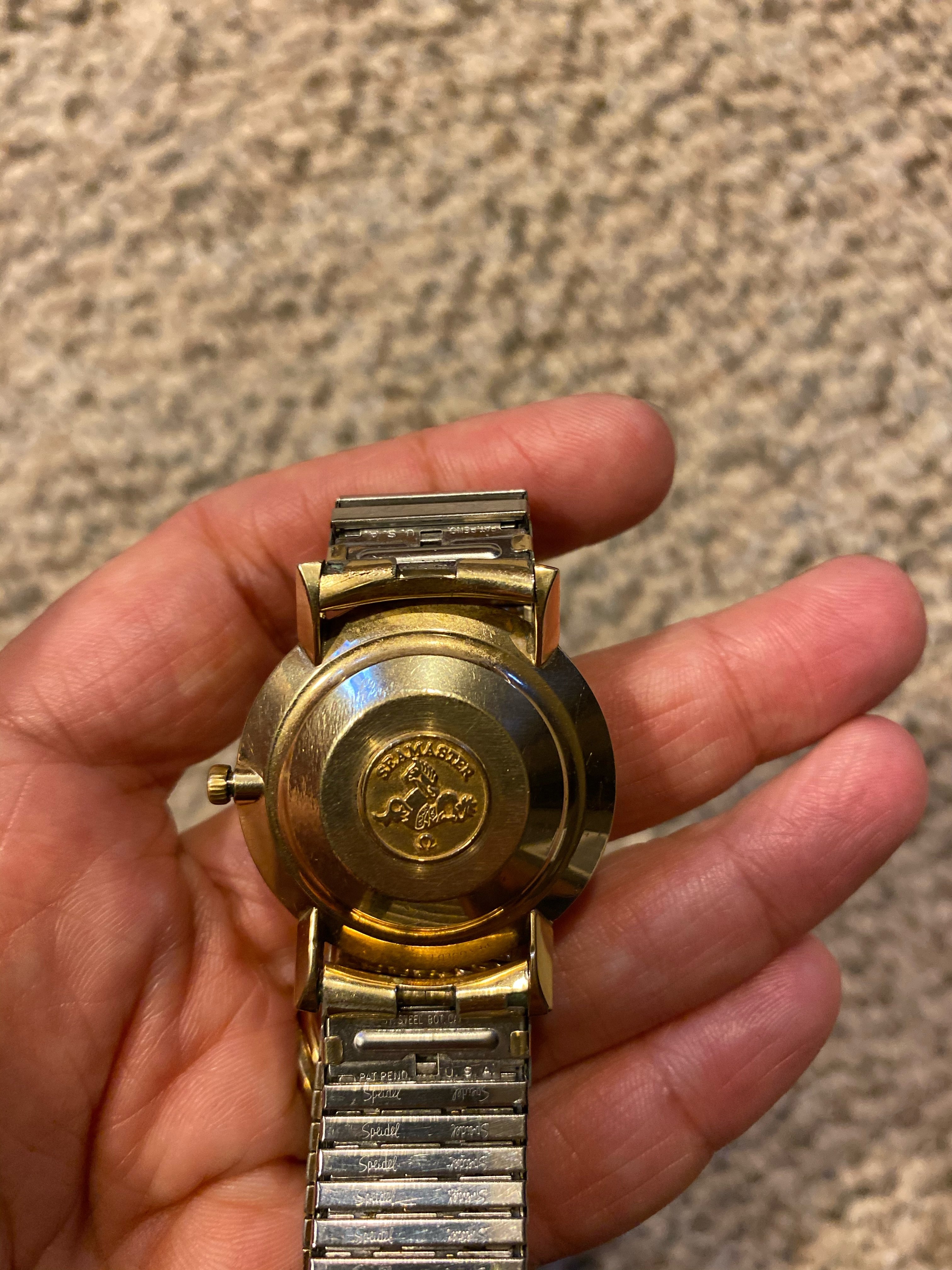 The crown isn’t orginal (nor the correct size) but the rest looks to be in very nice shape. Send it for a service and get that Speidel stretchy bracelet off- these look great on leather.