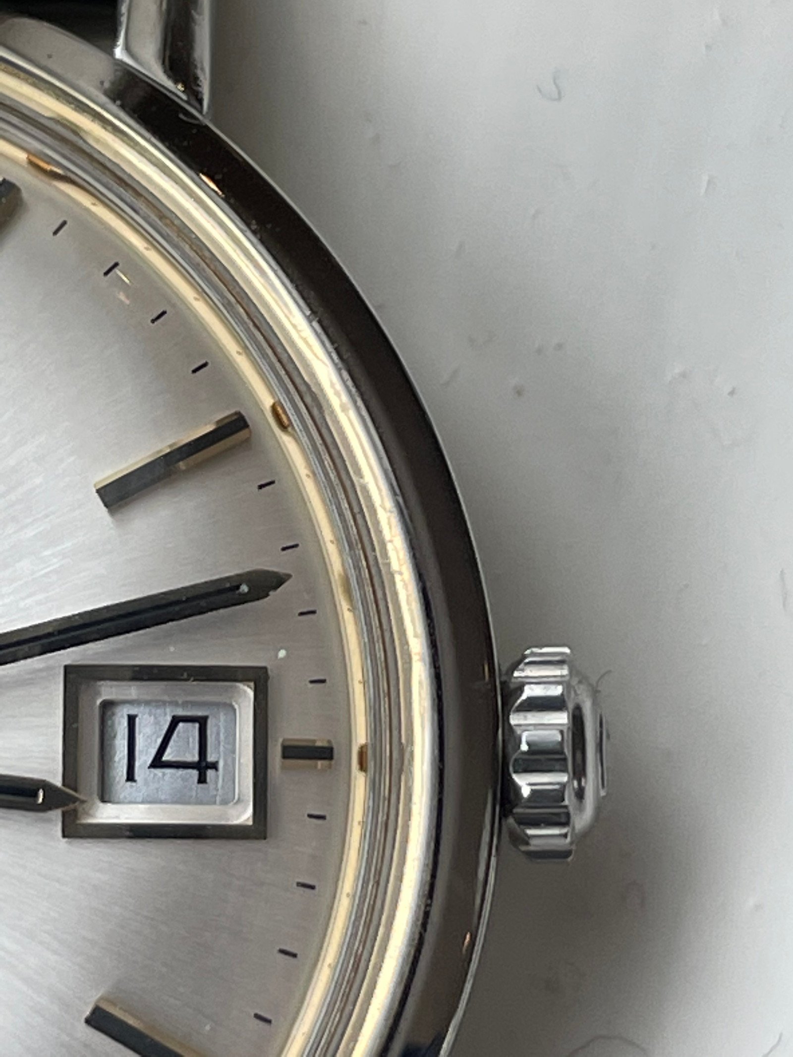 Secondly, I question the gold details vs the steel. From what I could see when researching a bit earlier today it looks like this modell came in either 100% steel OR with gold details on the dial, around the case, around the date and on the crown. Is it just the light that causes it to look gold in some of the pictures? Or is this gold, but no gold on the crown. Or is it simply just steel and the lighting in the pictures deceive me?