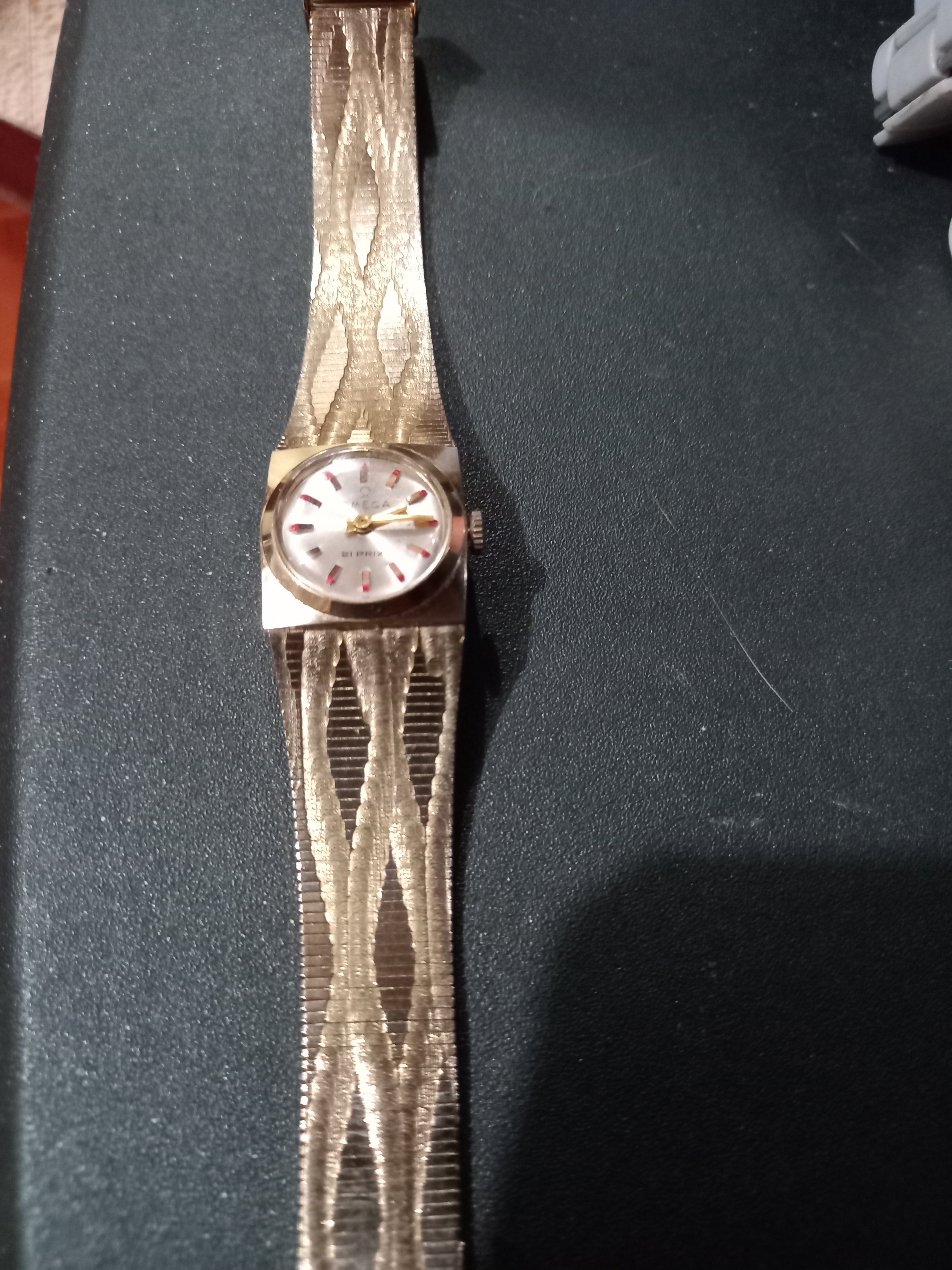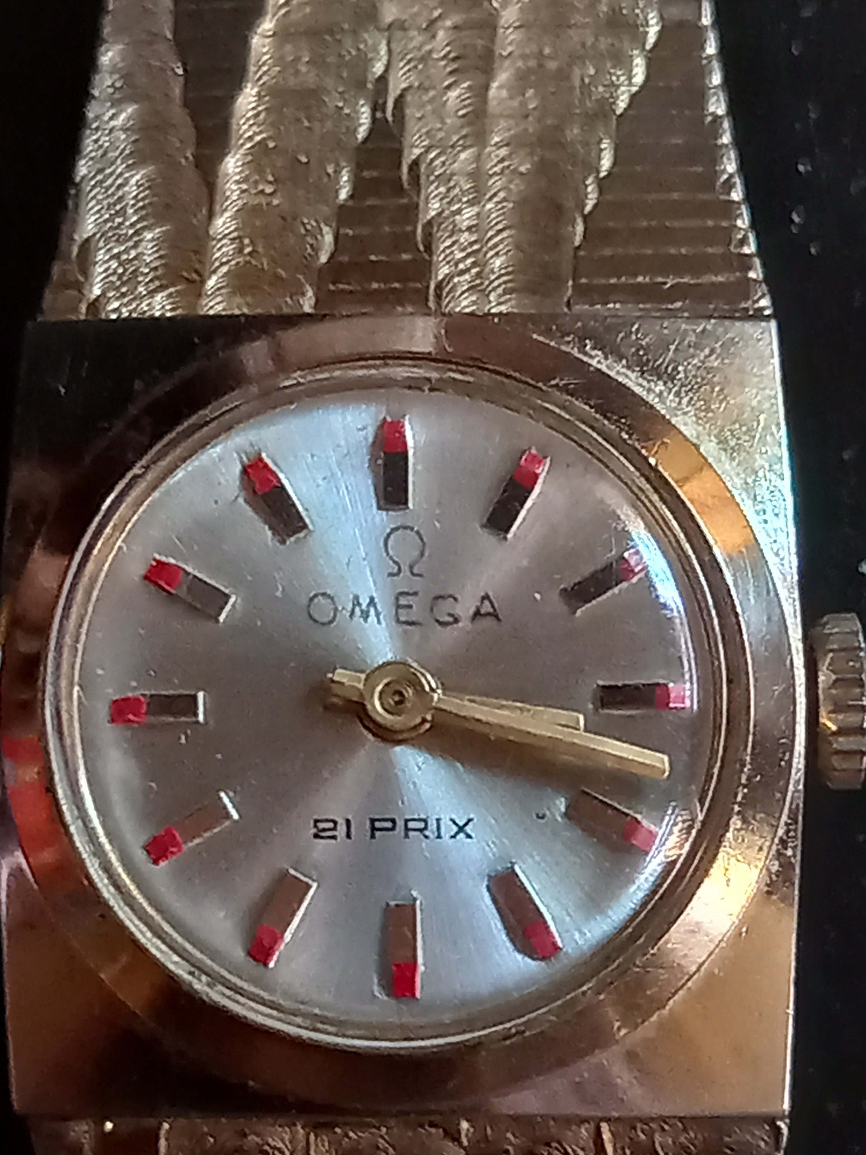 Oh God, this is one of the cases where every bit of the watch is a red flag... The texts (18k markings) engraved on it are all made by a wiggly hand. The omega text on the dial is probably written with pencil. The watch itself has no commonality with omega, other than its claim to show the time. But the list might be extended. I hope your aunt gifted it to you without any intention of getting rid of it, expecting that she was passing a nice present. This would be the only silver lining in this story.