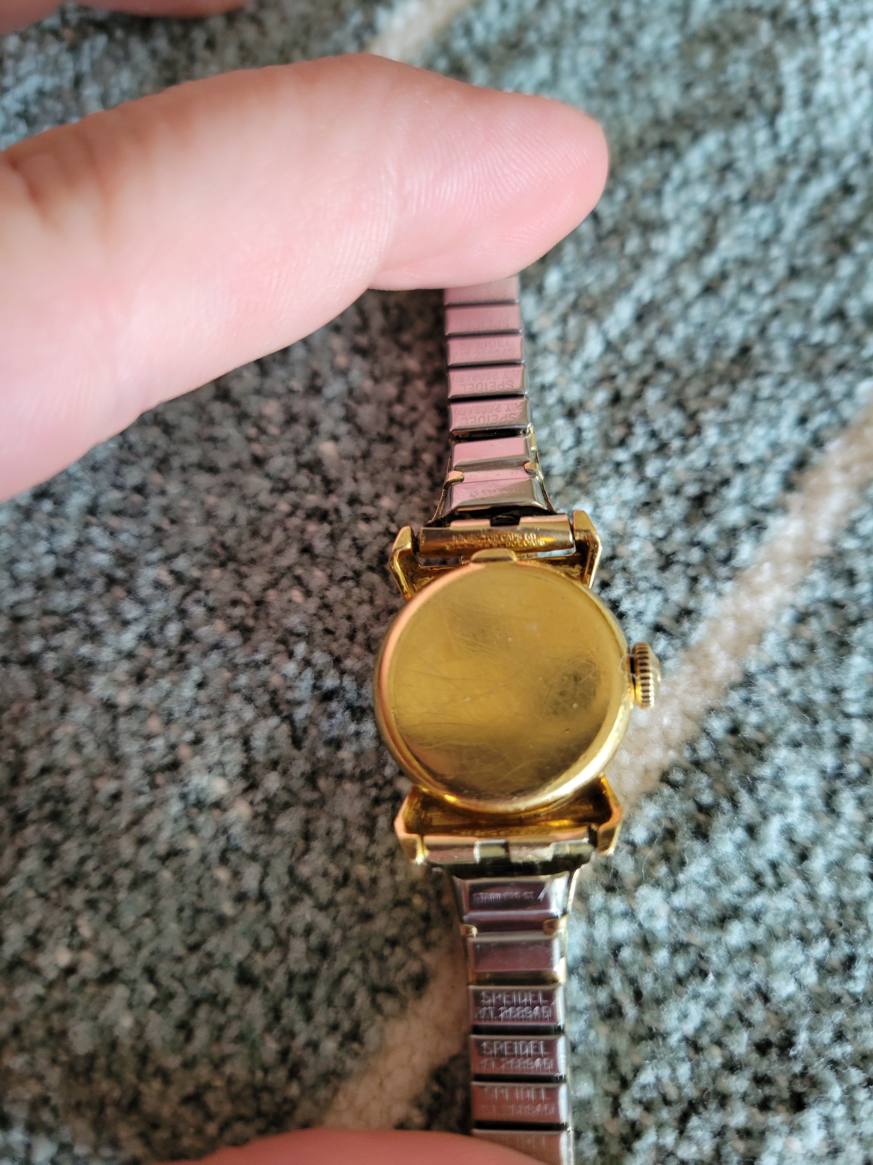 We don't know much about it. The band looks like it was replaced at one point it says Speidel on the back of it. As well as "10k GF top caps 69 stainless steel bottom caps". No engravings on the watch back itself.