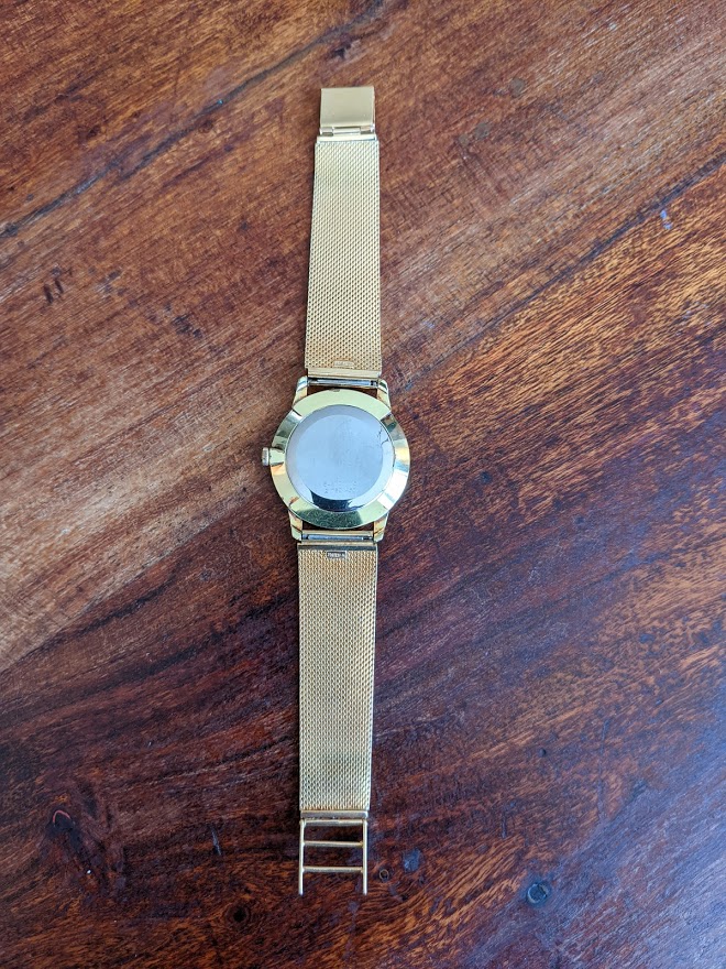 When I was a kid our local jeweller opened it up for cleaning but it hasn't been opened since probably 1975. Can't think of anything more. This may be a candidate for sale as my wife has no interest, my daughter uses her iphone clock, and I have a few other of his watches that have more personal meaning to me as I never saw him wear this.