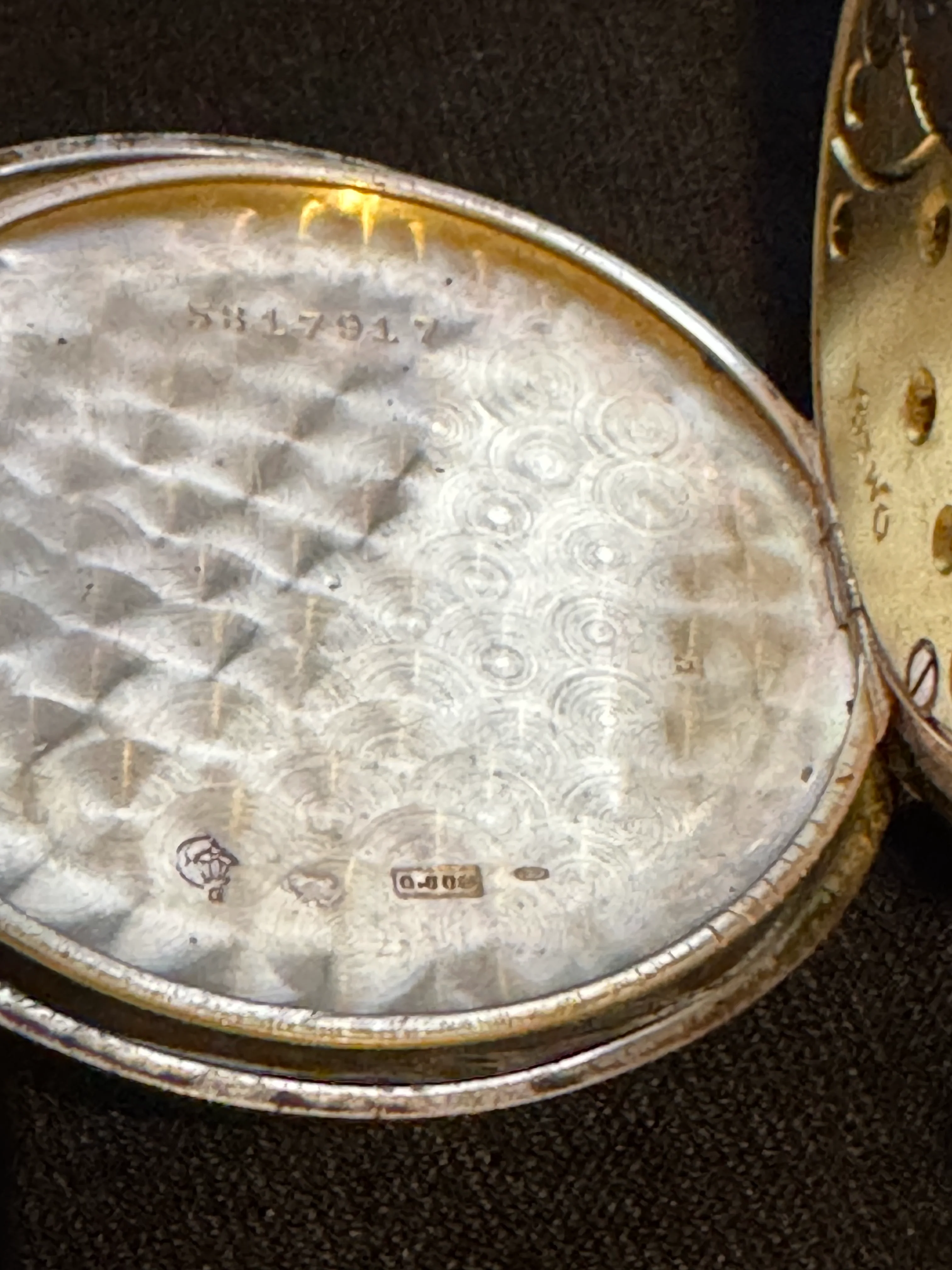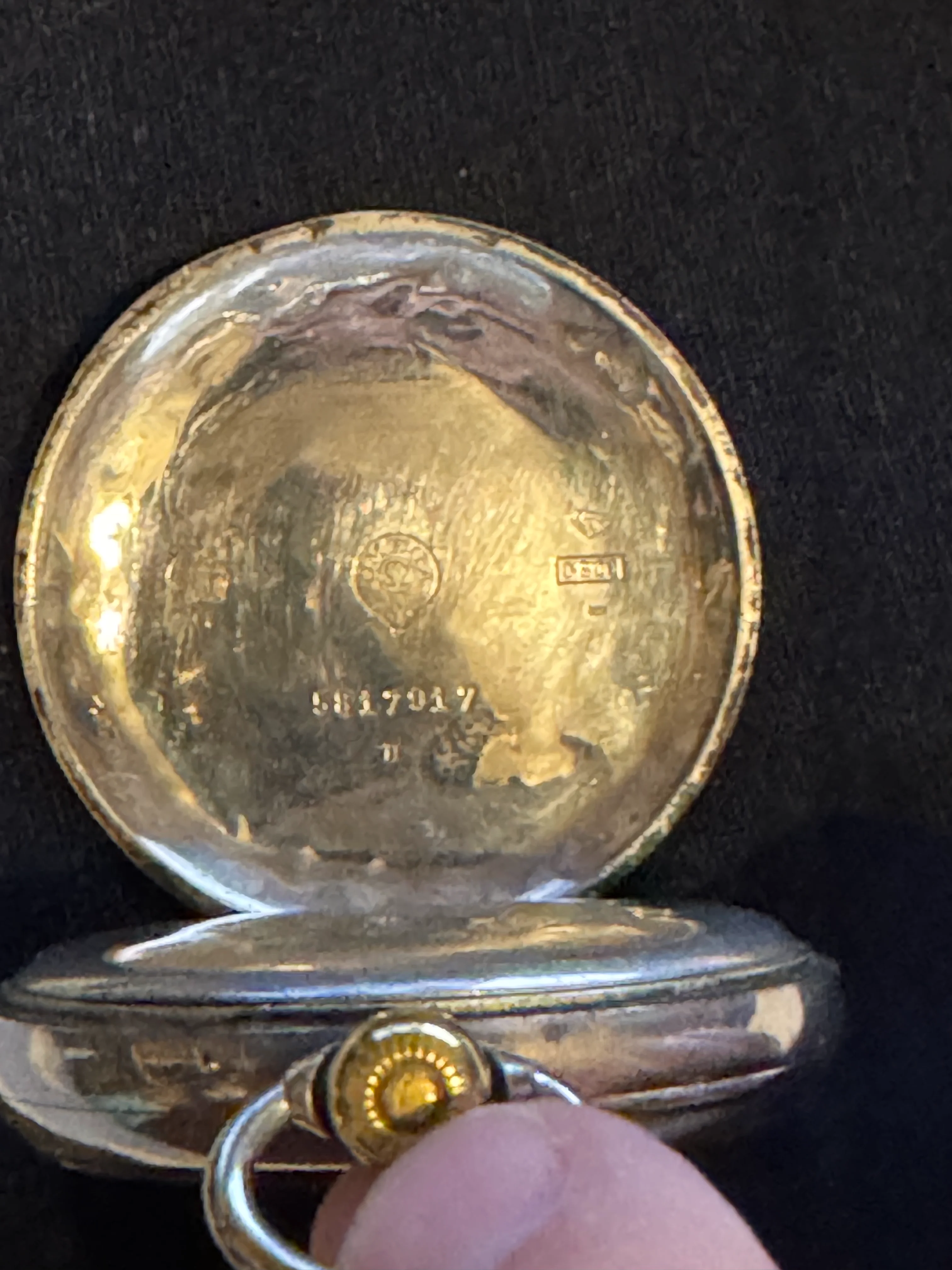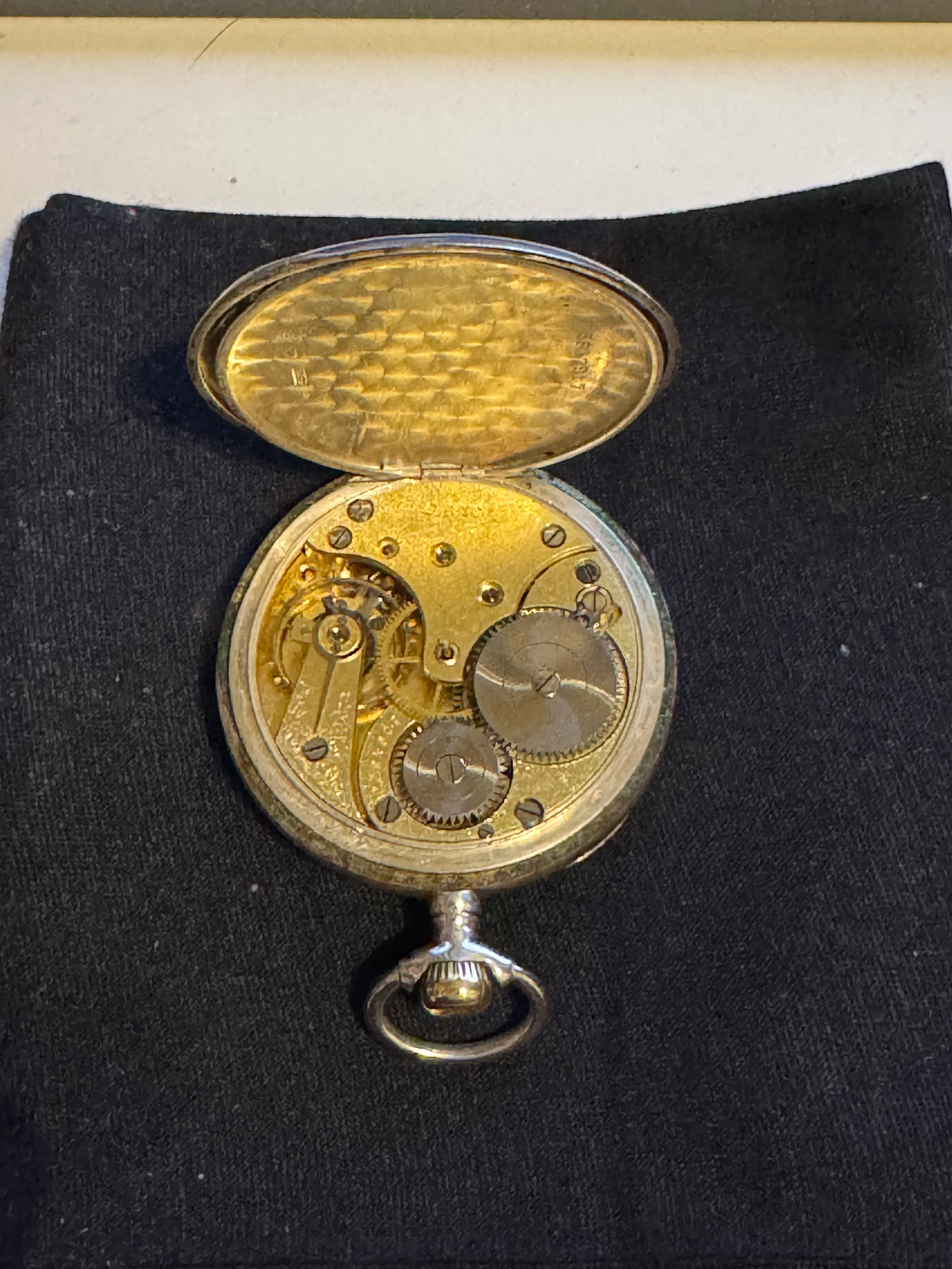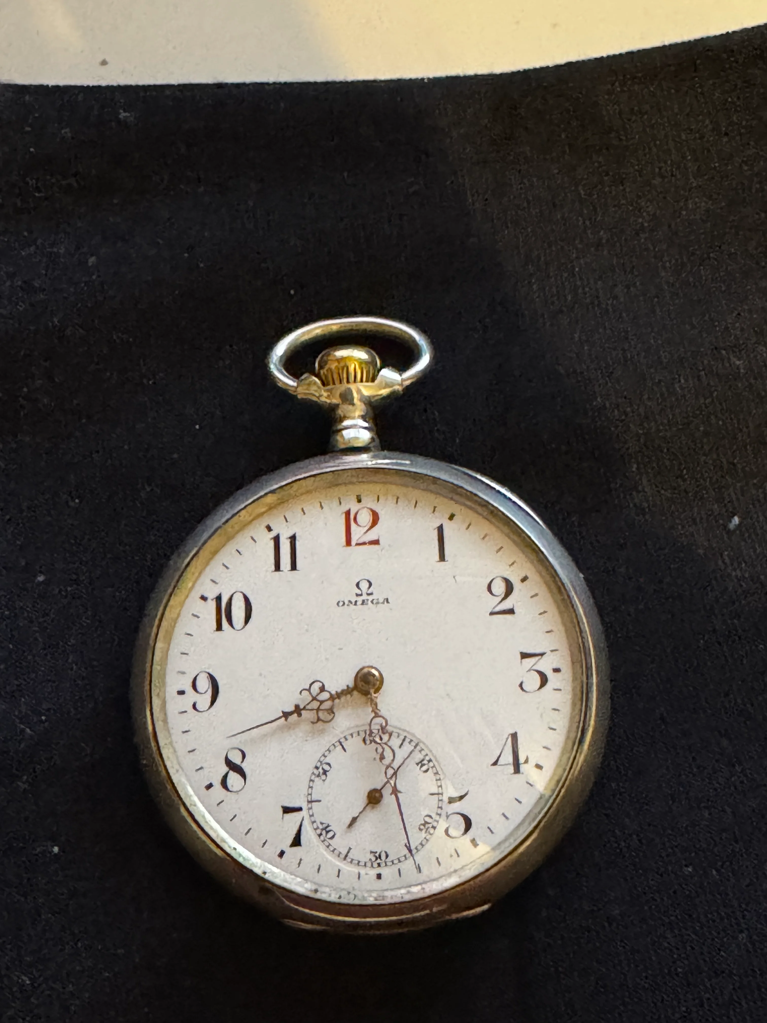 ·I recently got a new to me Omega pocket watch. Case serial number is 5817917, and the movement has serial number 5064877. Lookups of the serial numbers appear to indicate 1916 as the year of manufacture. It winds up relatively effortlessly, and runs with the soft tick-tock of a mechanical movement.