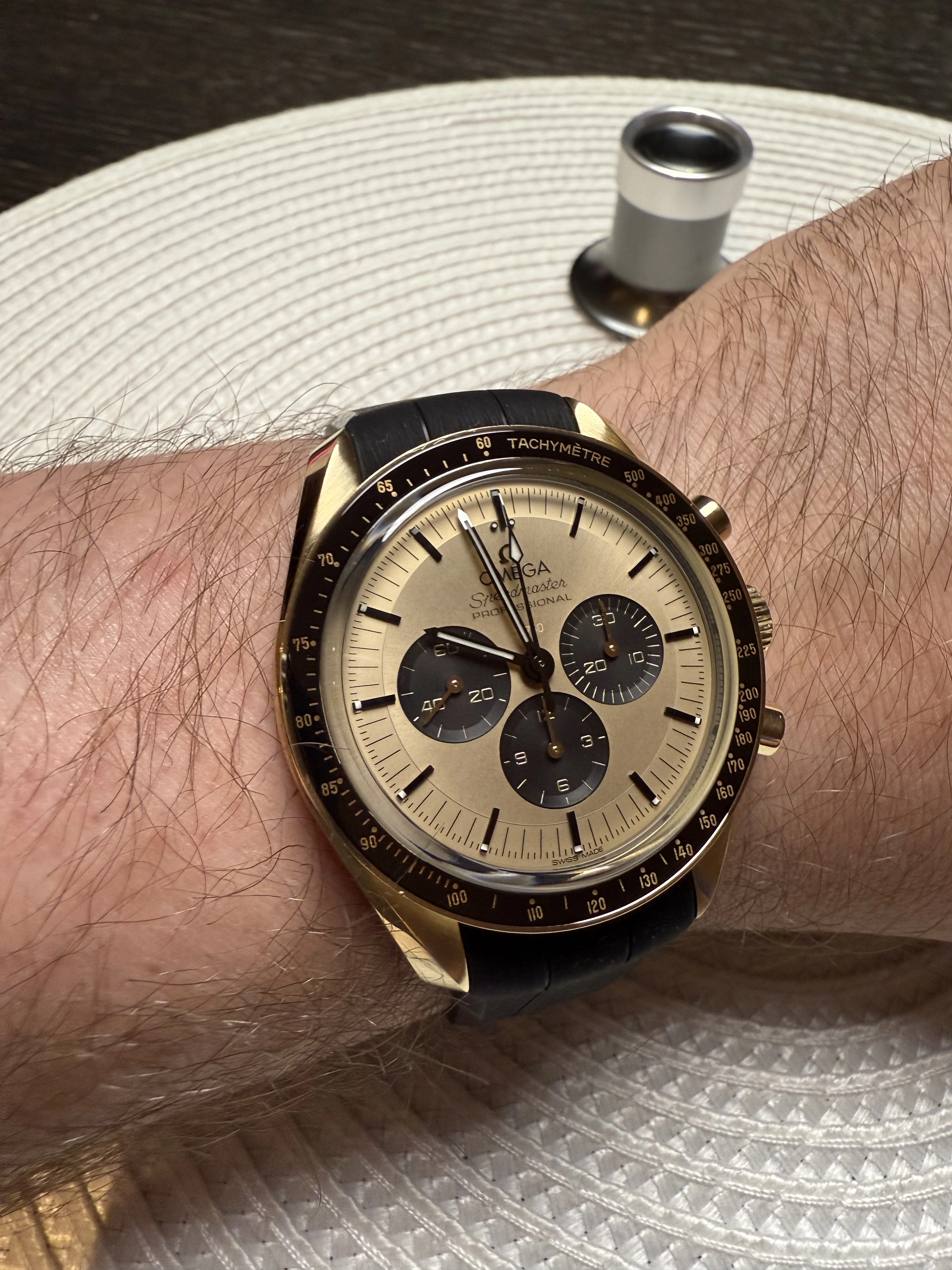 I recently purchased a Speedy Moonshine Gold Panda on the rubber strap. This bracelet also came included with it, but it does not seem to fit it.