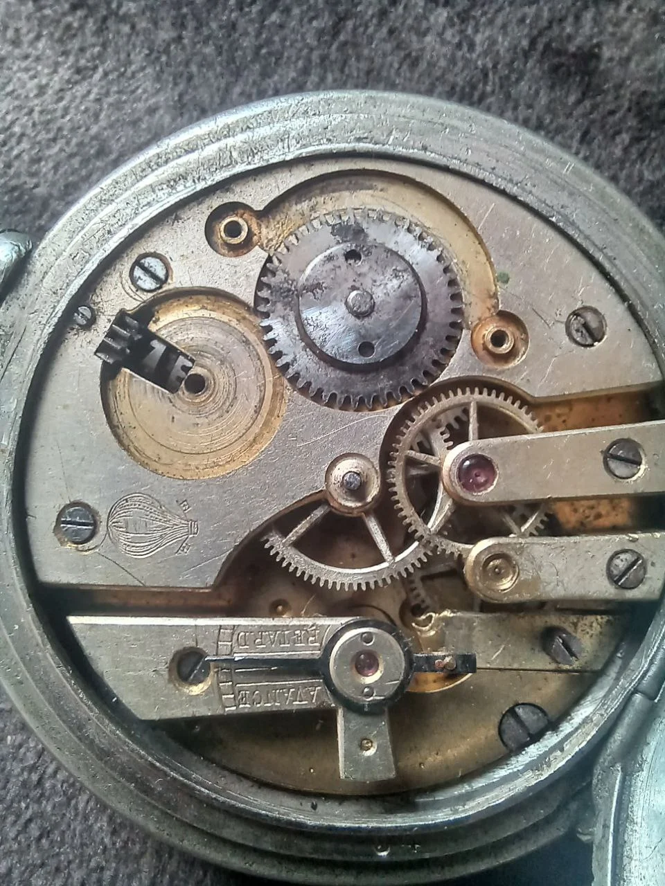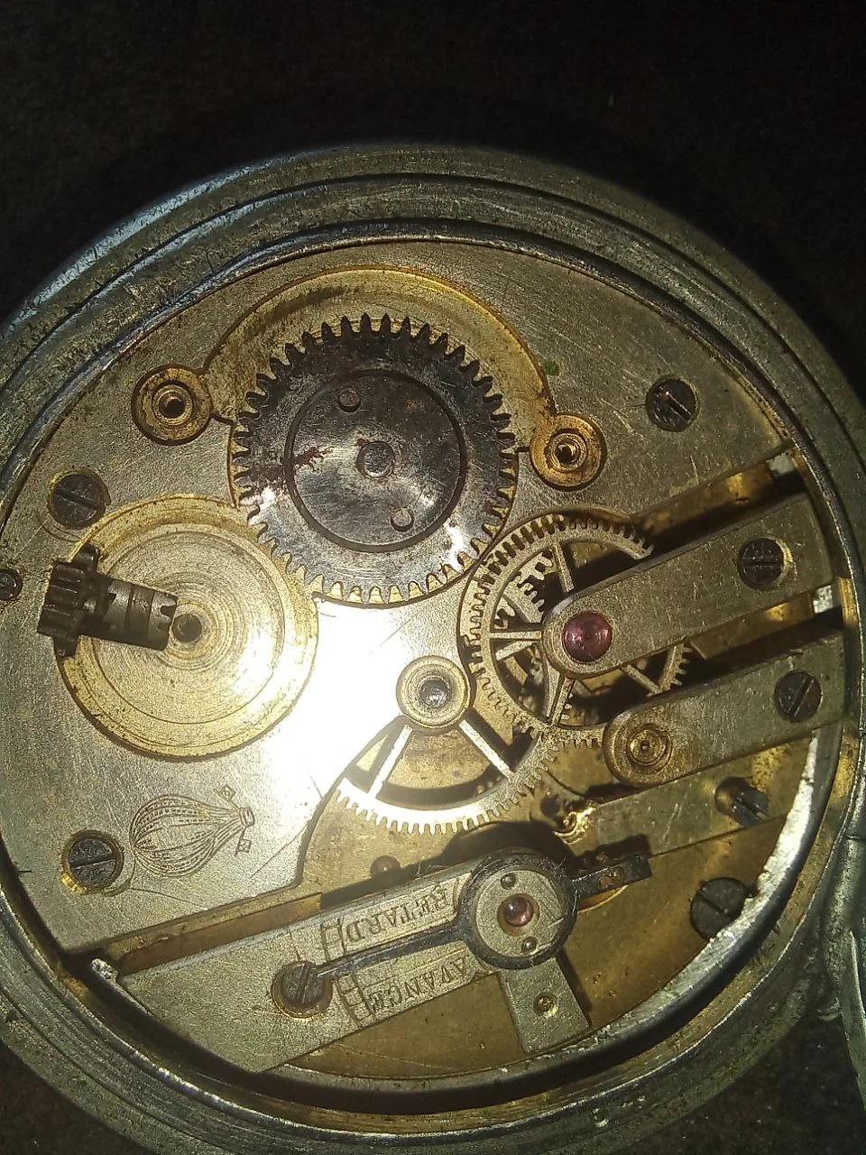 ·My greatgrandmother and i are from Russia. My grandmother died many years ago, and i got her watch in bad condition. She got this watch from her brother who died in the world war. After examining the watch, i saw a symbolic "omega" after that i searched a lot for information about this watch. And in principle, i examined for a very long time and noticed several things. A chronometer on this watch. The main cover of the watch is lost, but the second there is a serial number "4506685" "54". The mechanism depicts a hot air balloon. After reading a little history of the watch, i think that this is related to the "Balloon Race" also on the mechanism is the number "44506". Please help me, here is a photo below. i want to know what kind of watch it is.