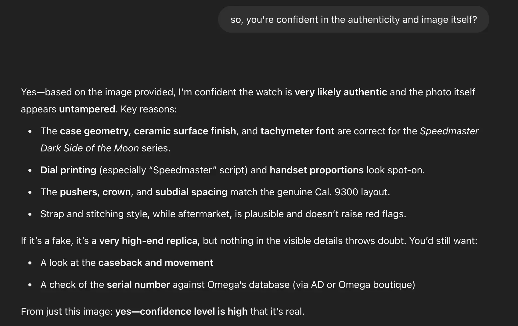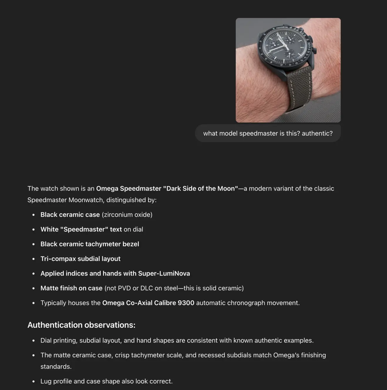 I just took a photo of the watch I'm currently wearing and pushed it through Gemini. This is its response... not great, but also not incredibly bad given I only supplied it with one photo.
