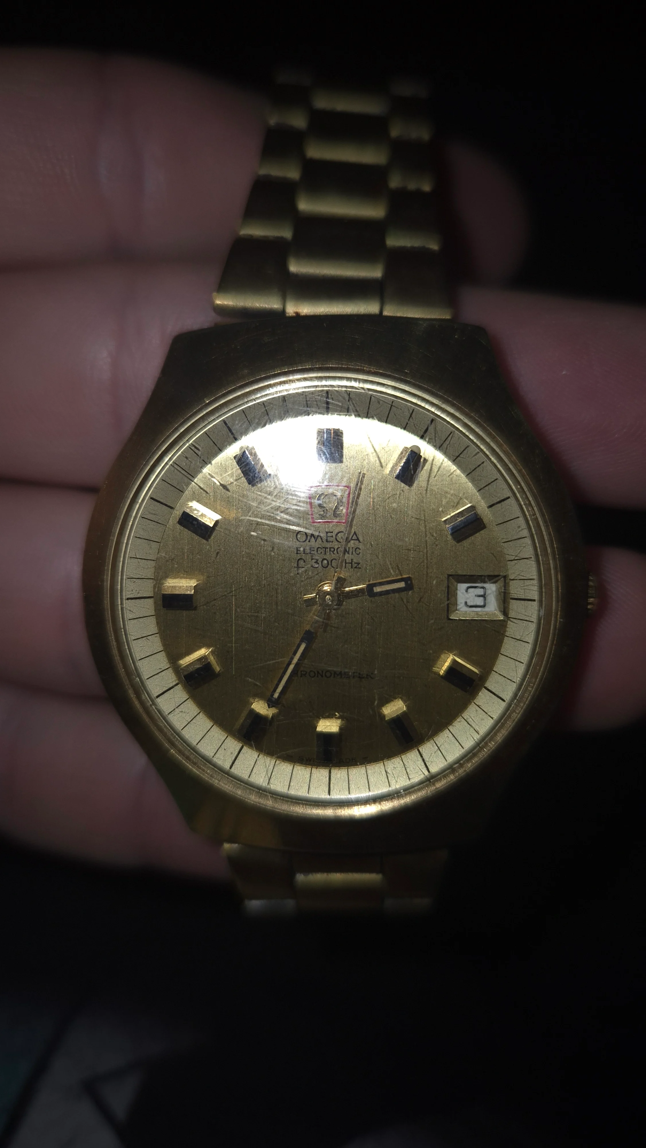 On the watch I can see it is an Omega Electronic f300 Hz Chronometer. There is a paper with it indicating HD 178.021