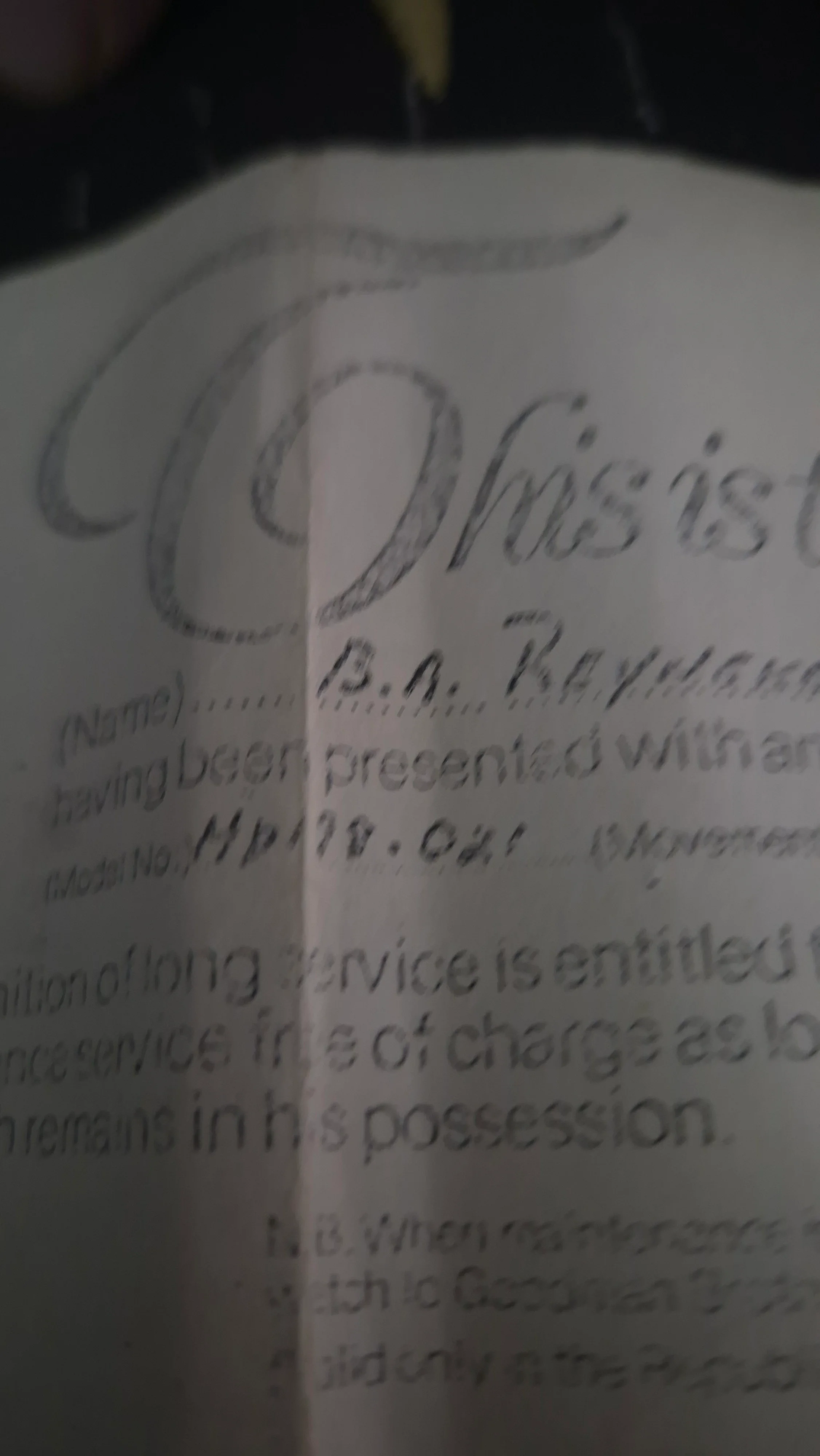 ·Good day, I am from South Africa. My grandfaher passed away almost 20 years ago. I have inherited an Omega watch that he owned. He received it as a 30 year long service gift from Yskor (company worked for). I have no idea when the watch was manufacured.