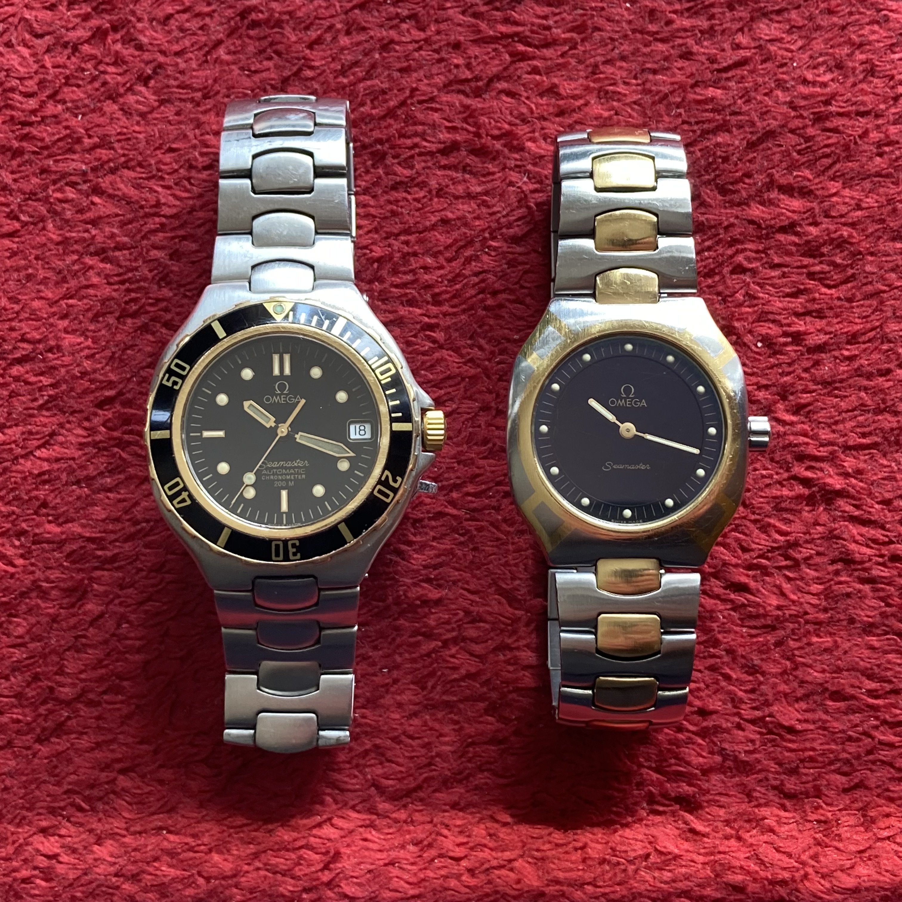 My wife and I have a pair of Omega Polaris Titane Seamasters which were given to us by our parents in the 80s. Hers is the version with gold inlay, mine has the palladium inlay. Both are quartz (yes I know, not very collectible) but despite this, they carry a lot of sentimental value for us and would like to keep them going (hers has stopped working, mine running a little fast).