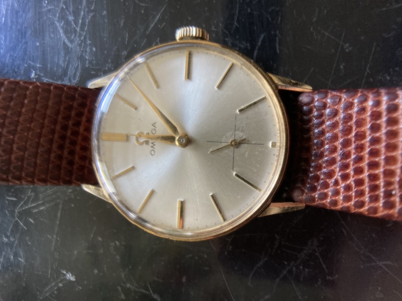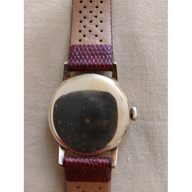 based on the limited info it seems to me 18k case. Is advertised as plated. I think it to be a Tresor out of the 50s based on the holes in the lugs? Dial looks to have some wear aroud the sub second. Crown is signed and looks original. Don’t know about the crystal. What do you think it is and what could be the buying price?