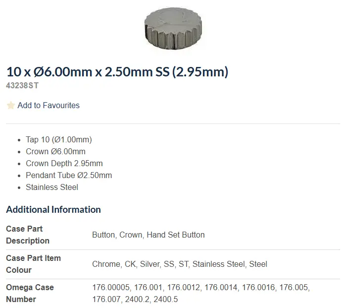 ·I have recently picked up a Speedmaster TV 176.0014 that needs a crown. Does anyone know the dimensions of a correct crown? Or possibly have one I could purchase? Many thanks.