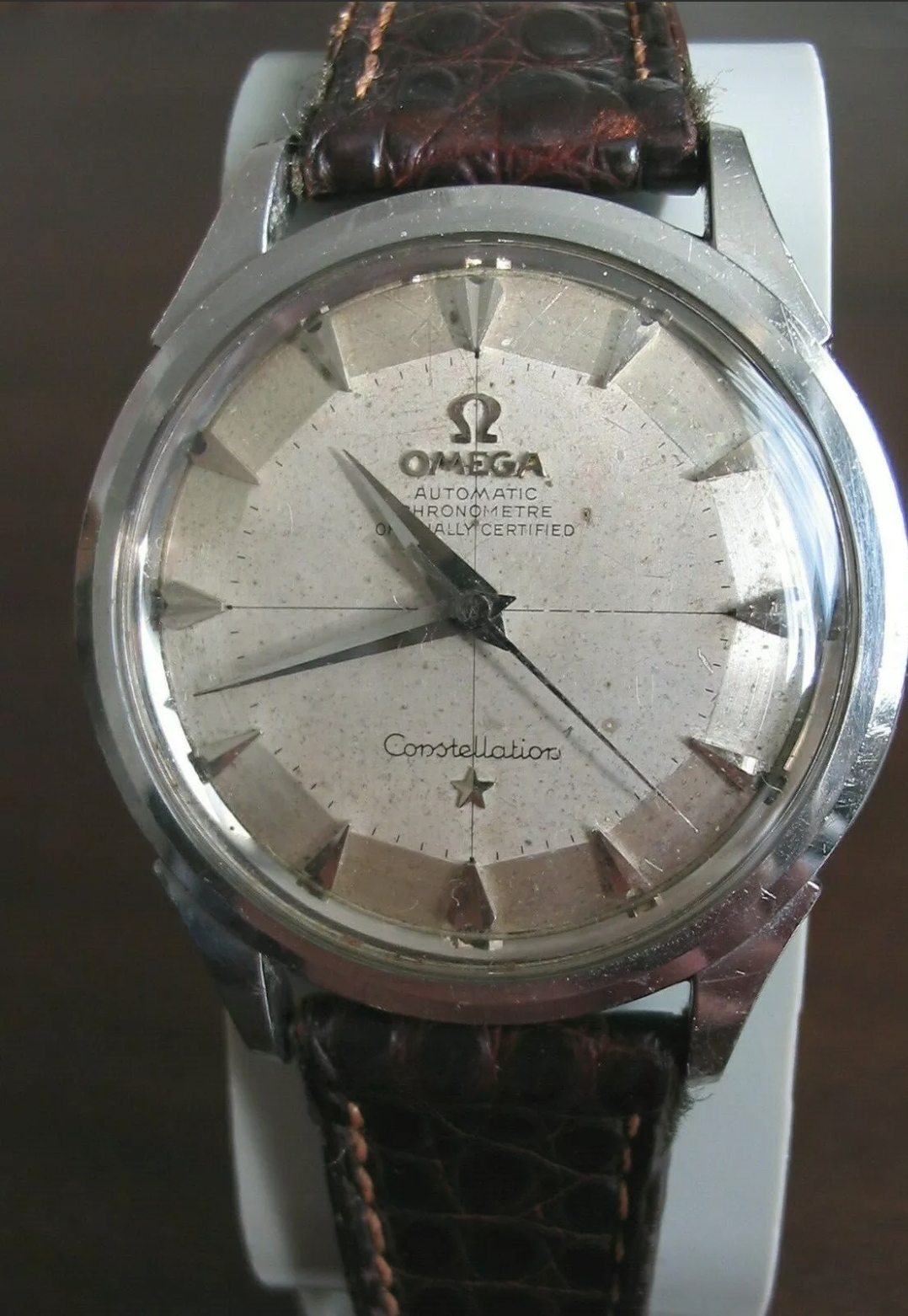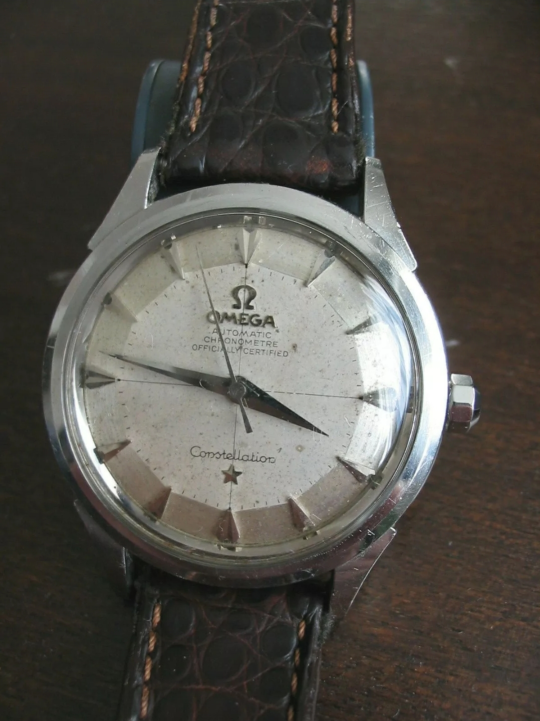 The dial is original (I think I can see the "Swiss" peeking out from the 6 o'clock marker), but the hands are replacements, as they are too long for a pie pan dialed Constellation and miss lume which this one should have.