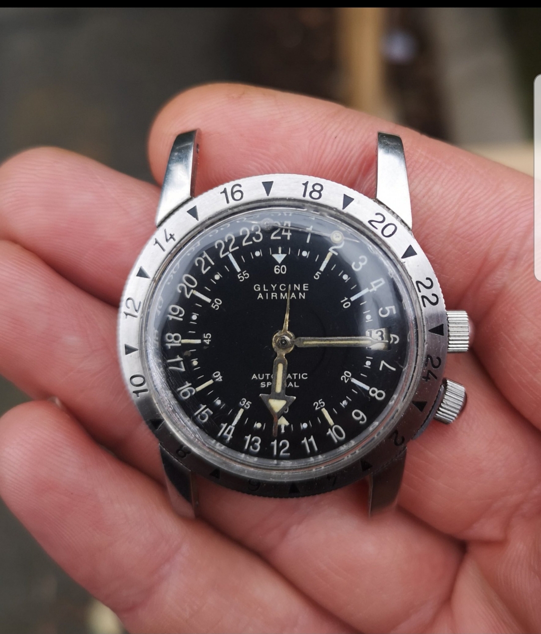 I really like these vintage Glycine Airman, but have understood there are many traps to be stepped in as many are franken. What do you think about this one? Is it all genuine? Can it be fixed without breaking the bank?