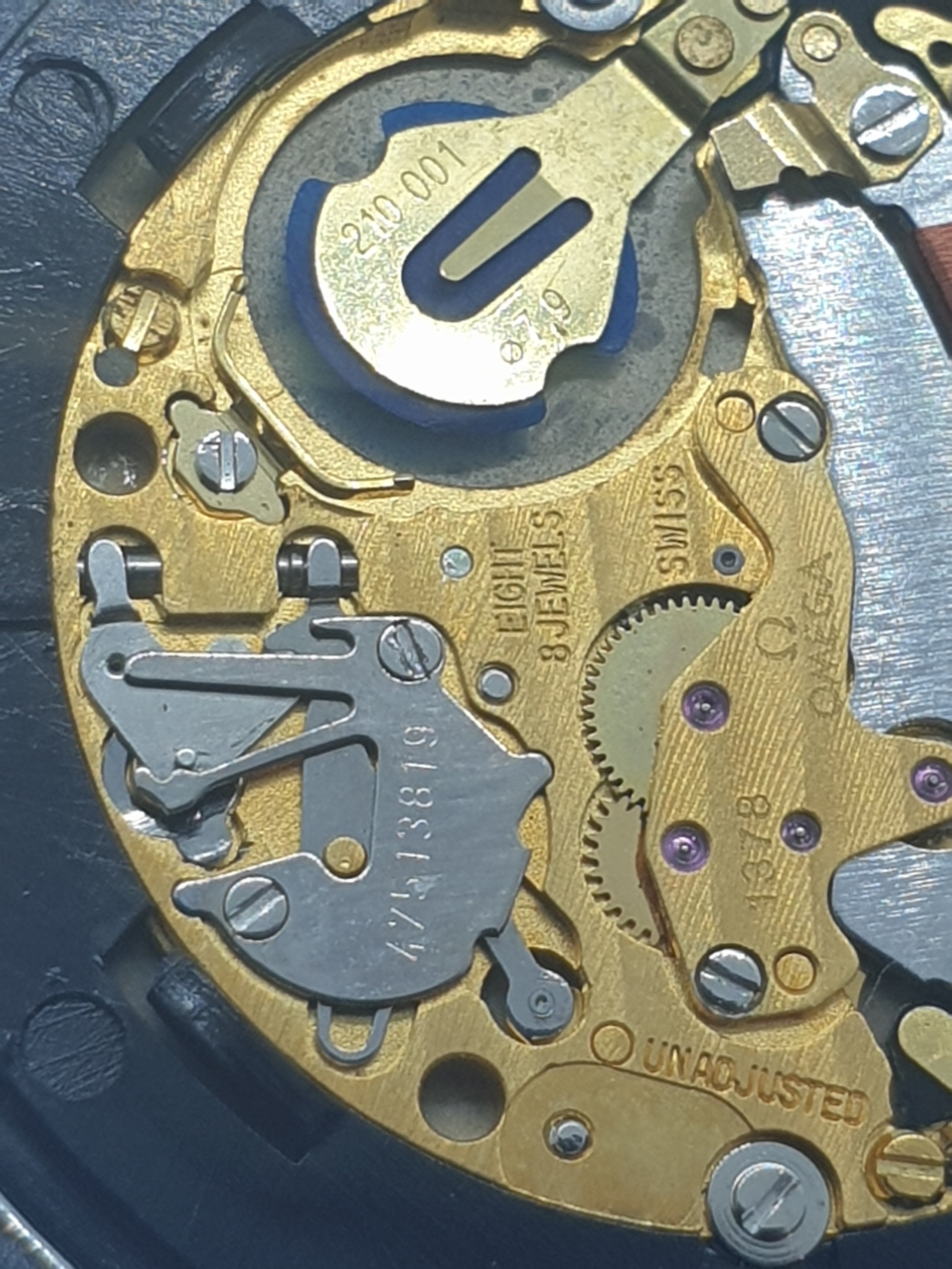 The layout is unusual with all the setting parts installed on the top plate, rather than on the dial side of the movement. I suppose for this reason there was no real stem release provided, at last that I can see. Fortunately, you can remove the necessary setting parts easily to get the stem out.