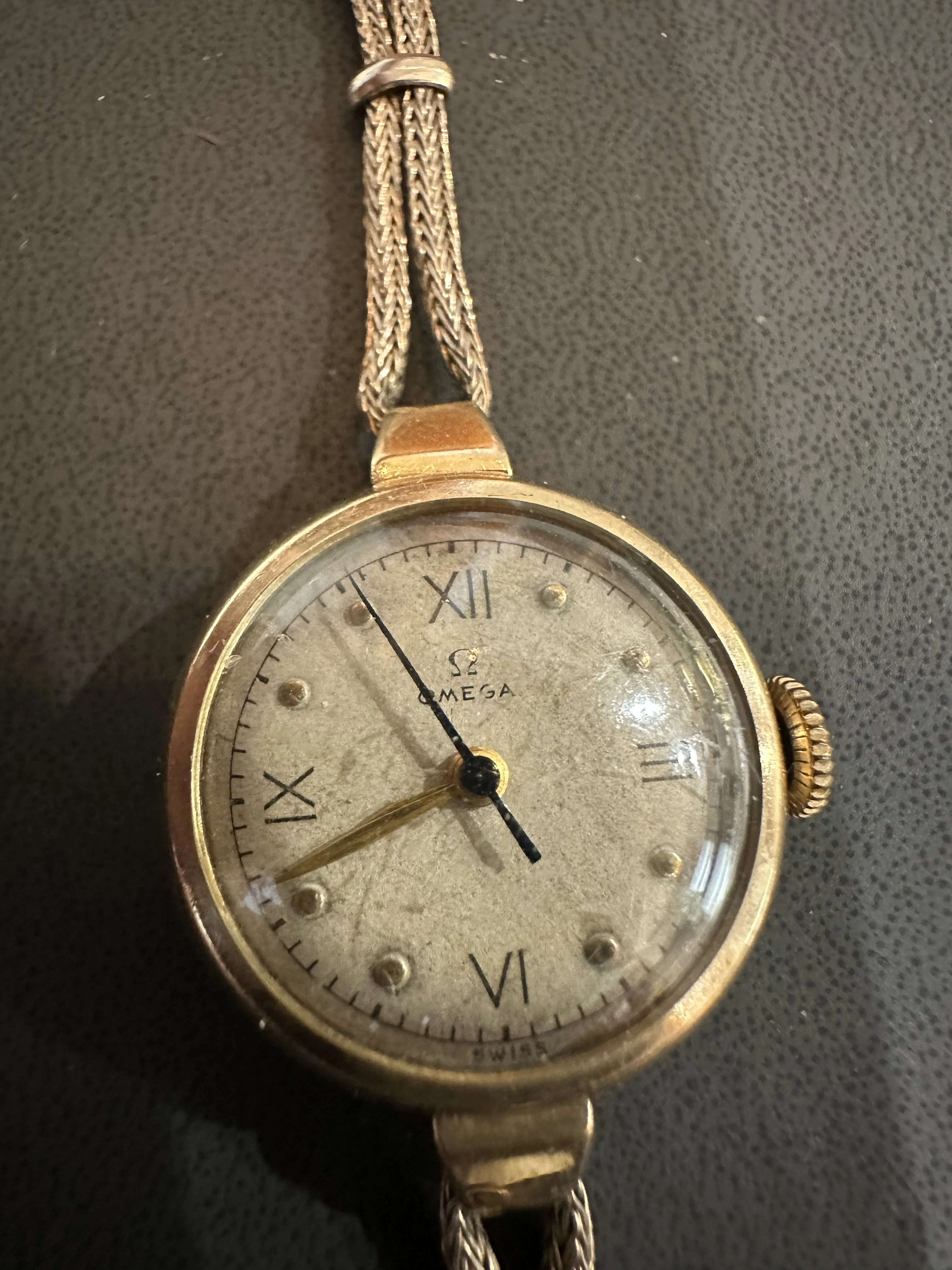 On a old Omega i have . First it runs great and keeps consistent time . Gold case . Other than dial face and a pat number on clasp …. I got nothing , other than old Omega round case with a mechanical movement. Any help Identifing model and aprox age , would be great help