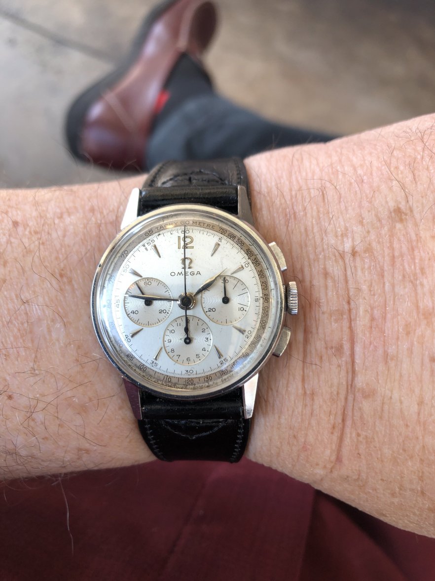 The movement dates approximately to the end of 1953 and the case reference is likely to have been 2466. The dial might have been redone in the past.