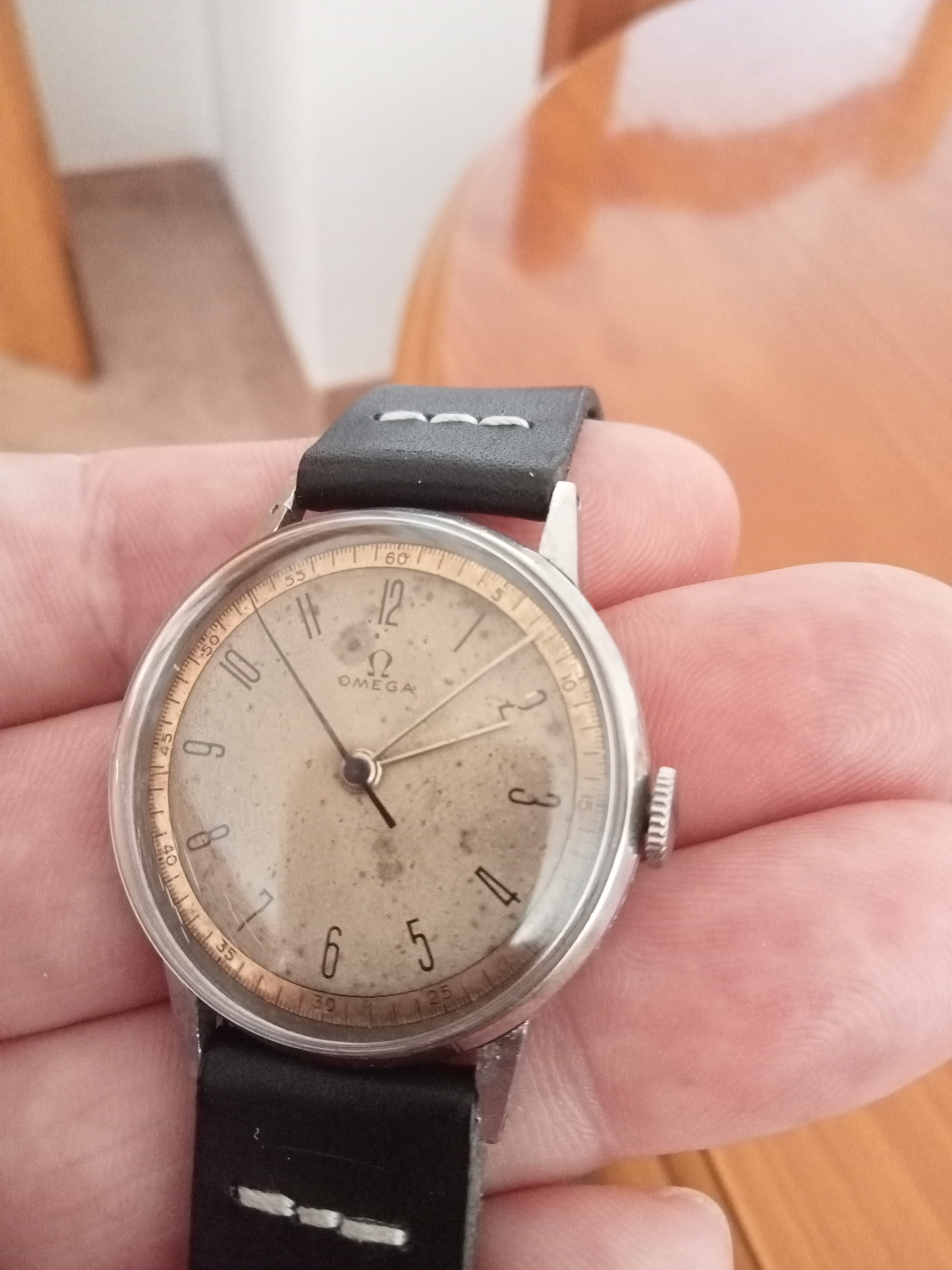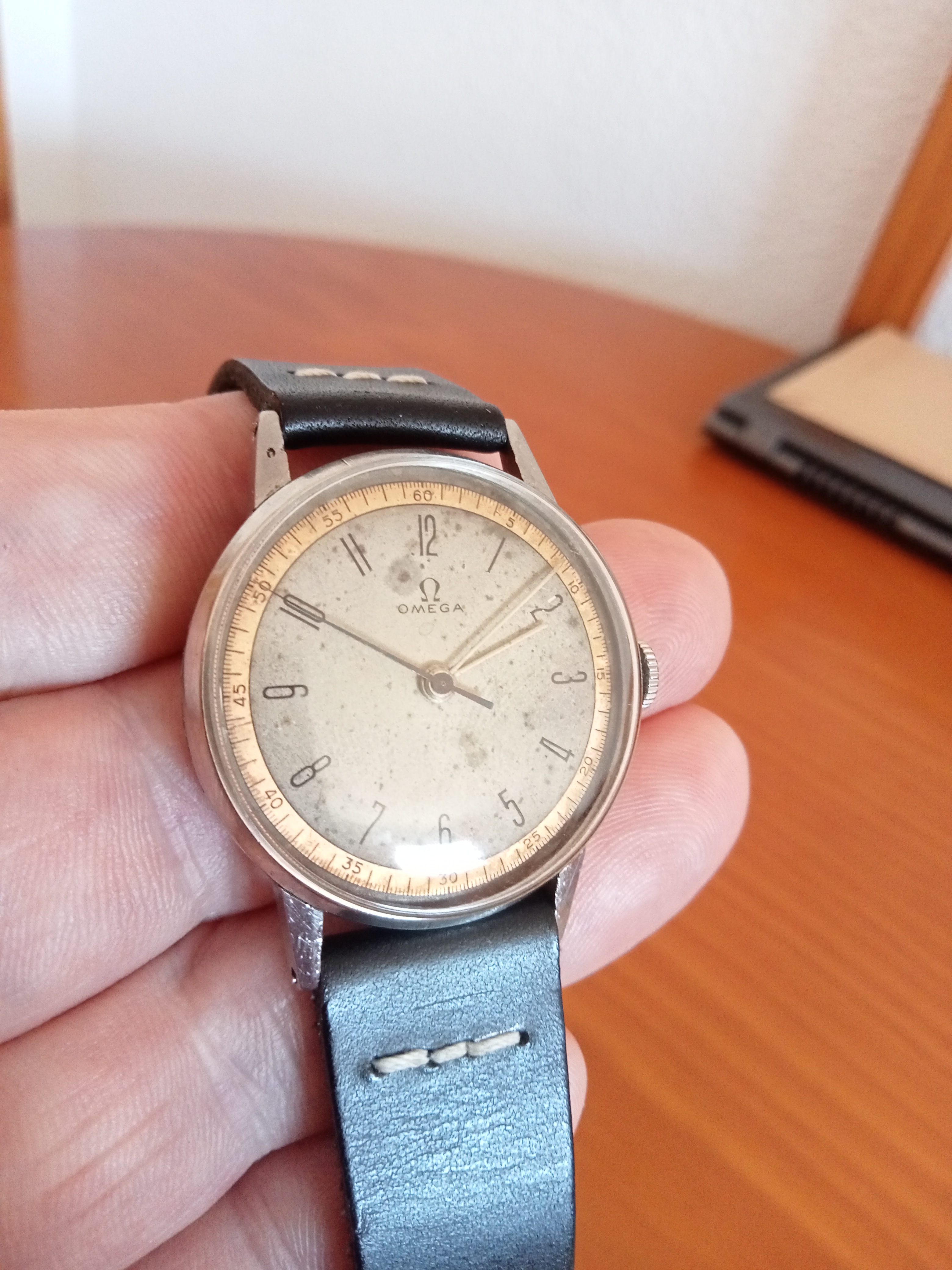 ·Hi, wondering if anyone can shed a little light on this Omega. Looking at the movement number it seems to date from 1935, but the inscription on the back is from 1944. Could a watch seller possible have had the watch for this long or might it have been bought second hand. This is all surmising as we shall never know. Anyhow any information about this watch would be of great help, many thanks.
