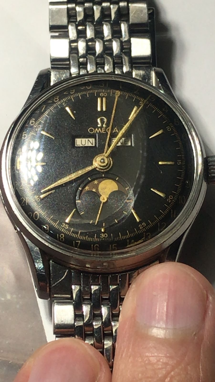 Dial is refinished. Sloppy incorrect printing and the raised figures and Omega symbol should be much crisper, clearly they have polished over during the refinishing process.