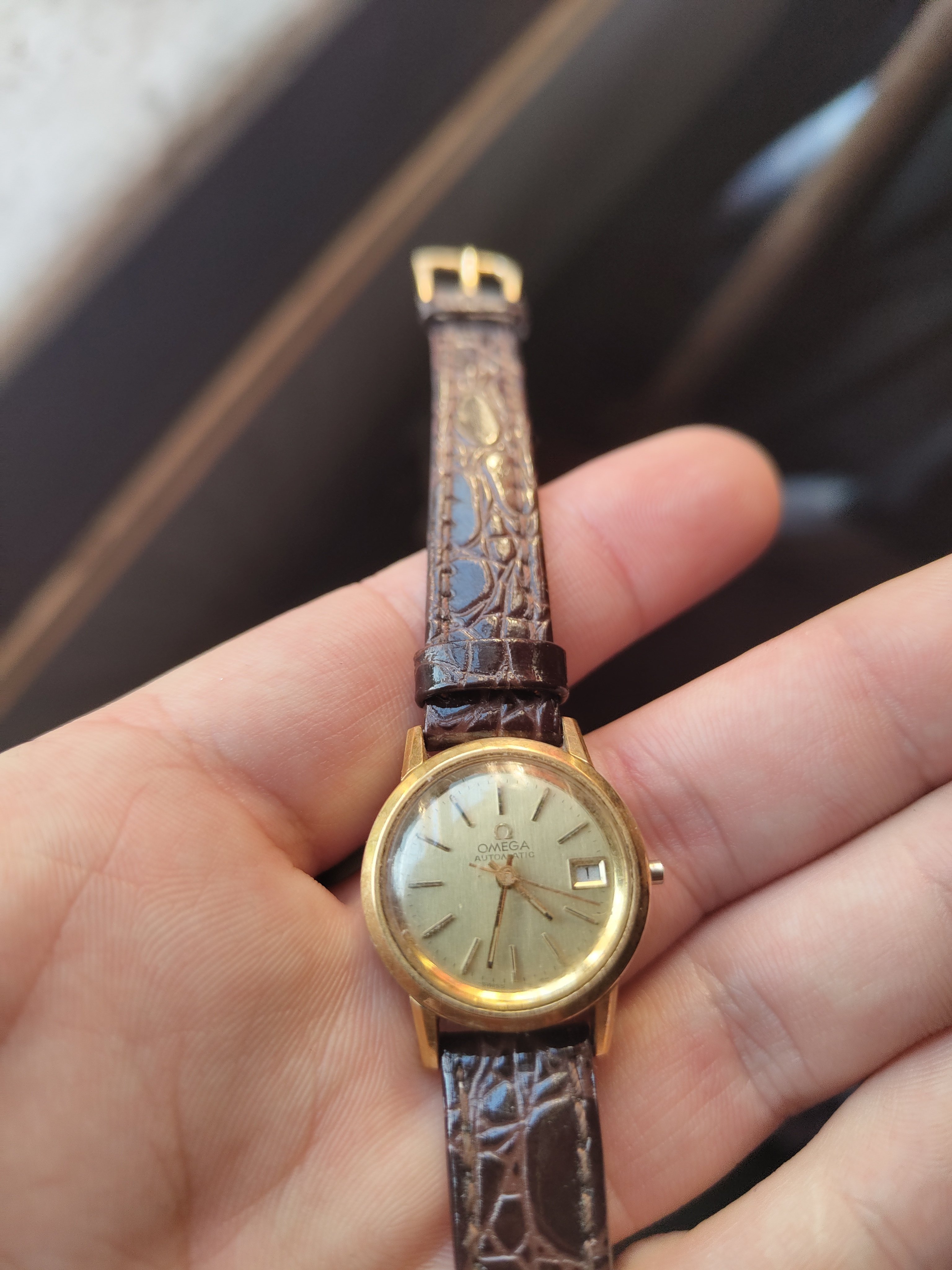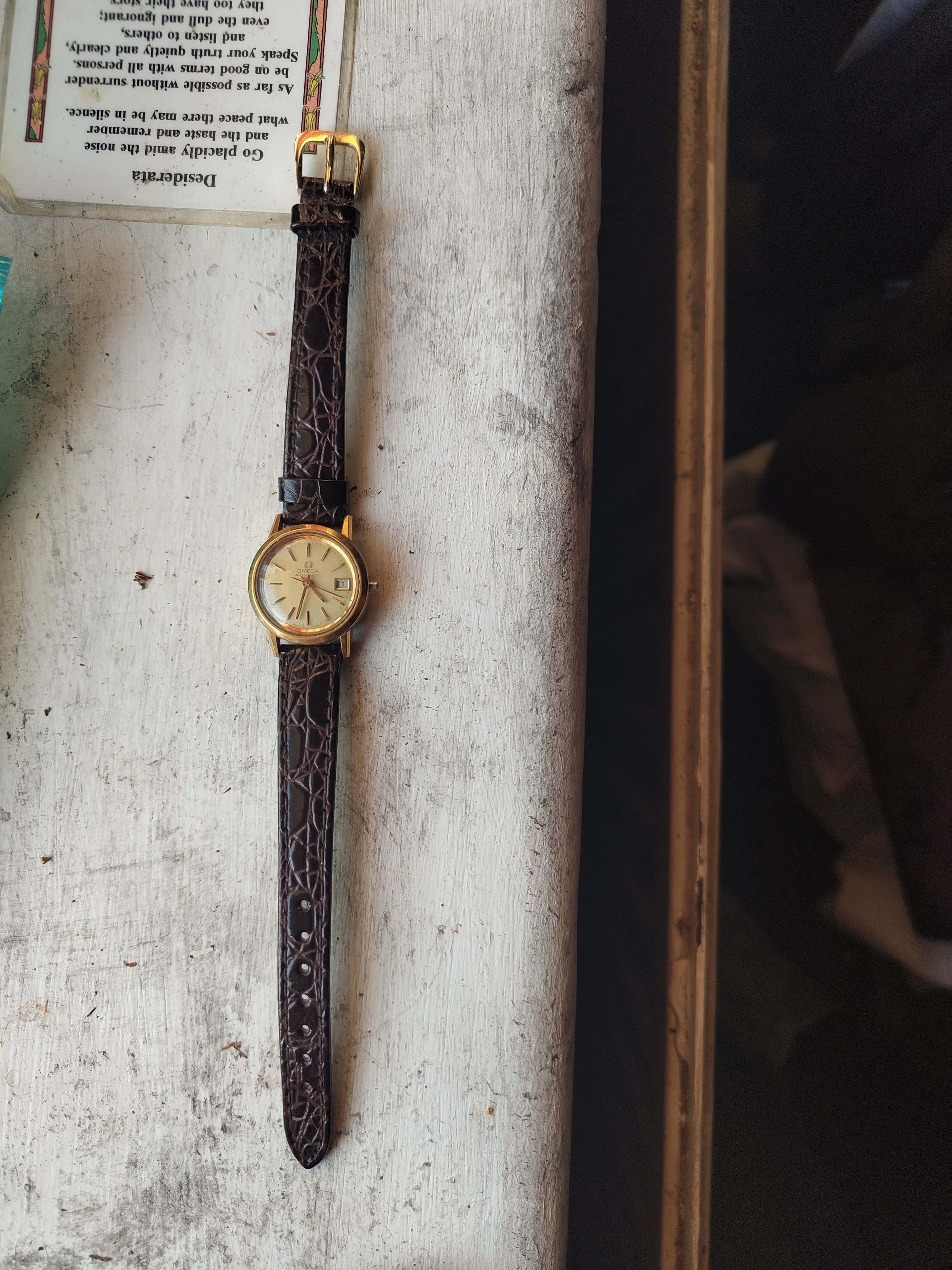 Anyway my friends grandmother, is trying to sell some old bits and bobs, and came across this watch, she claims it's something special but I really doubt, I was hoping you could help is workout what it is, so we can, have a rough idea of what it might be worth, and sell it somewhere. I've asked a few people I know, and they said it's from between 1960-1970 and it's an Omega Watchmaster, but i can't find anything similar, particularly how the lines marking the hours on the dial, are all singular, whereas I've noticed on most omega watches the four hours marking 12, 3, 6 and 9 are usually accented, and on a few watches I found that aren't the "day counter" (sorry I have not idea what any of this is called" is not present. Back doesn't have any markings that I could see I don't think, sorry I feel like I should have taken more pictures, I will next time I'm there. Well I would really appreciate some help, thank you