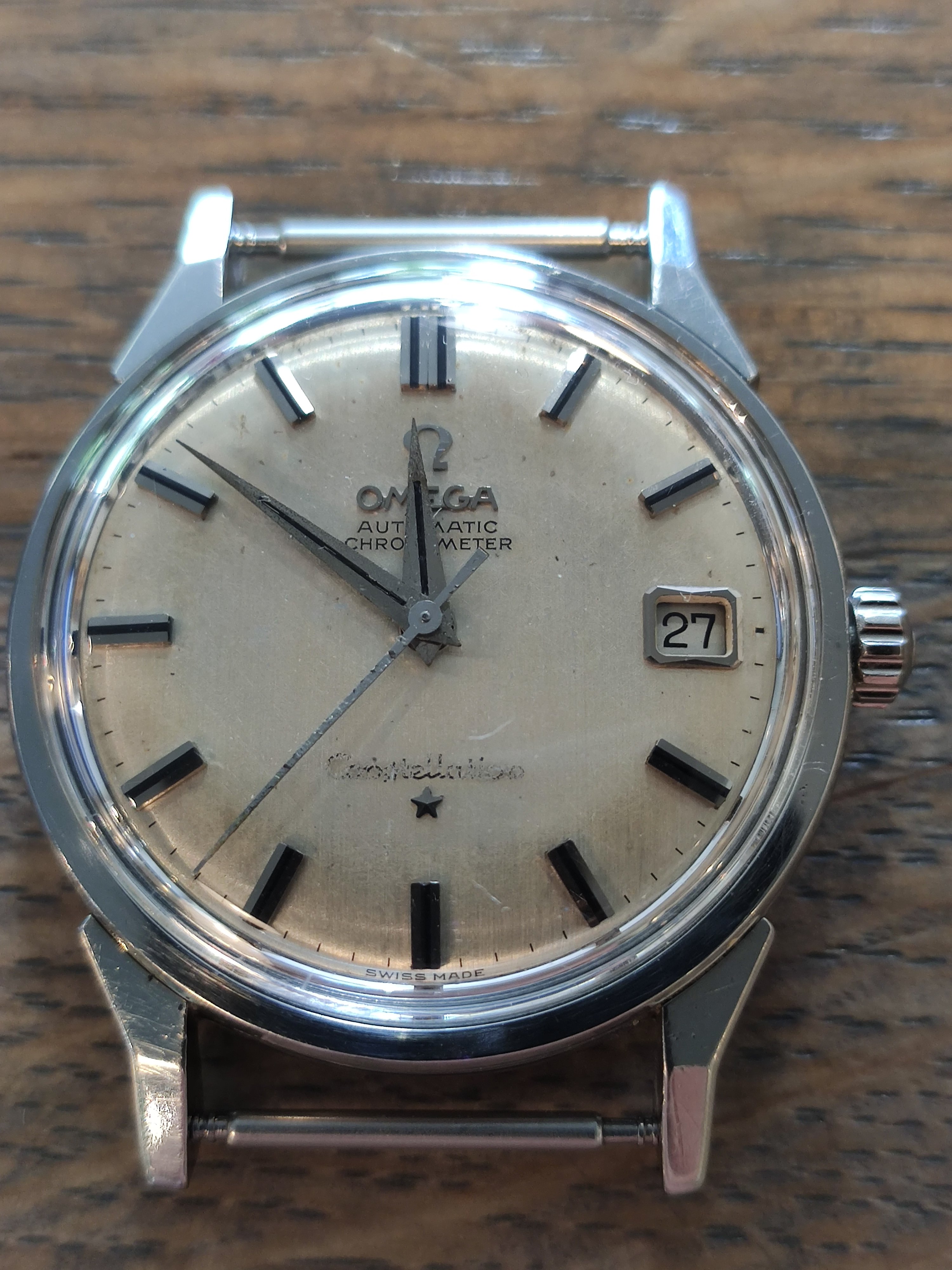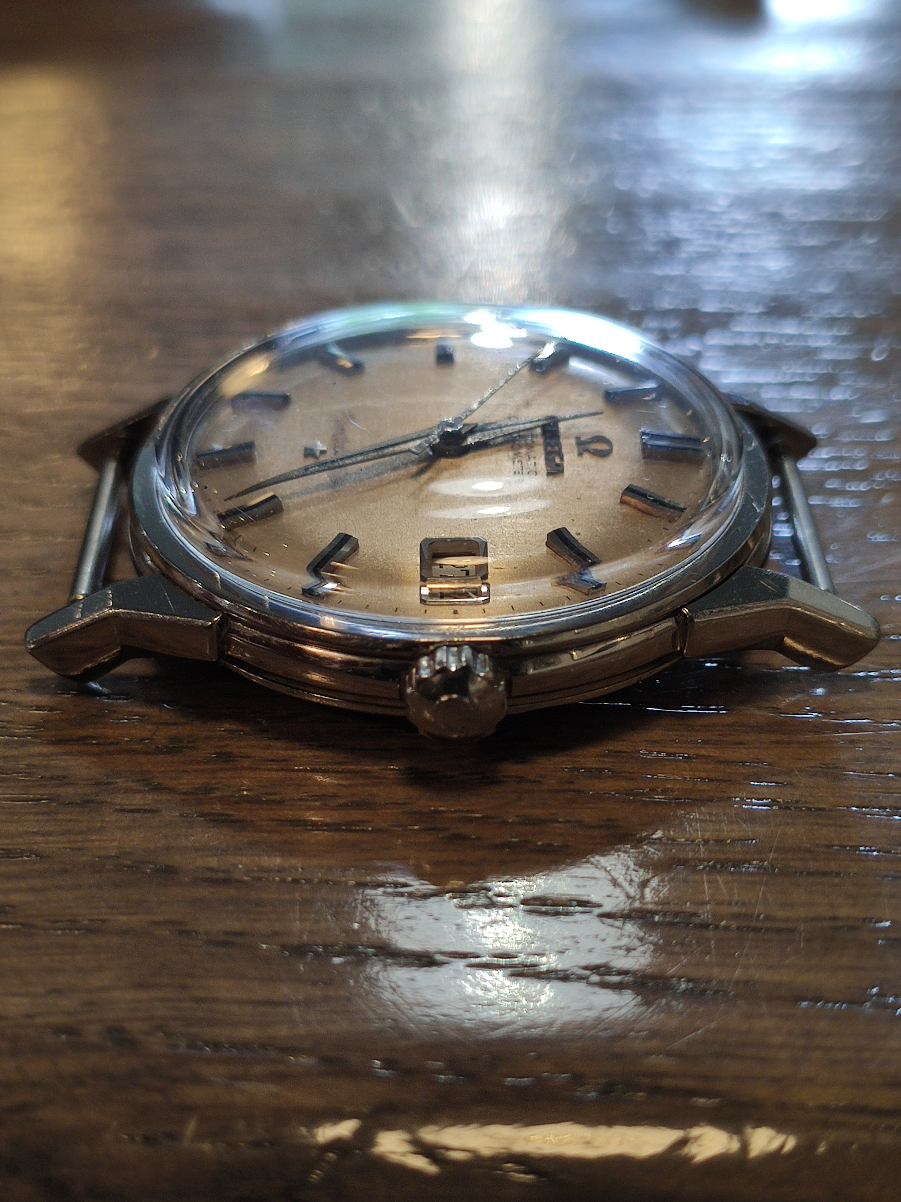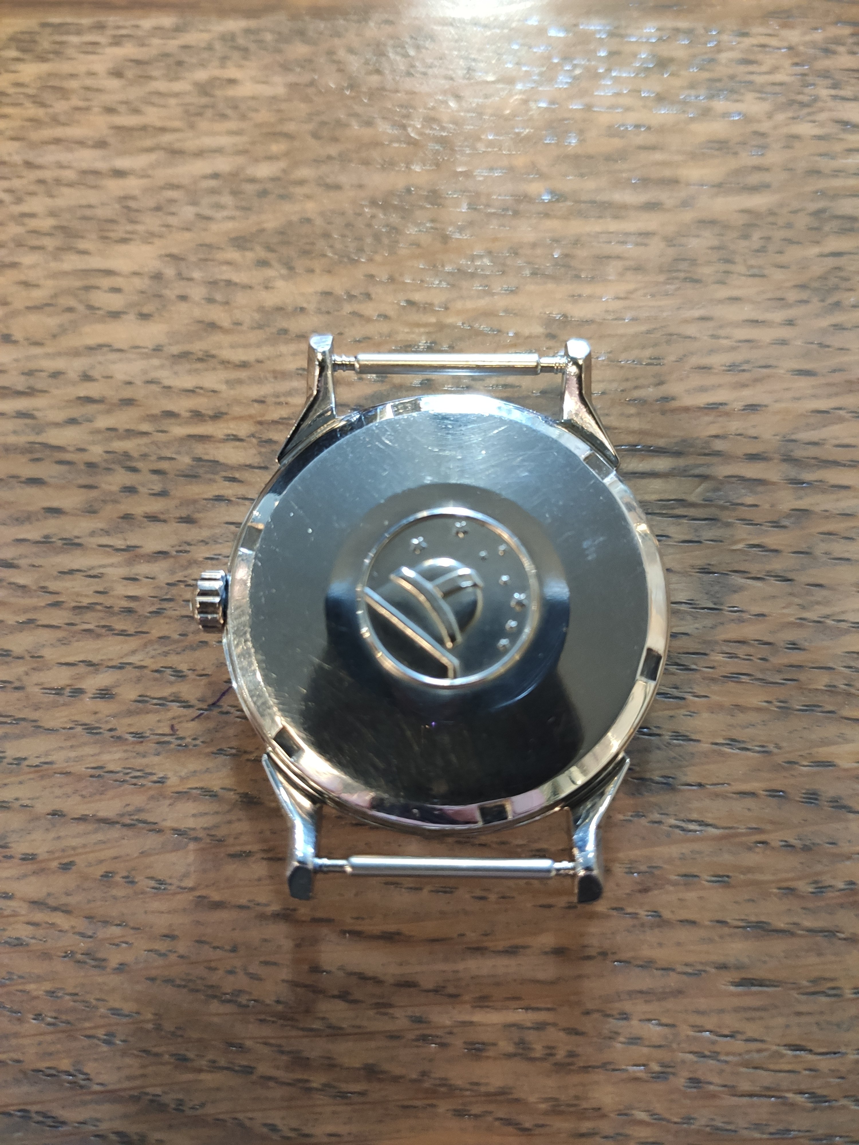 Simon has done a brilliant job. He's serviced the movement, given the case a gentle clean and has polished the original Plexiglass. He has also managed to save the crown by slowly dissolving the snapped stem from within it, then fitting a new stem and tube.