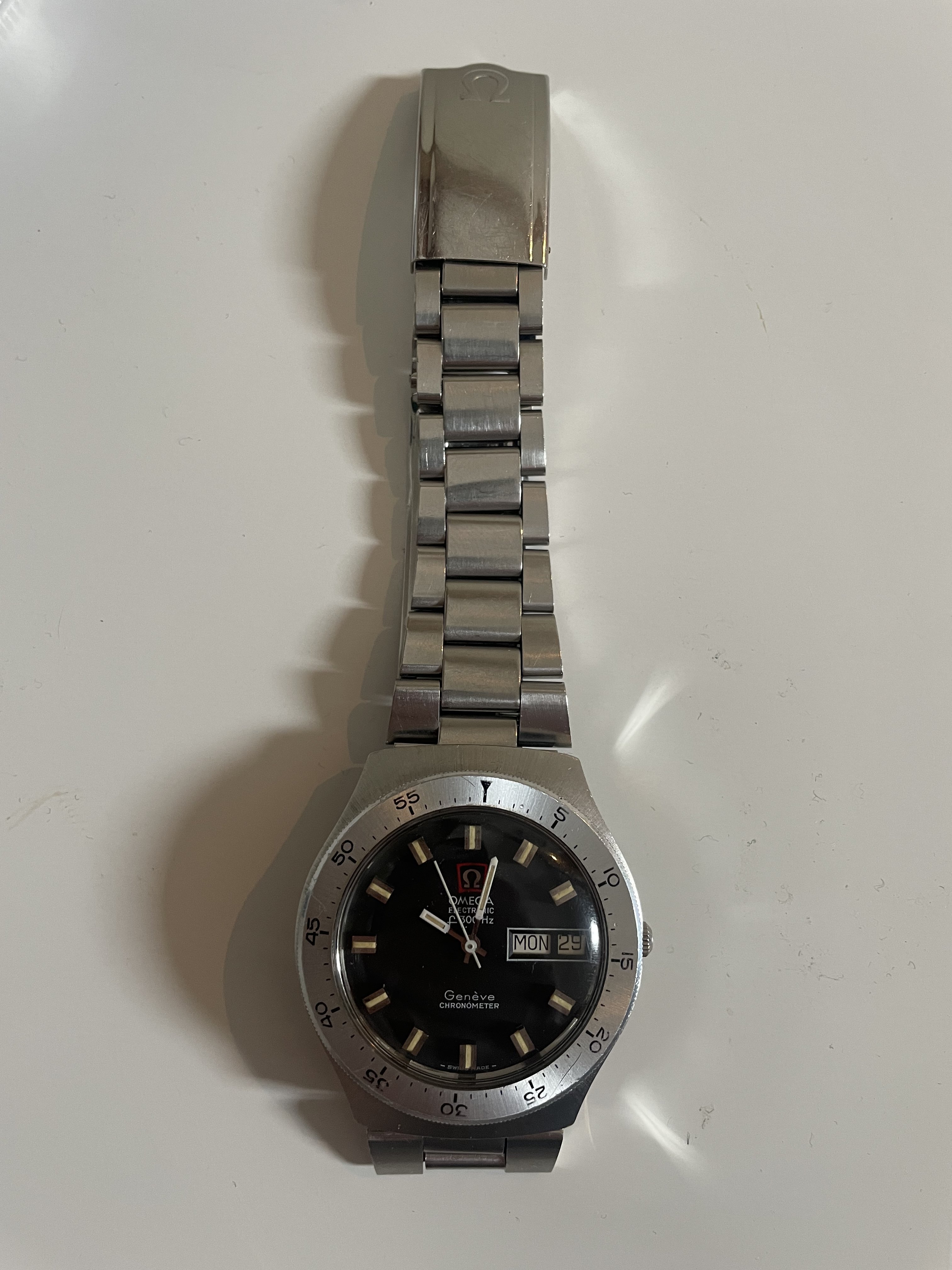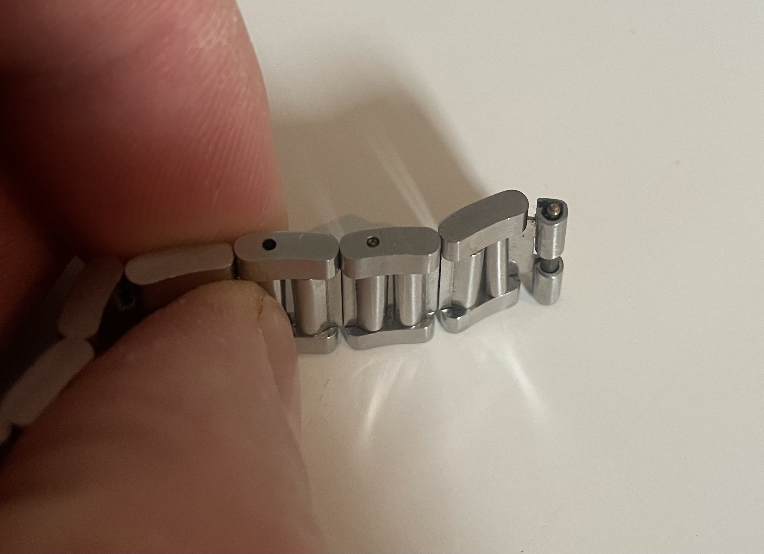 Unlike the early bracelets this one has crimped links. I assume they were for the US market as I have a SMF300 198.0005 intergrated watch, also from the states, with the same style of crimped link, but sadly no spare links to take from it.