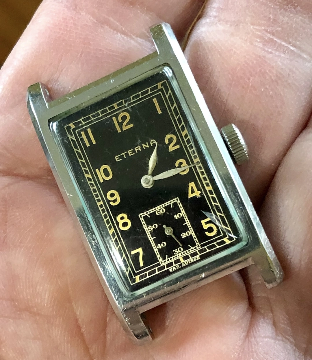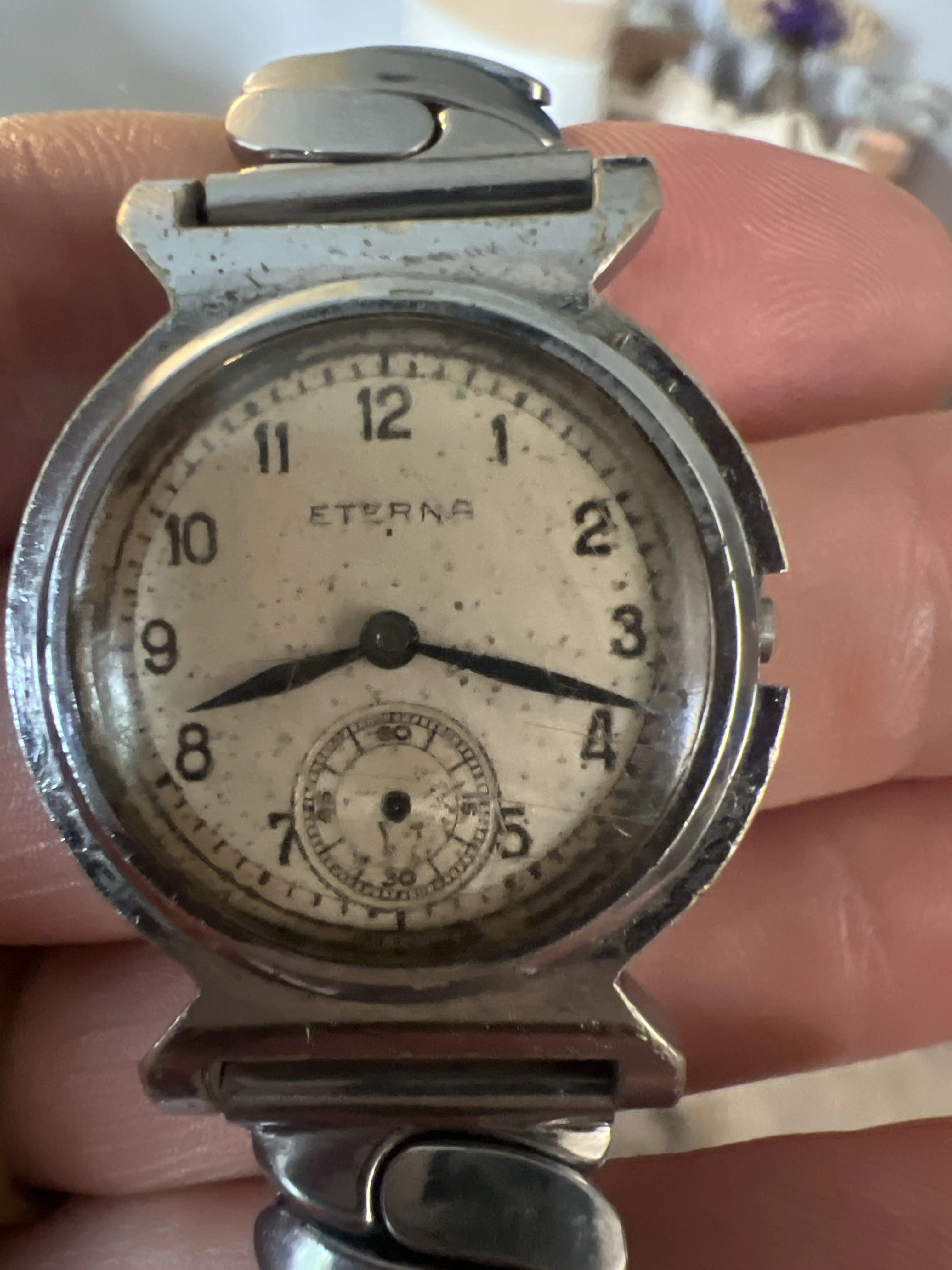 Eterna is a really top notch vintage brand, and that watch looks totally legit to me. But it looks like a small chrome-plated watch, and needs significant repair.