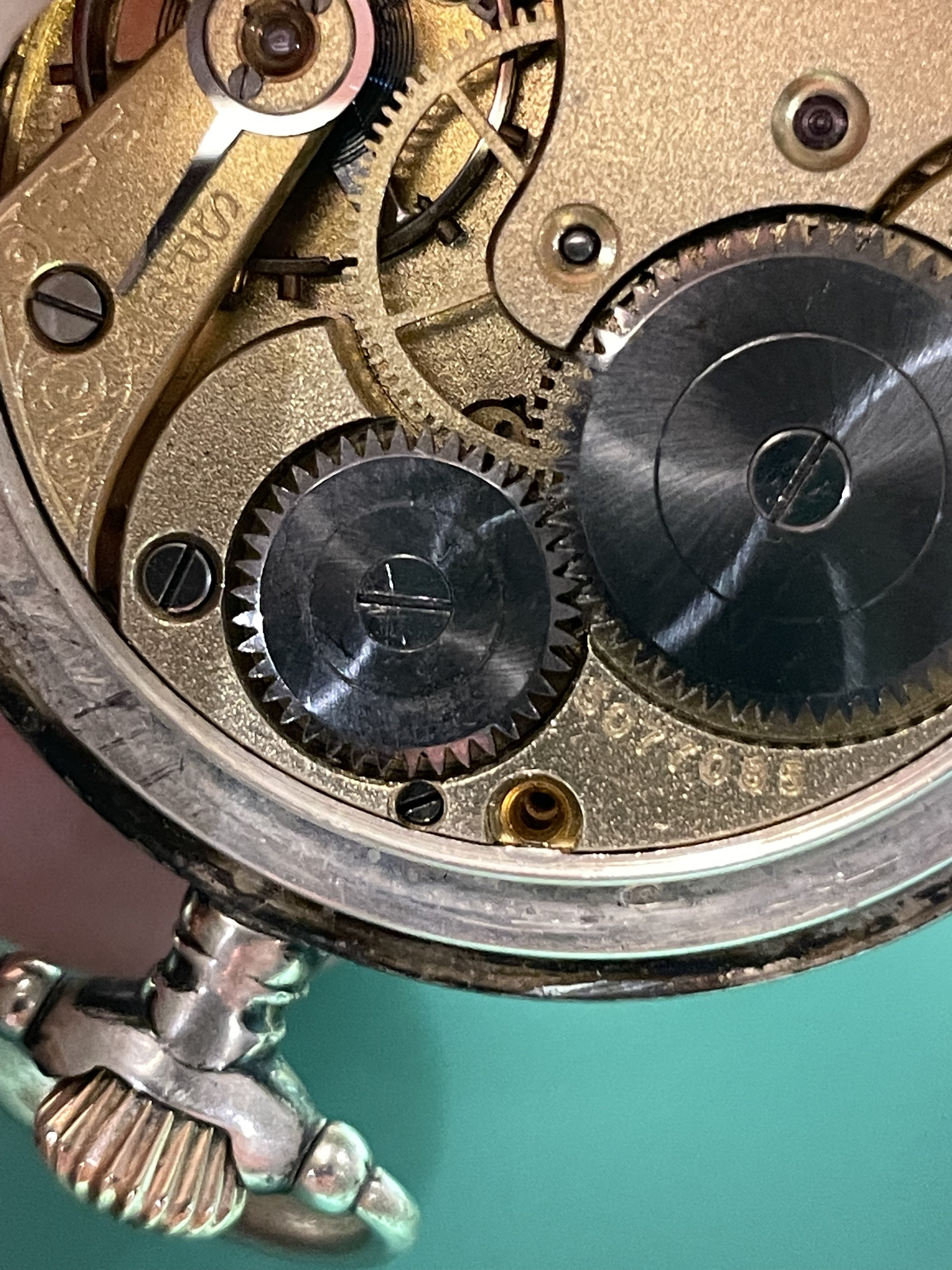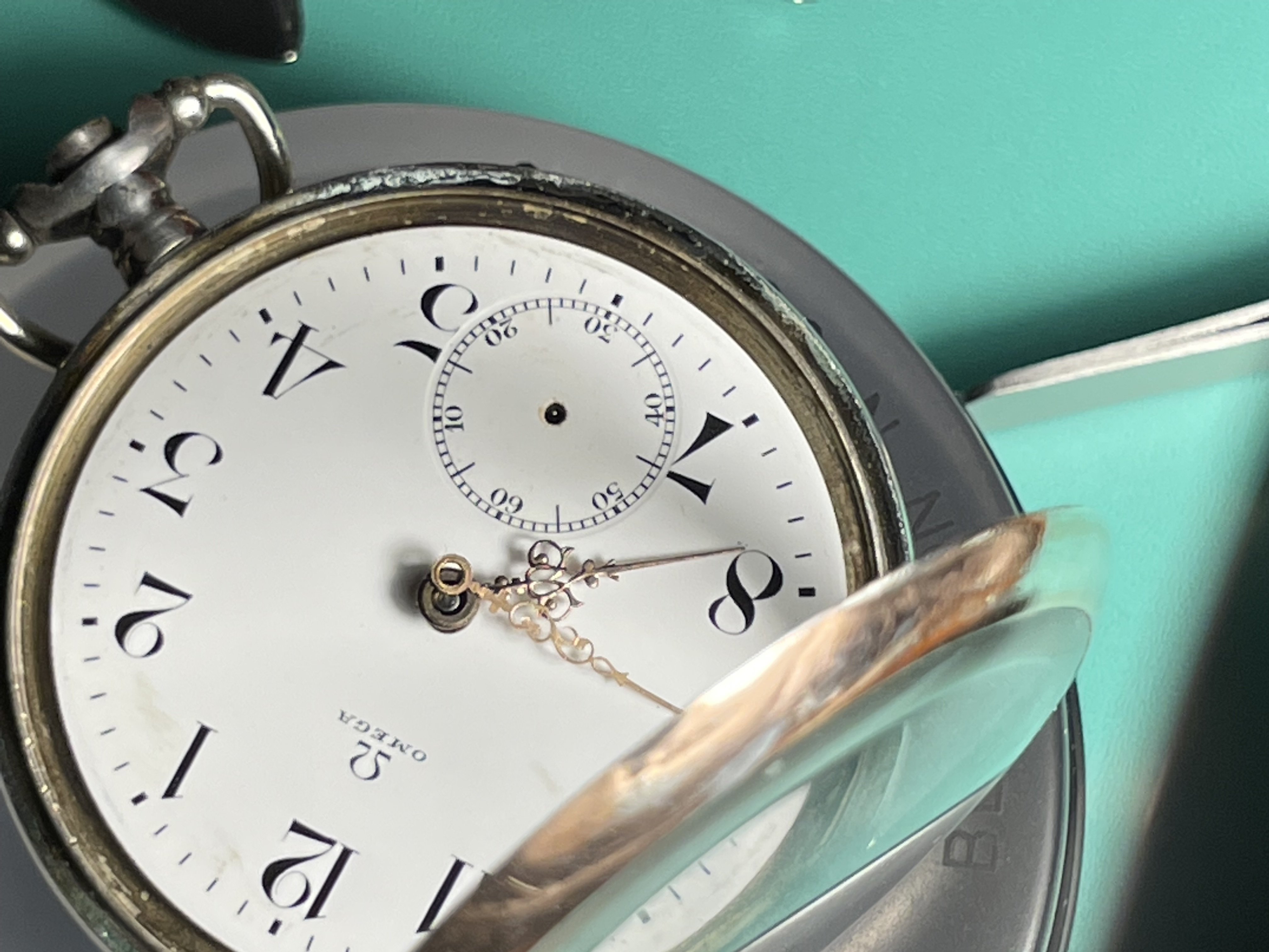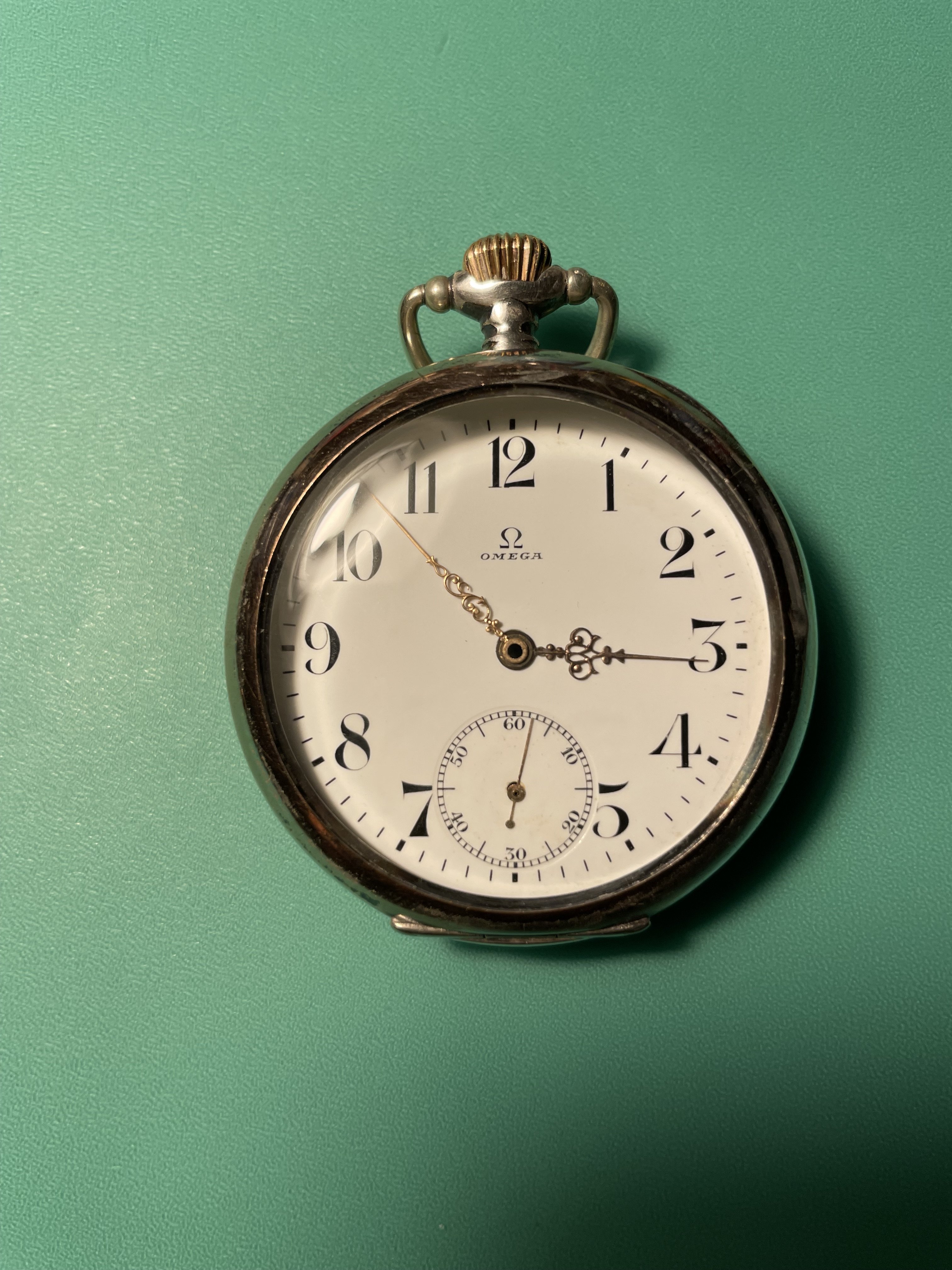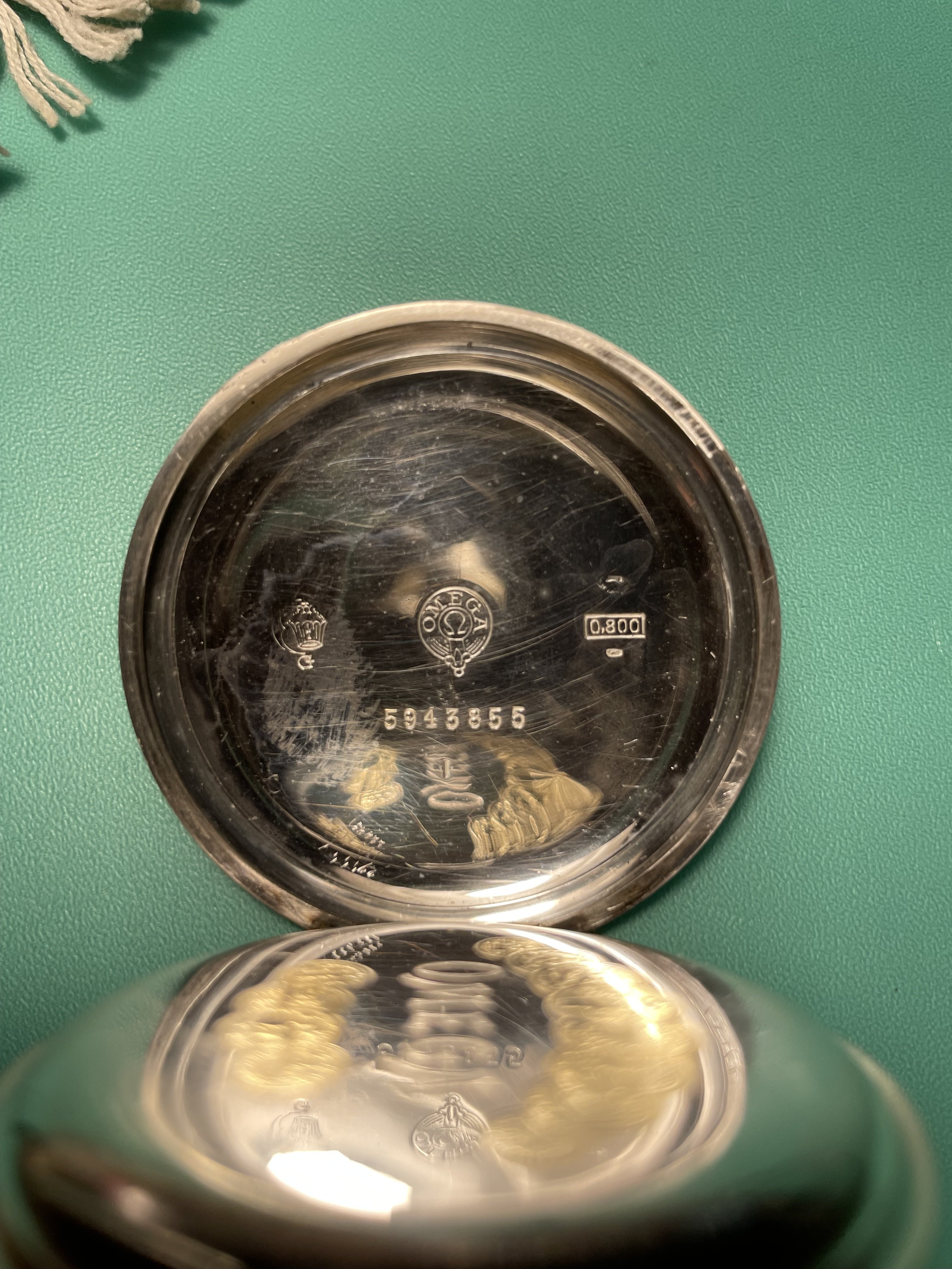 ·I am new to this forum and to watch restoration (I would not dare call what I do watch making). I have an older Omega Pocket watch. Not much to go buy but is in very good condition, which makes me wonder. When I got it there was a case screw missing and the ratchet wheel was installed crooked which caused it to rub against the case closure (no damage was caused to the wheel). It also has an exceptionally clean face. So I was a bit unsure how old this really is and what was done to it prior. After disassembling and examination the only thing I could find that was broken was the mainspring.