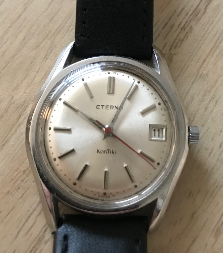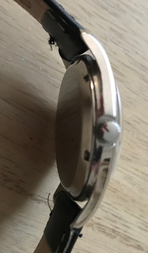 While the dial looks ok (barring the damages around the edge), the crown and seconds hand are replacements. The replacement crown should be noted in particular, since they form an essential part of waterresistant cases. The darkened lume and damage around the edge of the dial indicate some sort of moisture problem in the past.