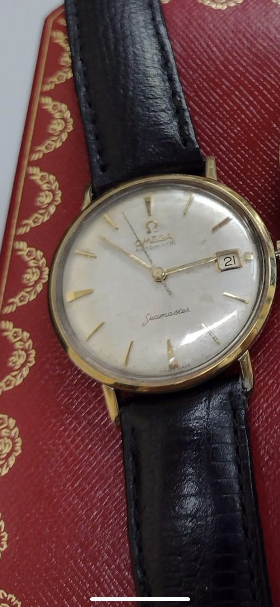 That dial is not normally seen on an SS case, and that crown looks to be from a gold plated case which you would expect that dial to be in.